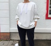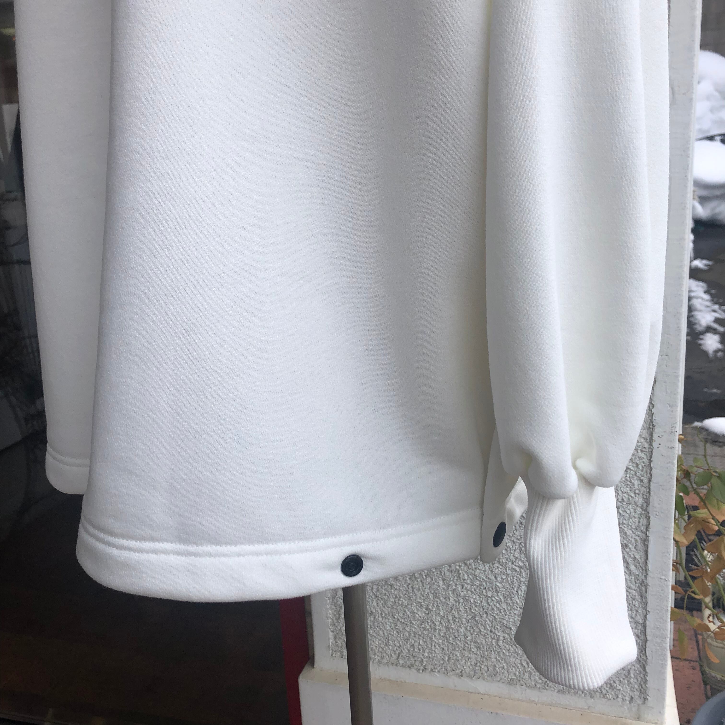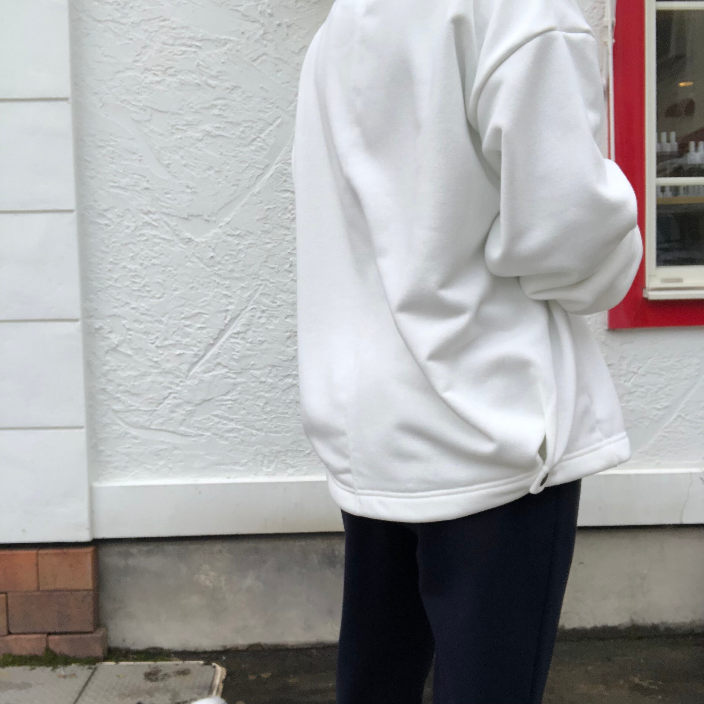 ボリュームスリーブに、Aラインシルエットの裾にアジャスターを付けて形の変化を楽しんで頂けます。