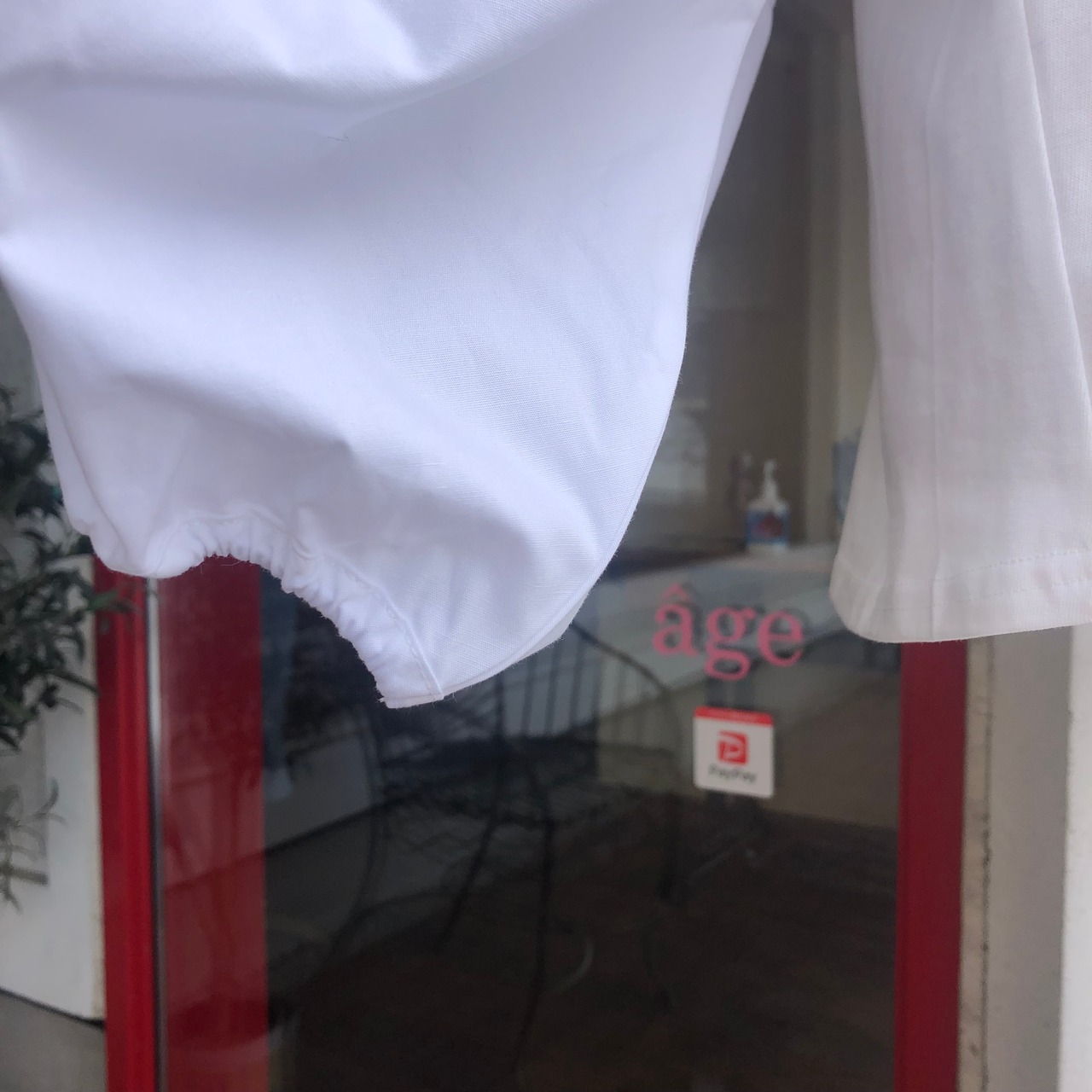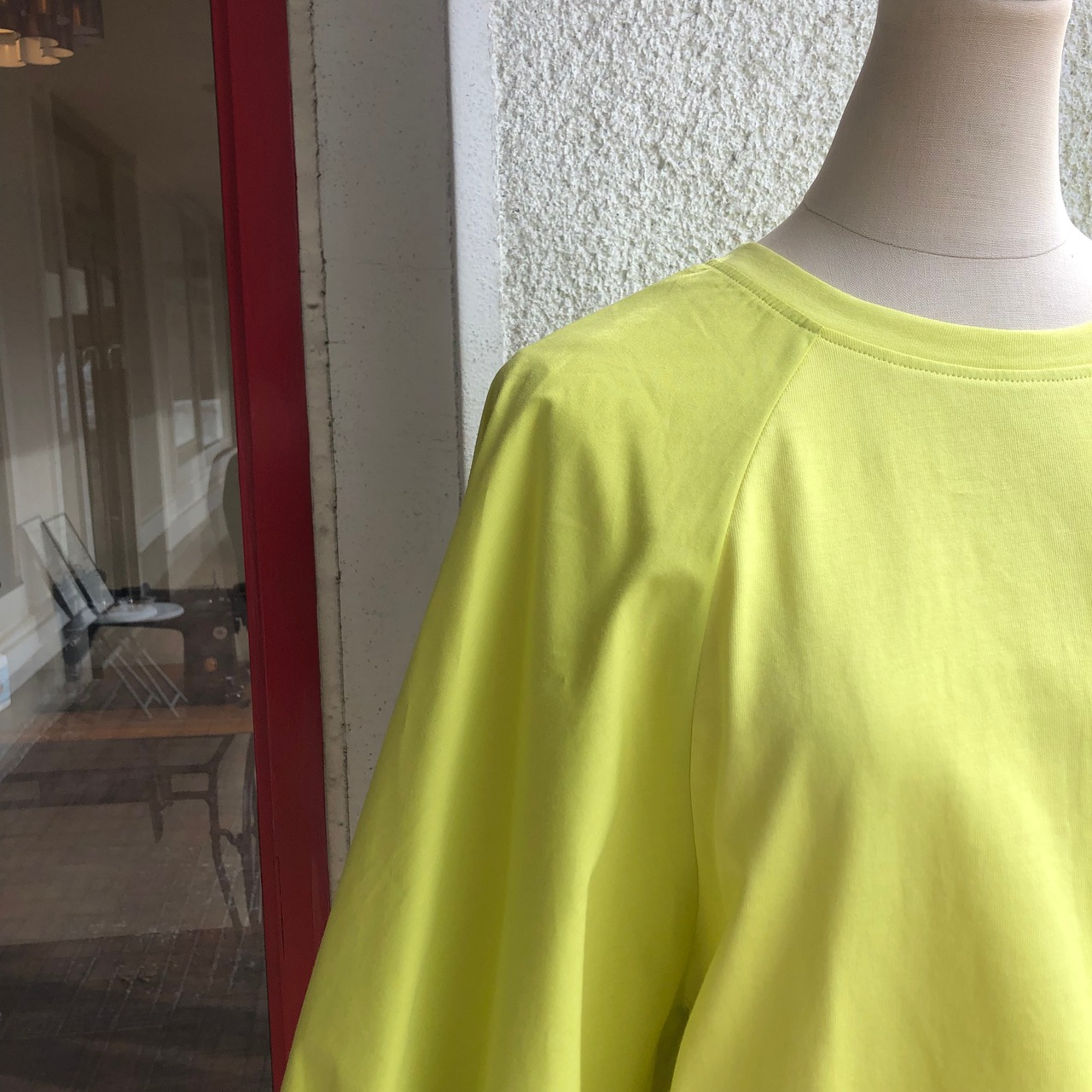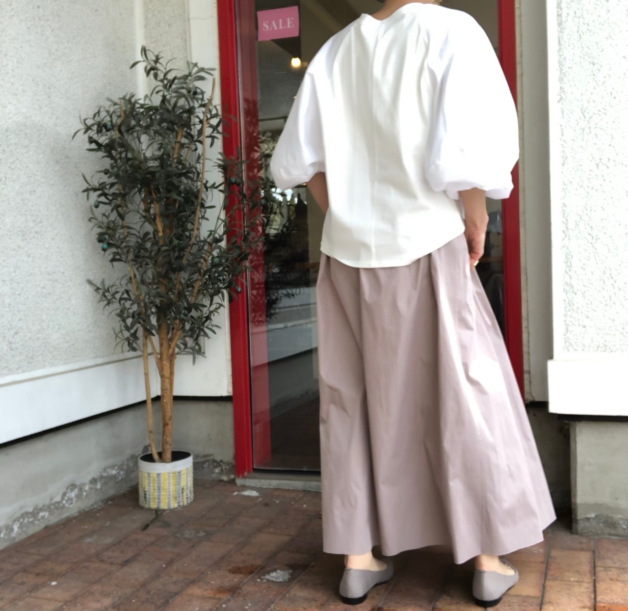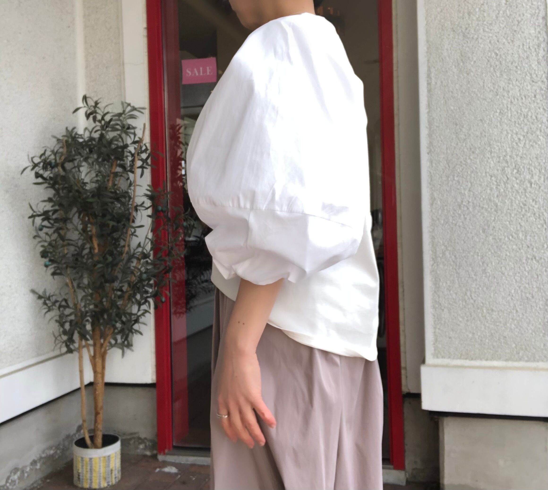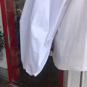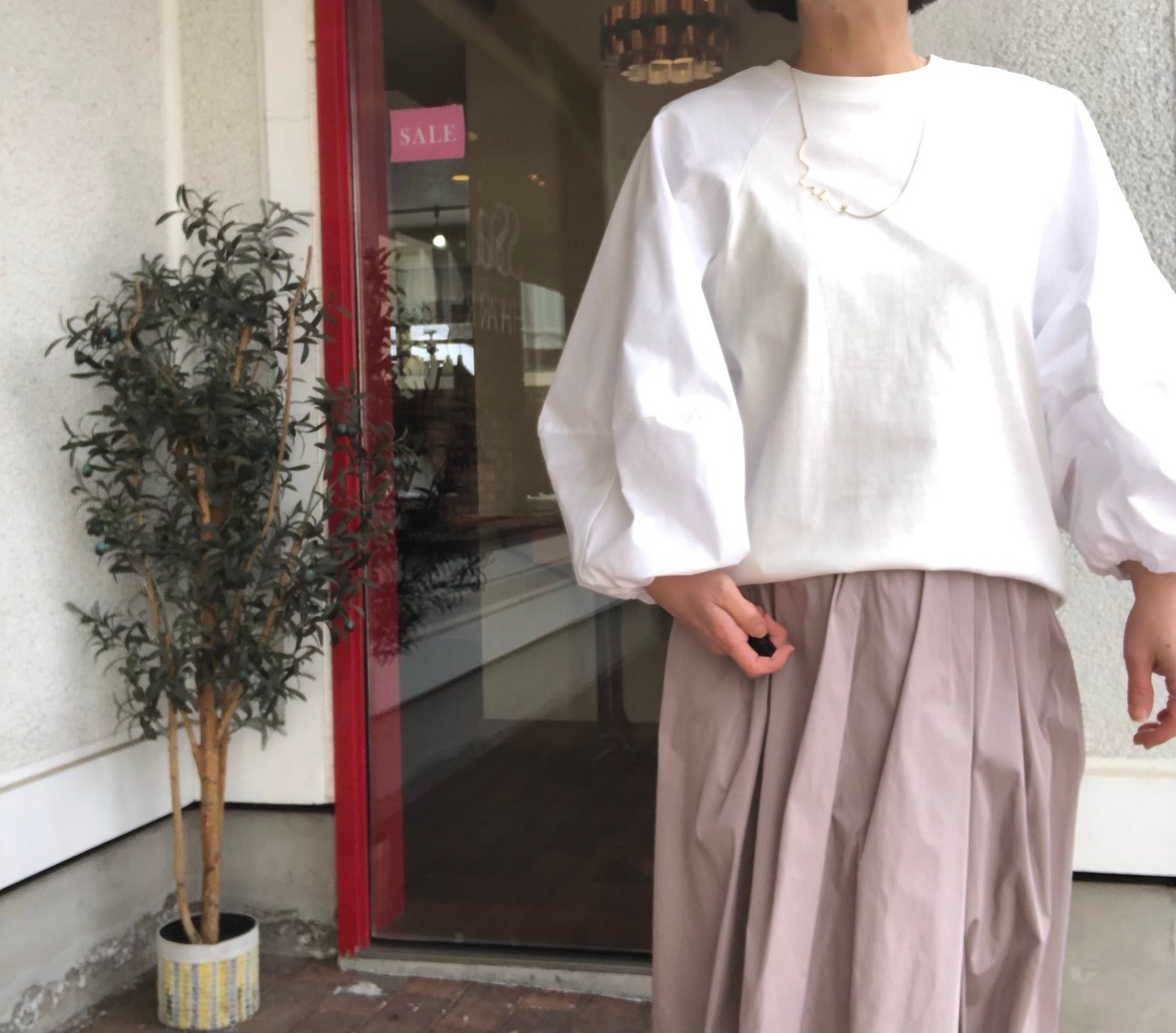身頃はカットソー生地、袖は布帛生地とドッキングしたデザイン