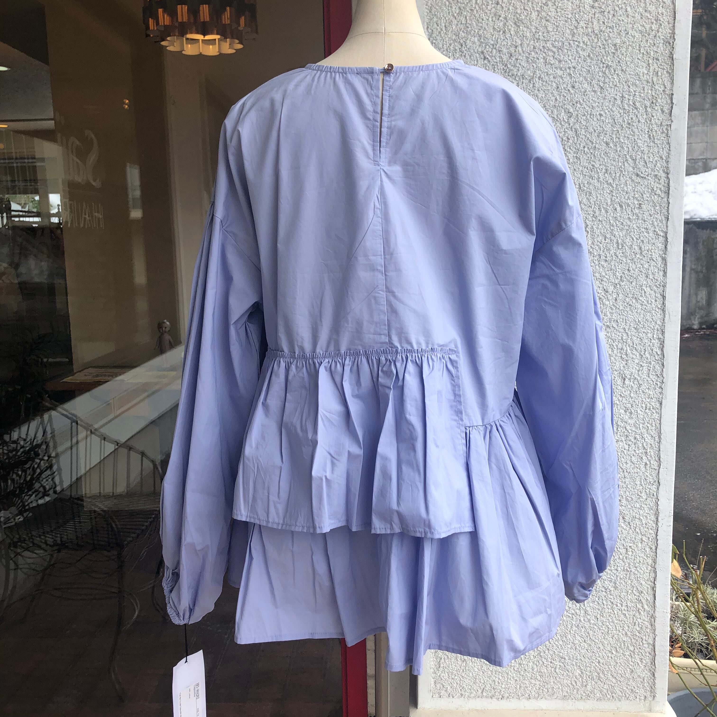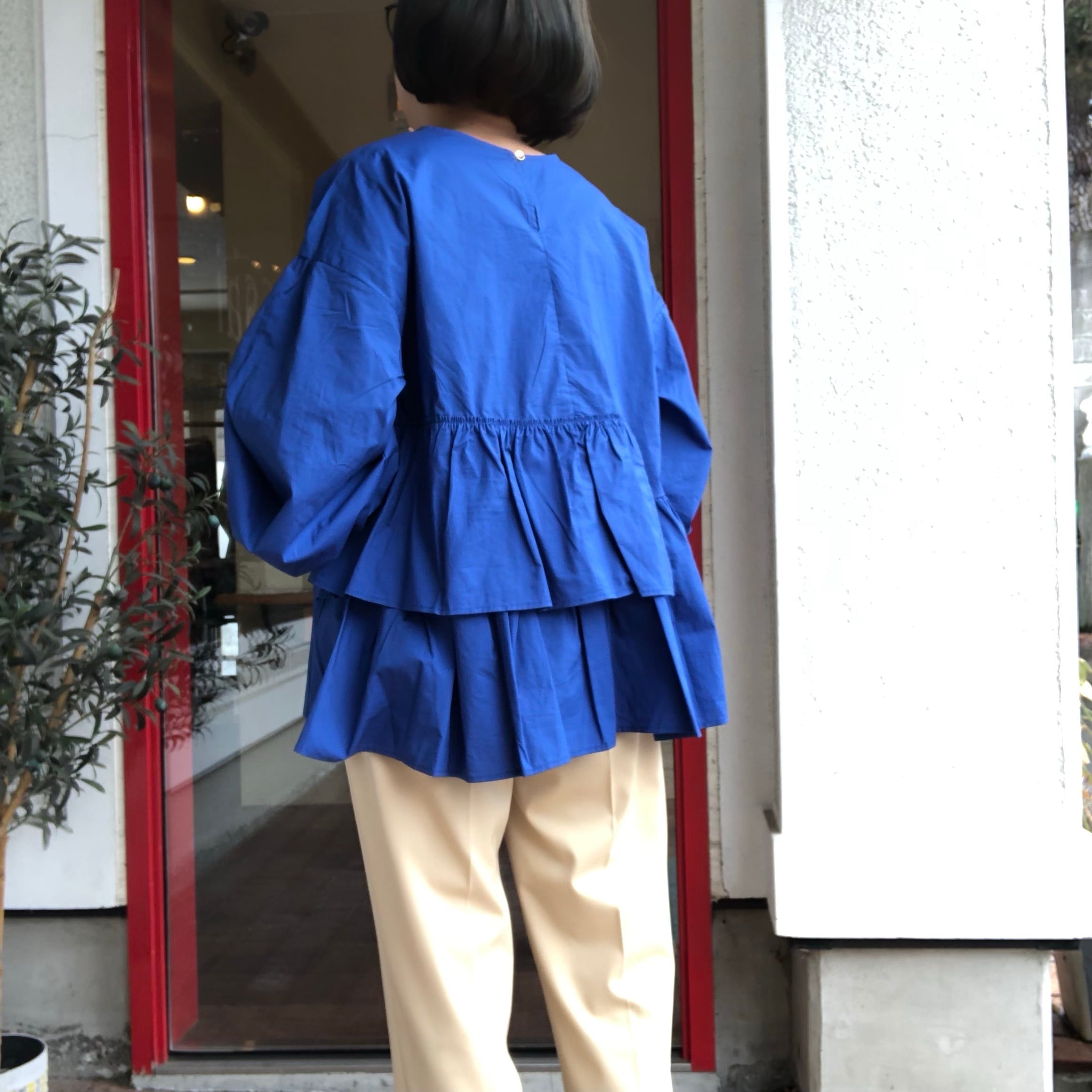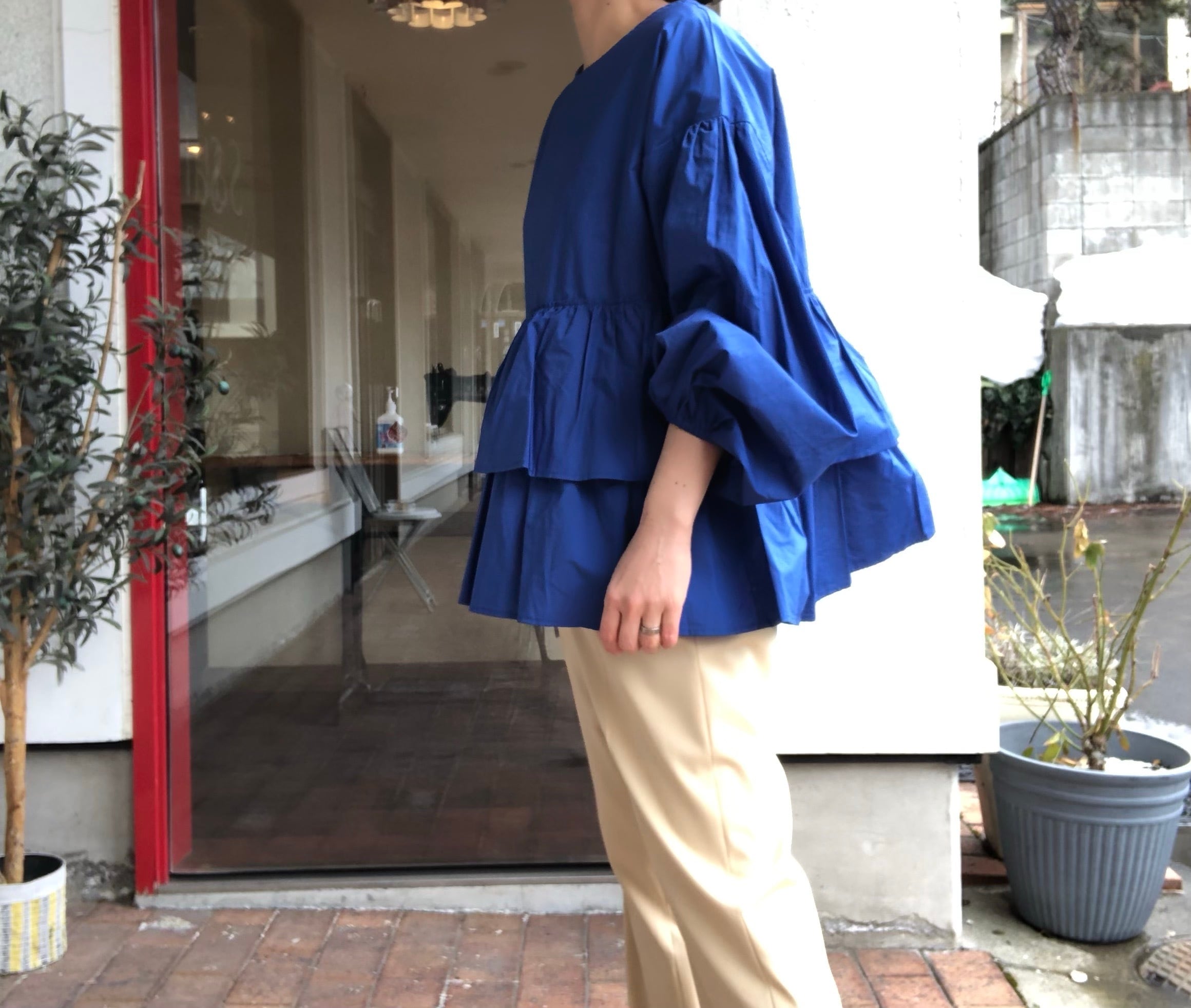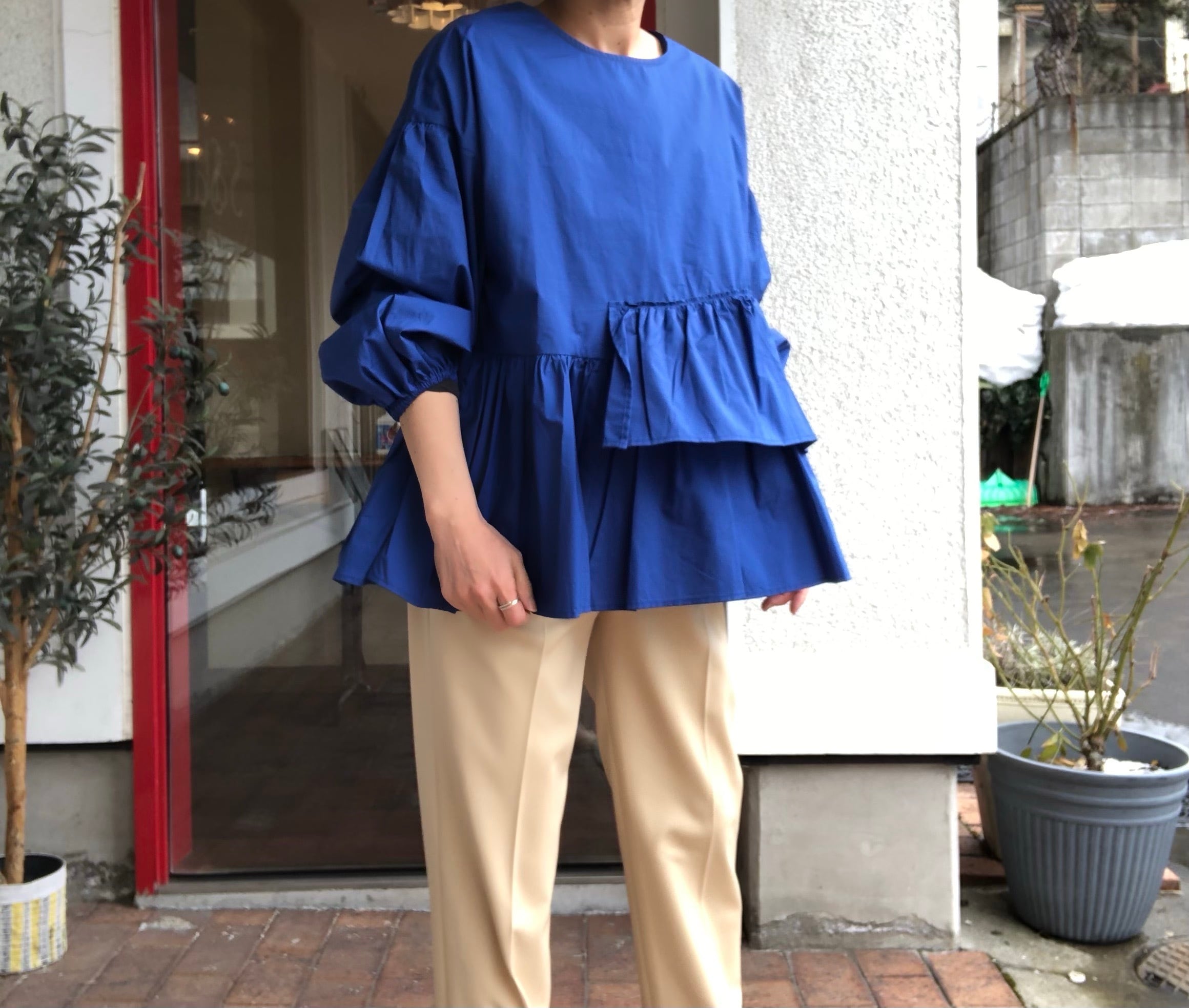 ドロップショルダーで適度にゆとりのあるデザインに、春らしいカラーとシルエットで一枚で華やぐブラウスです