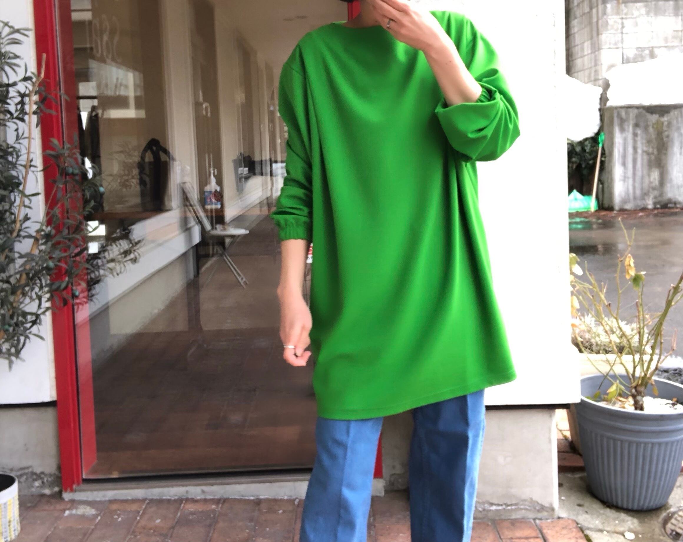やや厚みがあり弾力もあるストレッチが効いたカットソー生地で透けもあまりなく着て頂けます