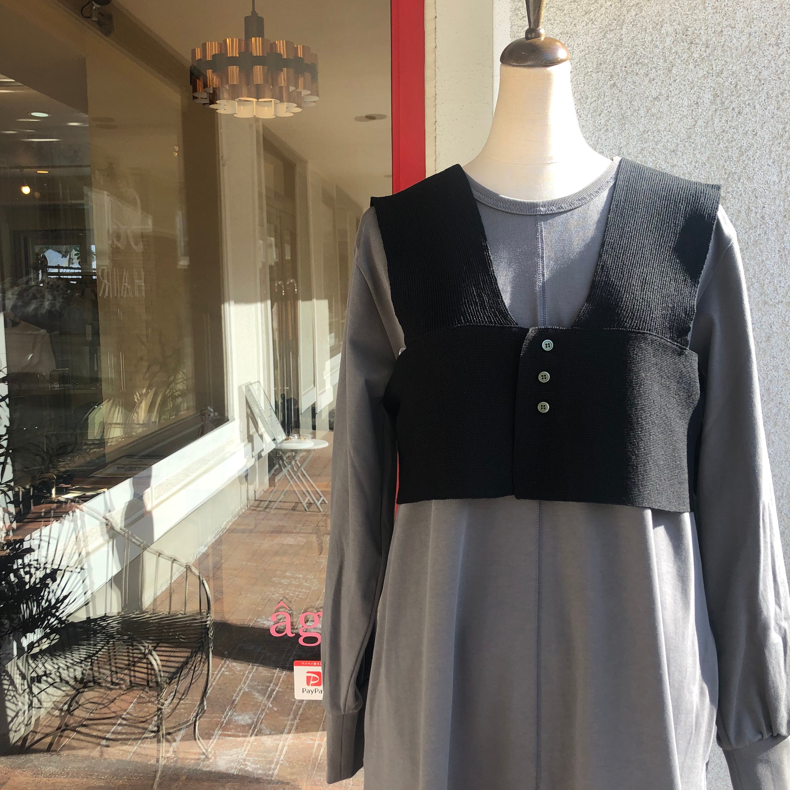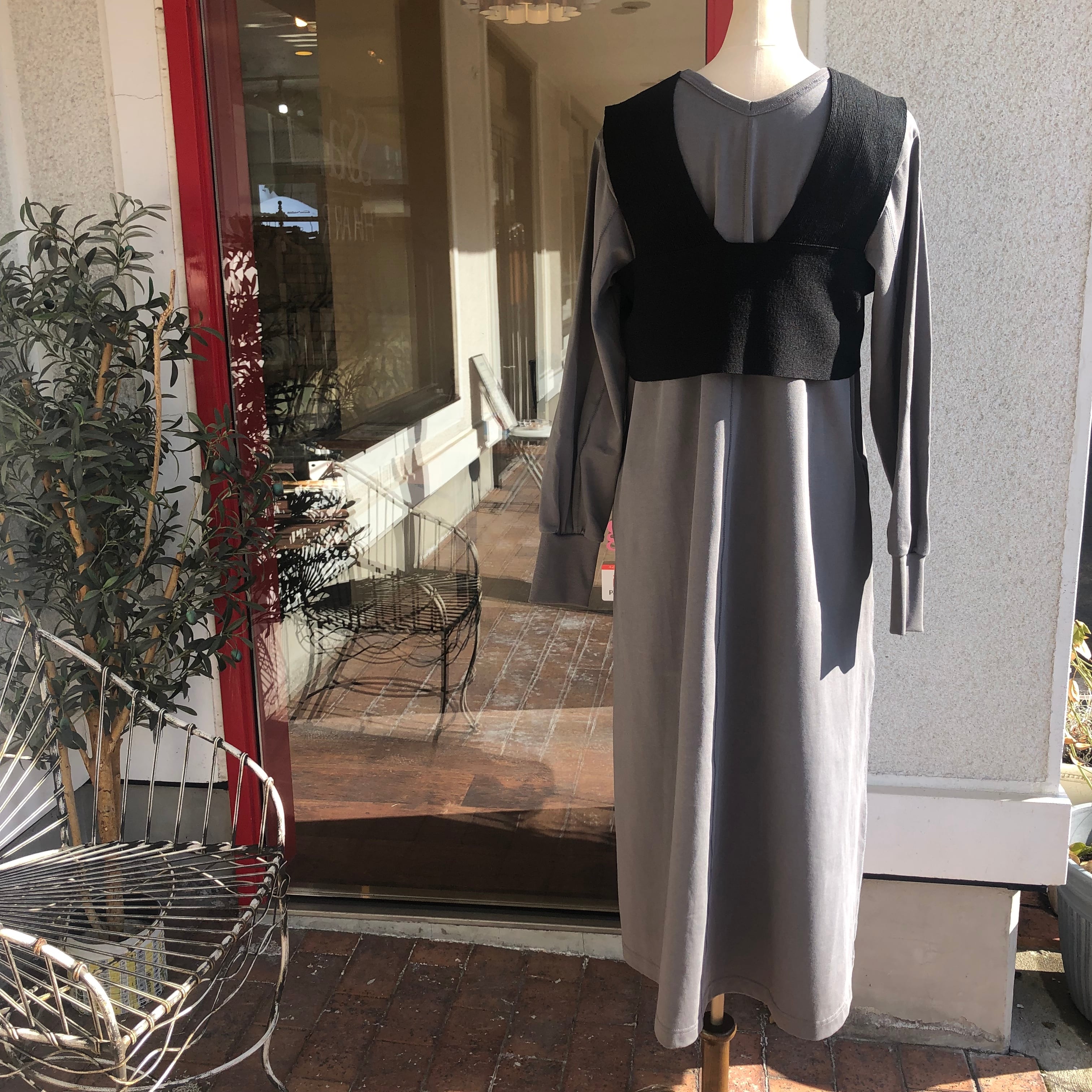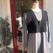 フレアカットソーワンピースに今年らしいビスチェがレイヤードされたデザイン