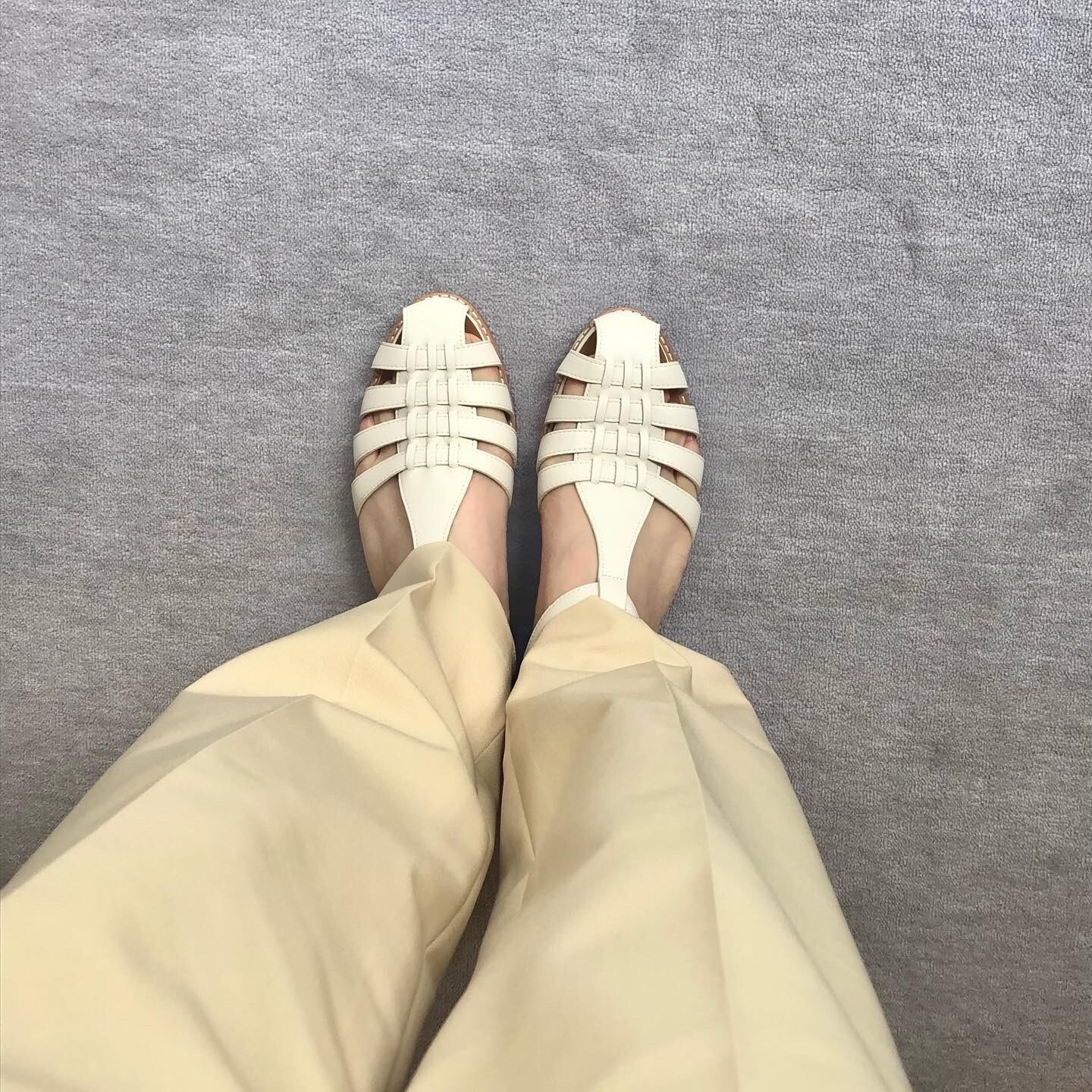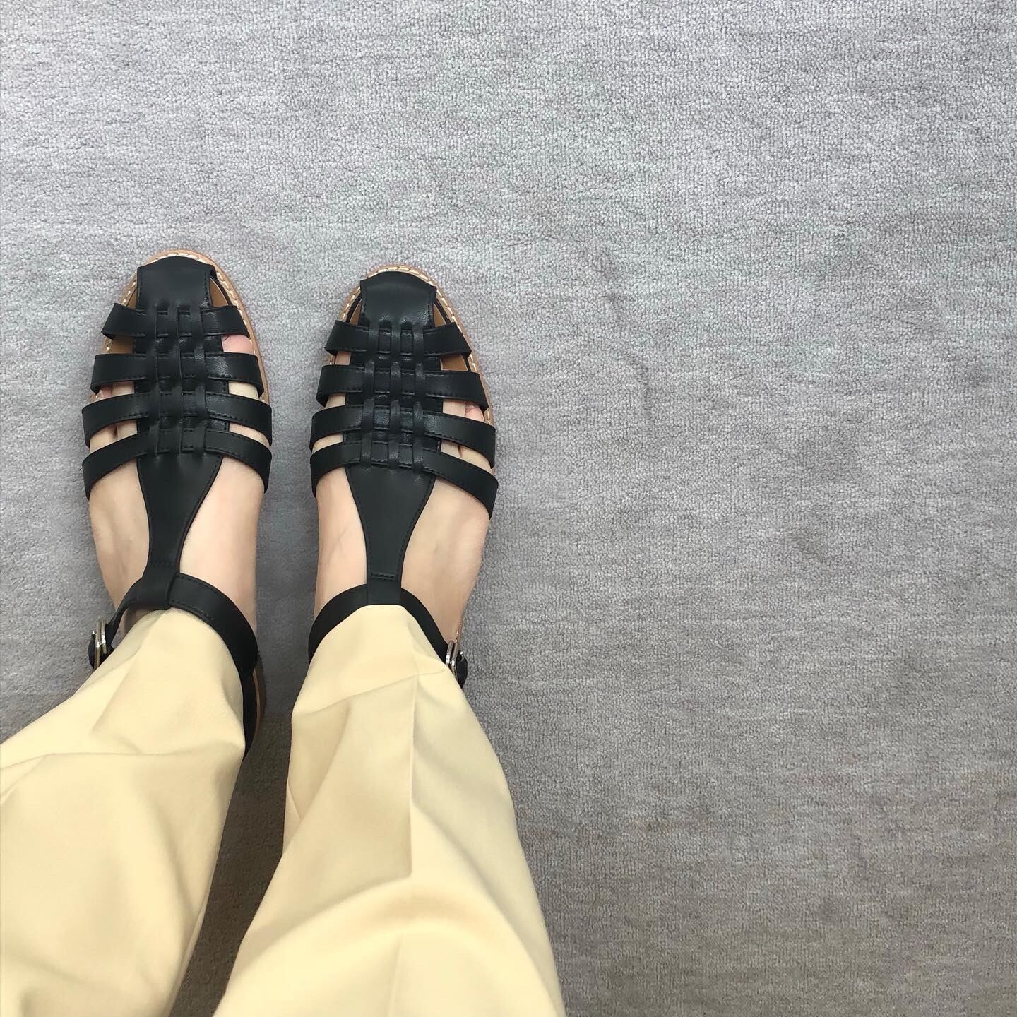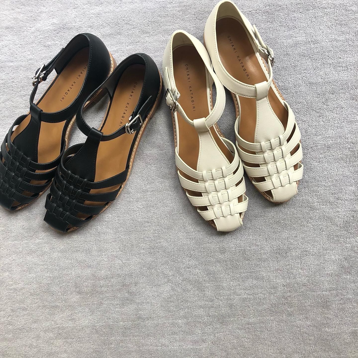 革が柔らかく、足を包み込みデザインは履きやすく、程よいボリュームと編み込み部分の透けが