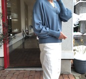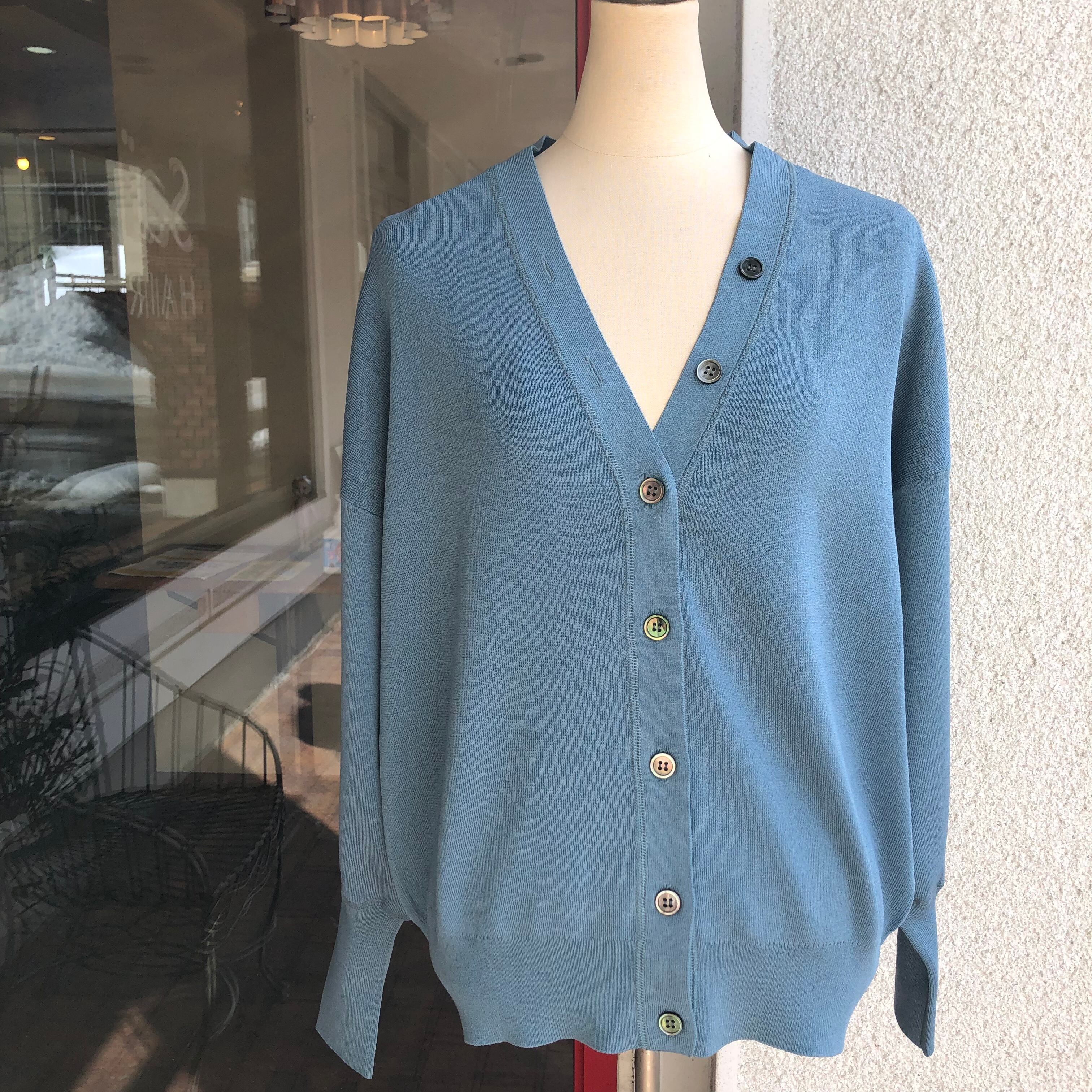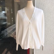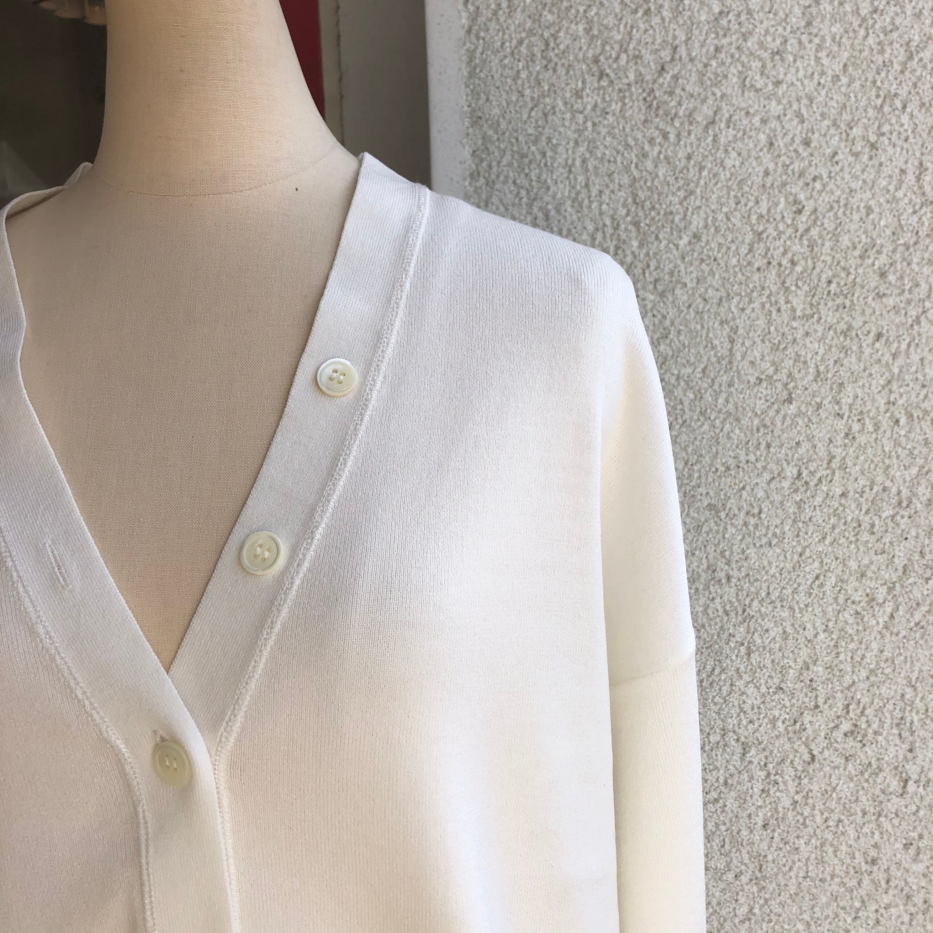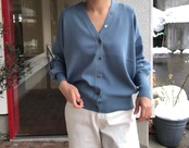 編み目の細やかさにより、繊細な質感となめらかさのある、程よい厚みのV襟カーディガン