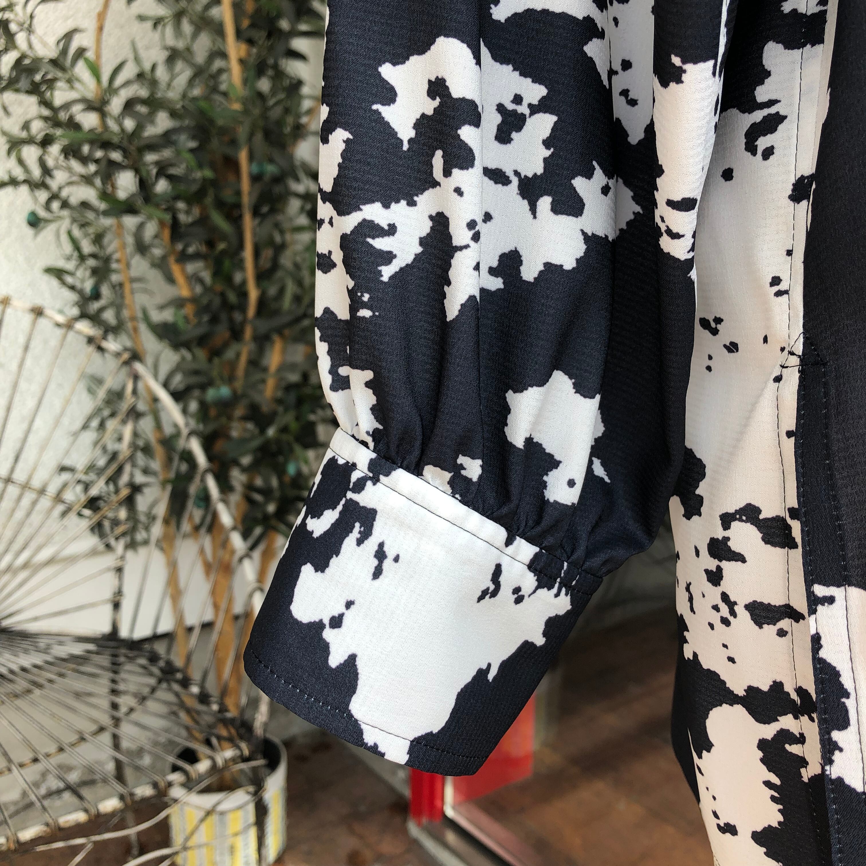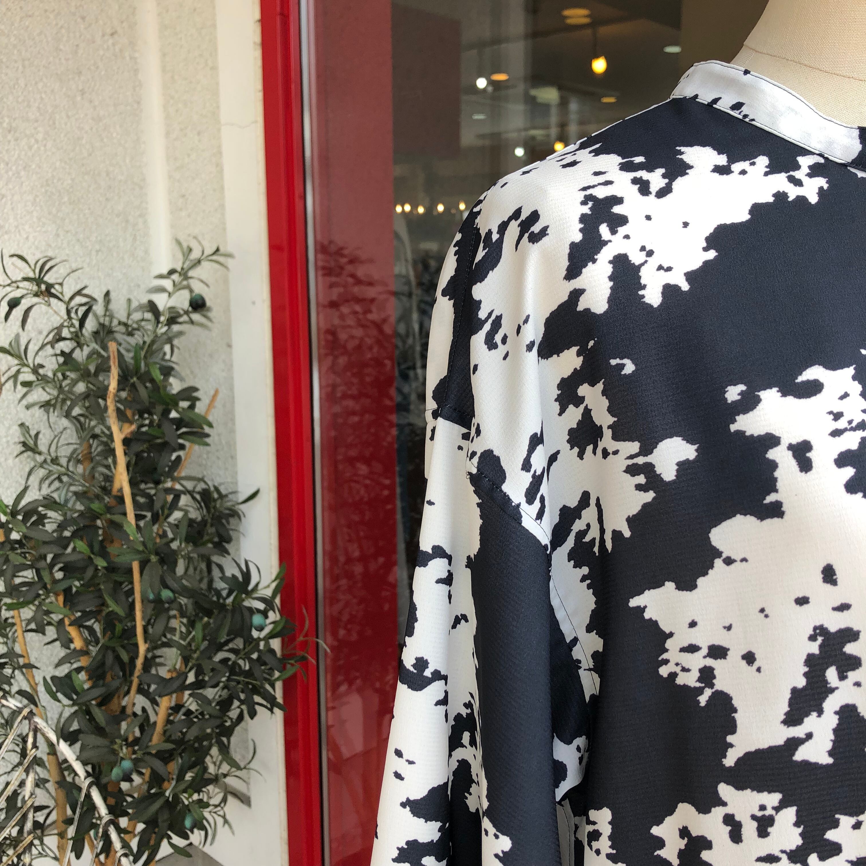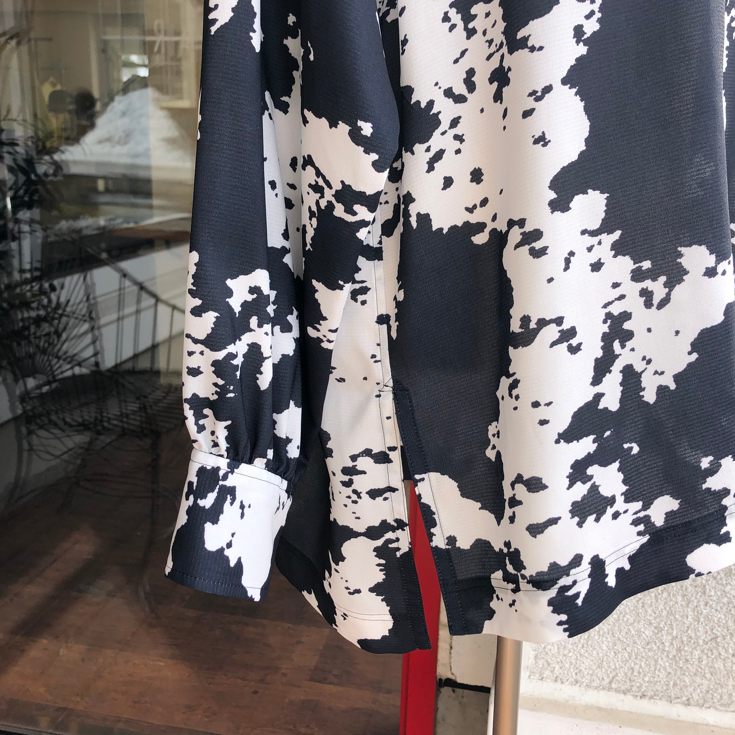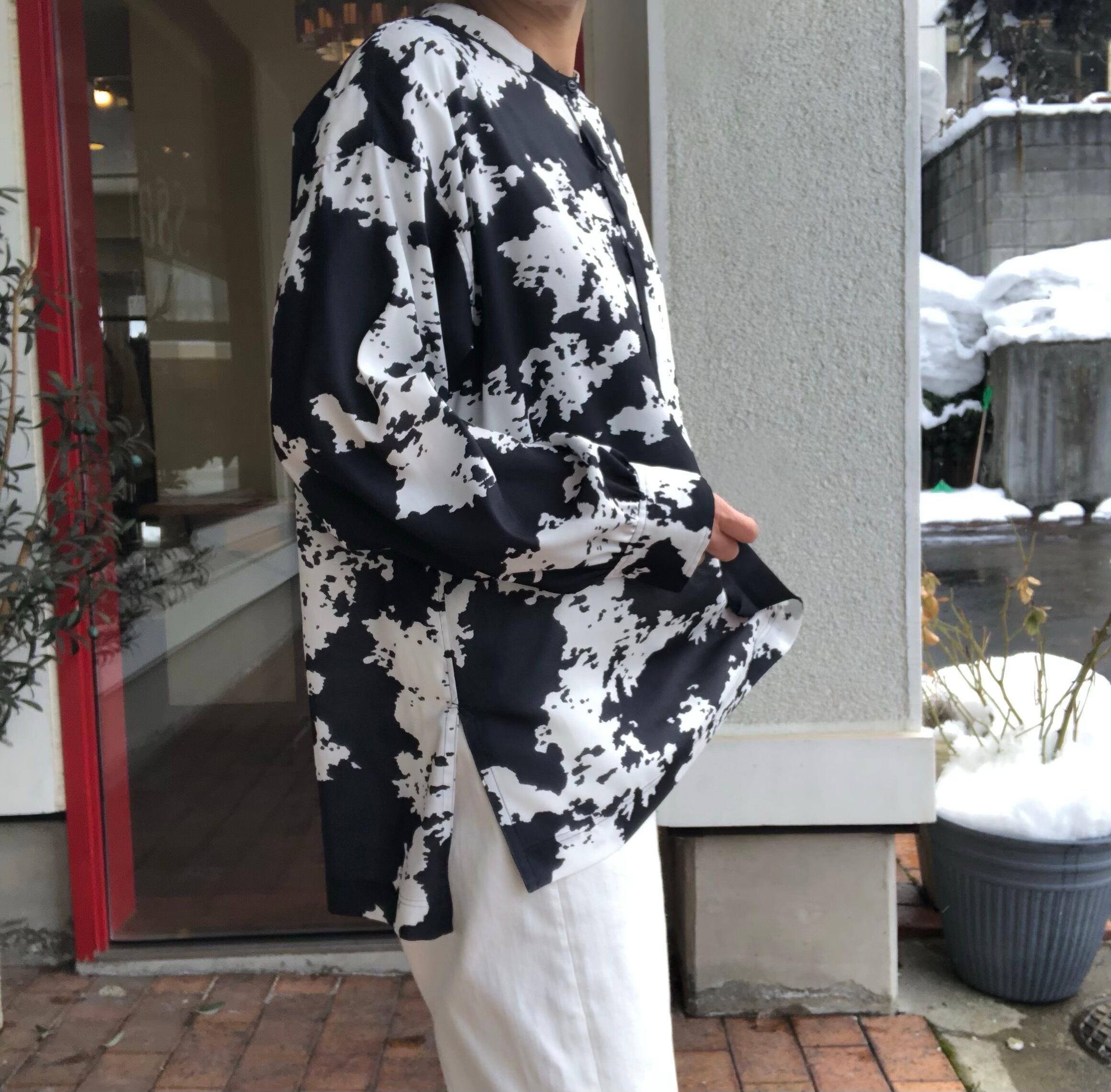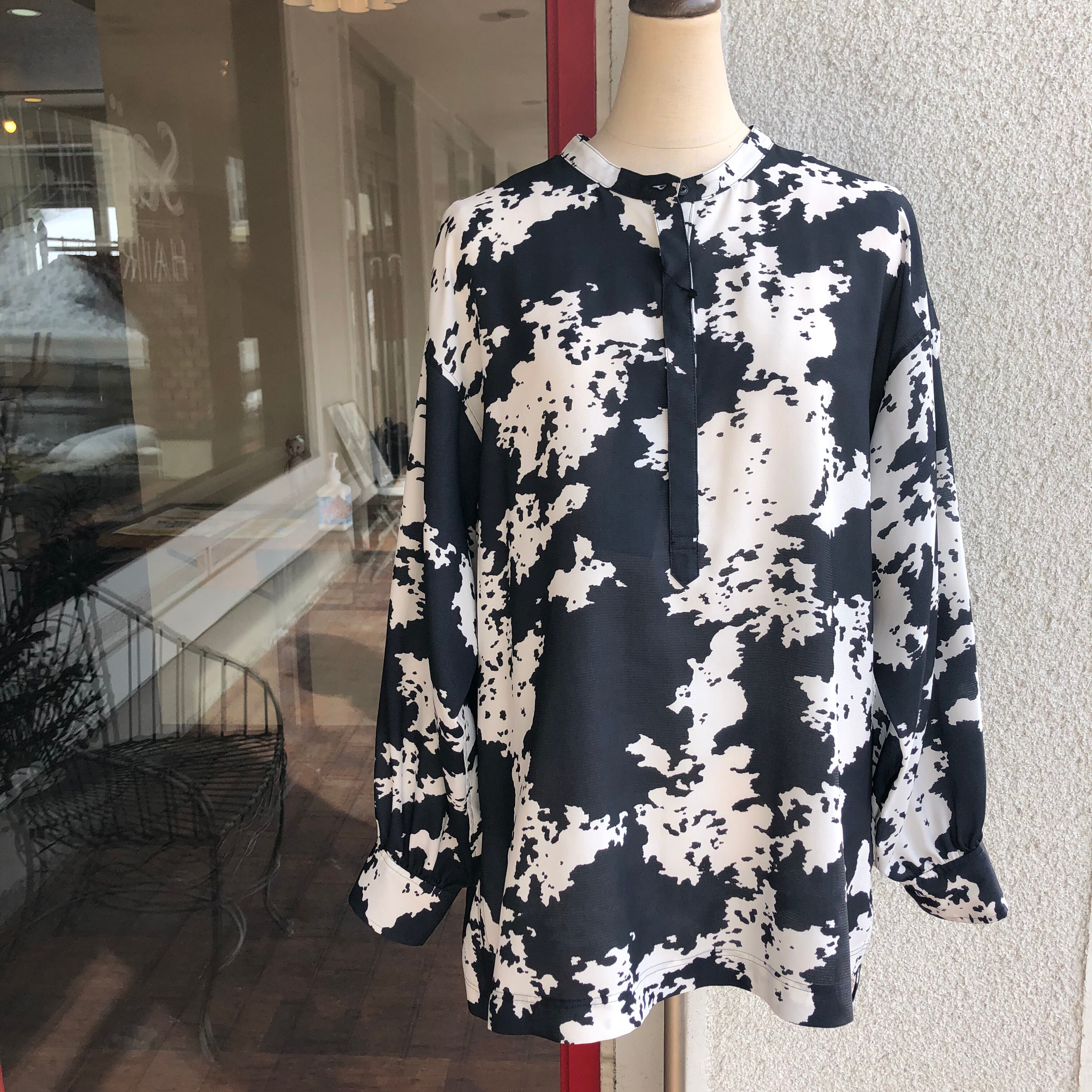 今季トレンドの大胆な大柄を配した生地を採用したプルオーバーシャツ