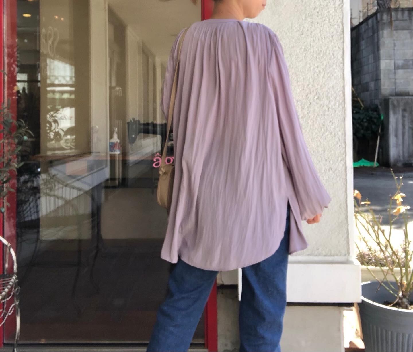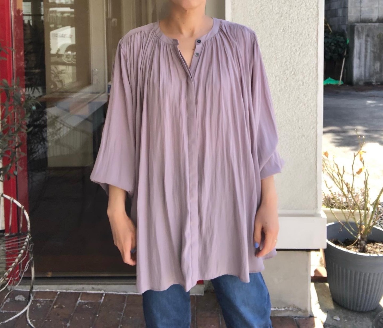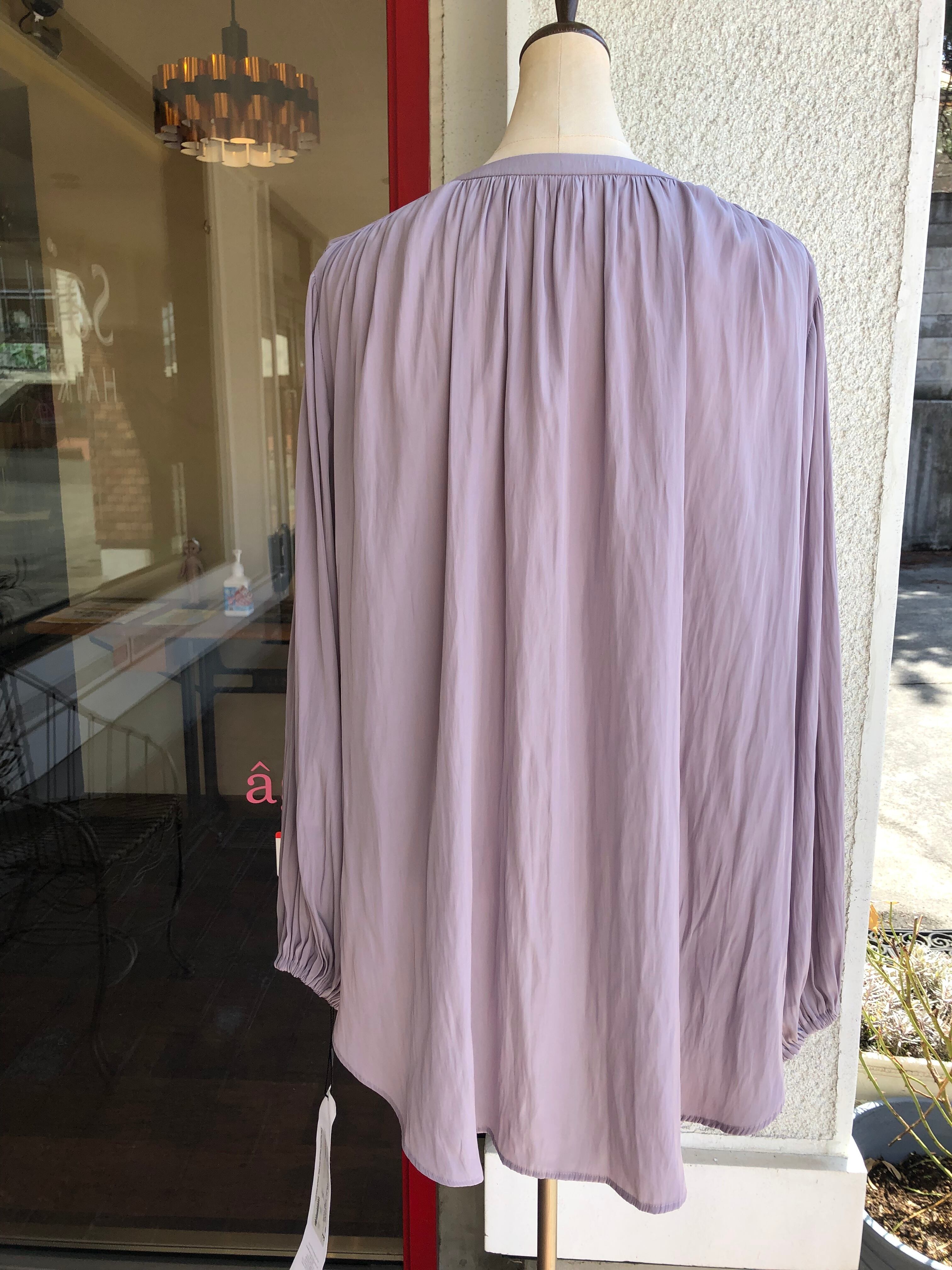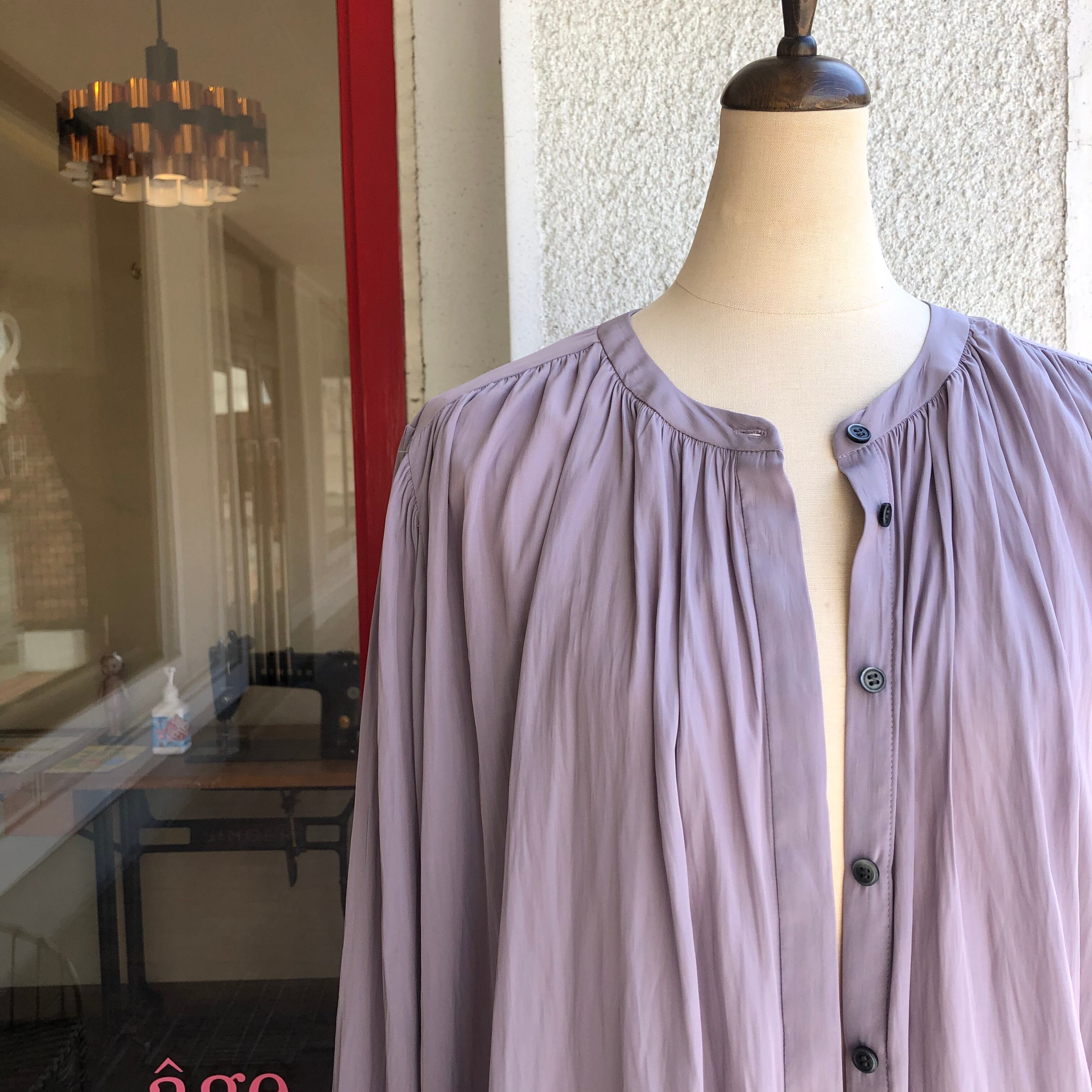 風になびくほど柔らかい艶生地、デシンを使用したきれいめなギャザーブラウス