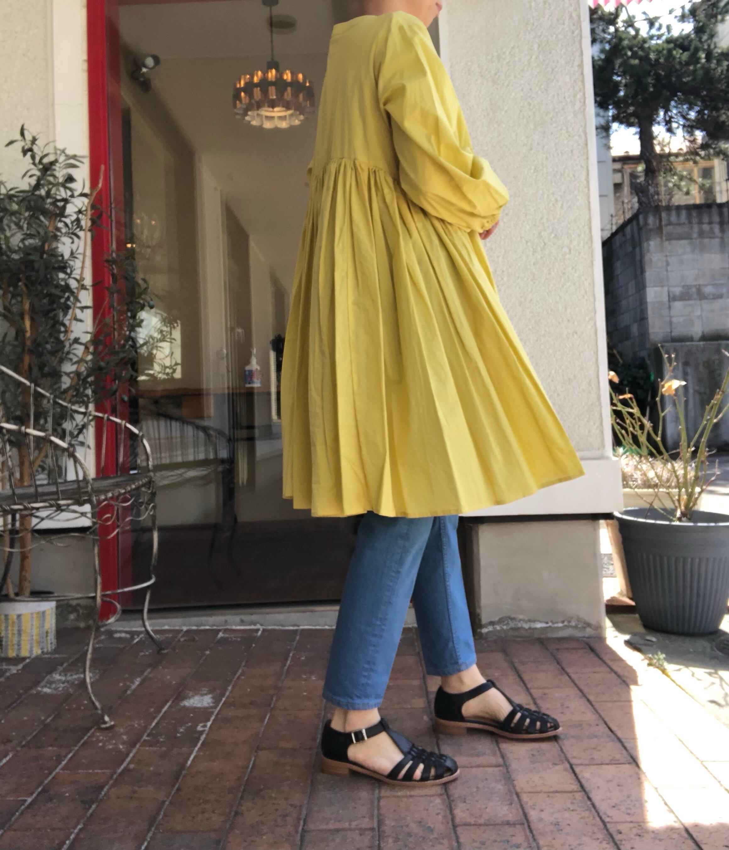 柔らかな綿100%のチュニック丈は、細身のパンツと相性が良くボリューム感を存分に楽しめるコーディネートです