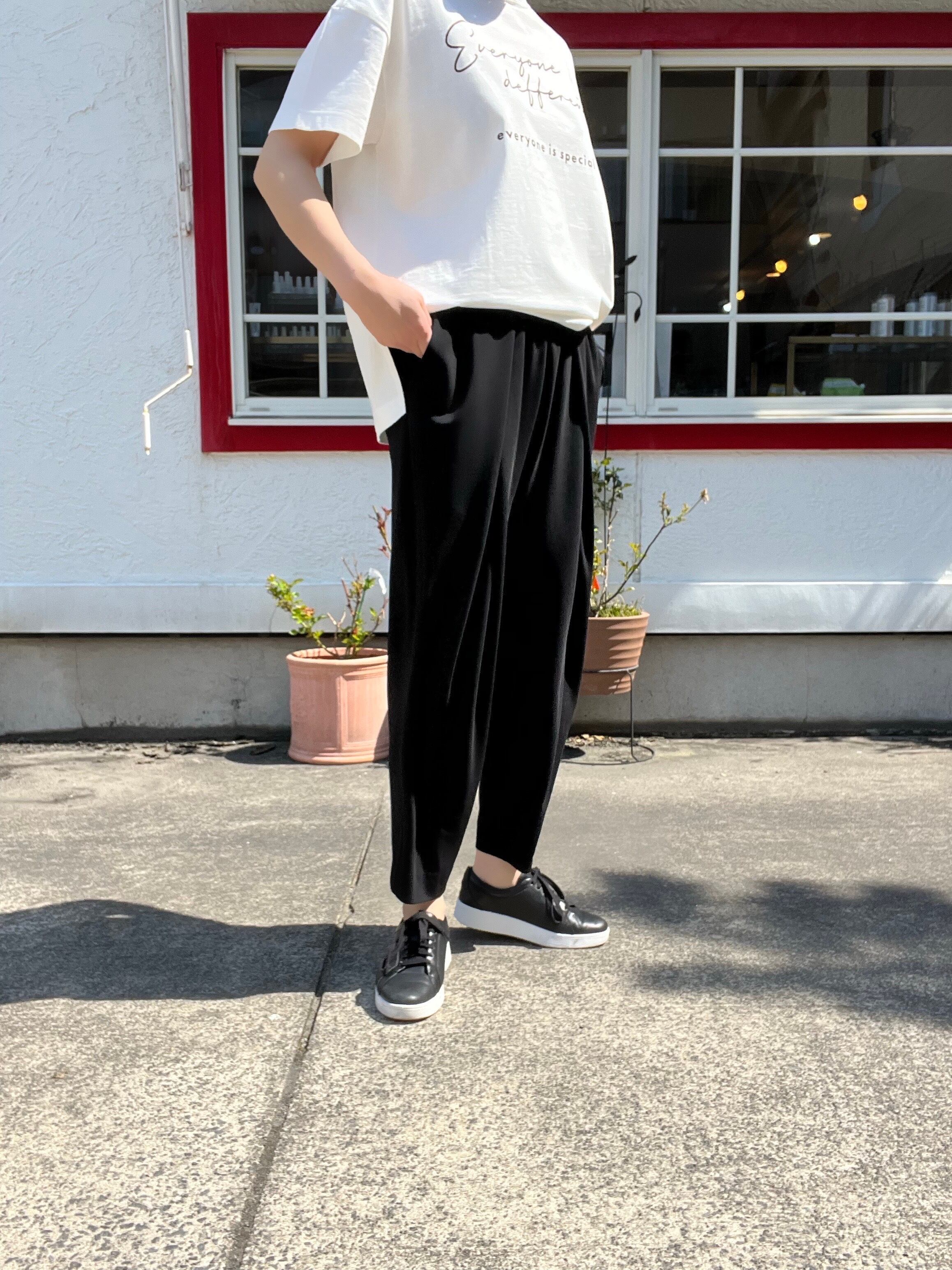 オン、オフ着回せるテーパードパンツ