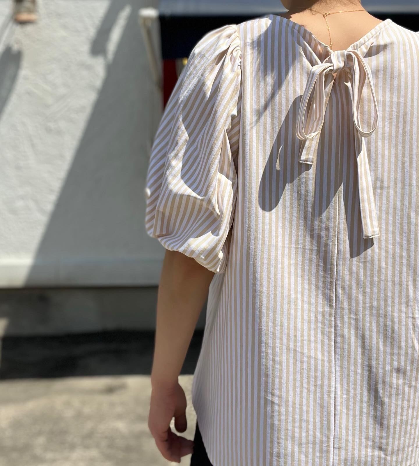 パフスリーブデザイン&後ろリボンが身体を華奢に見せてくれます