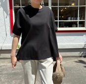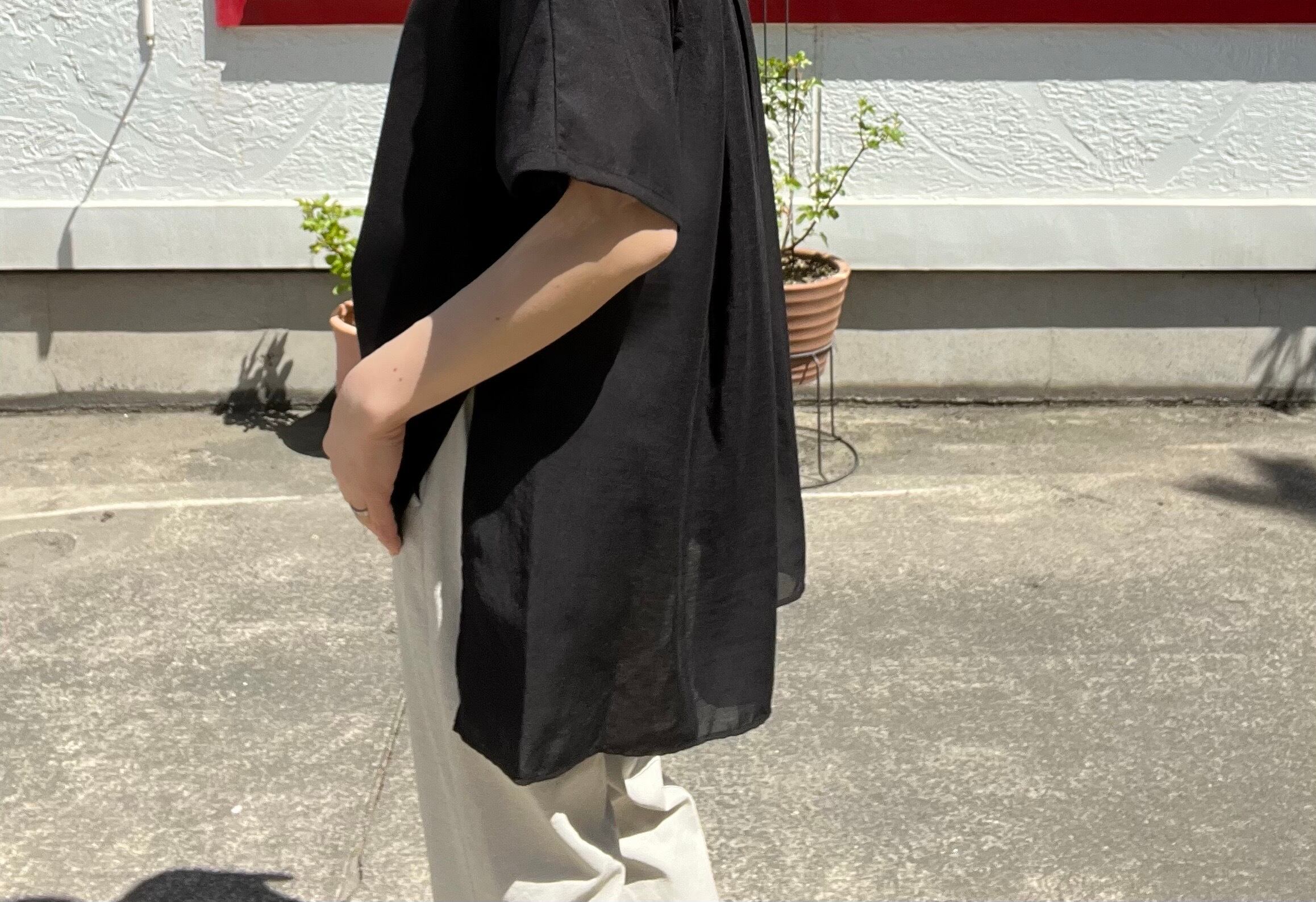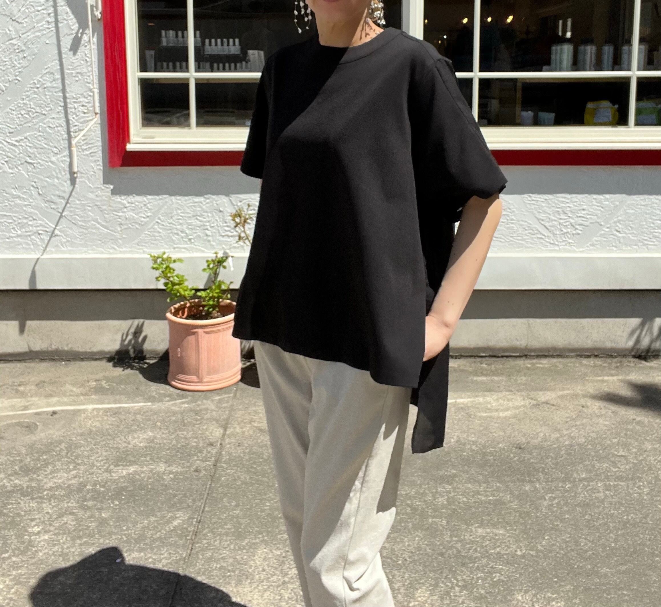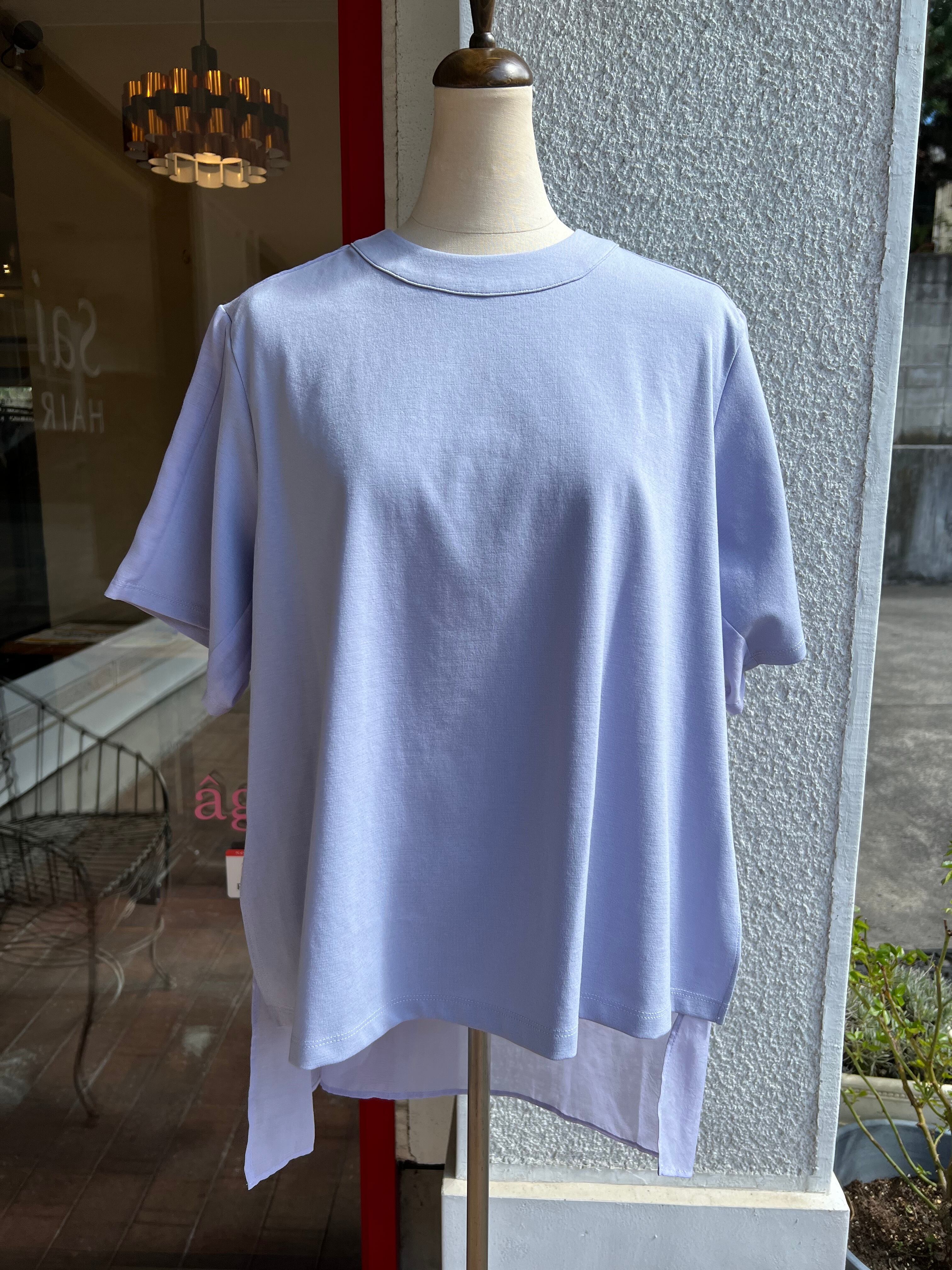 前身頃カットソー生地、後ろ身頃は透けのあるシアー素材のプルオーバーブラウス