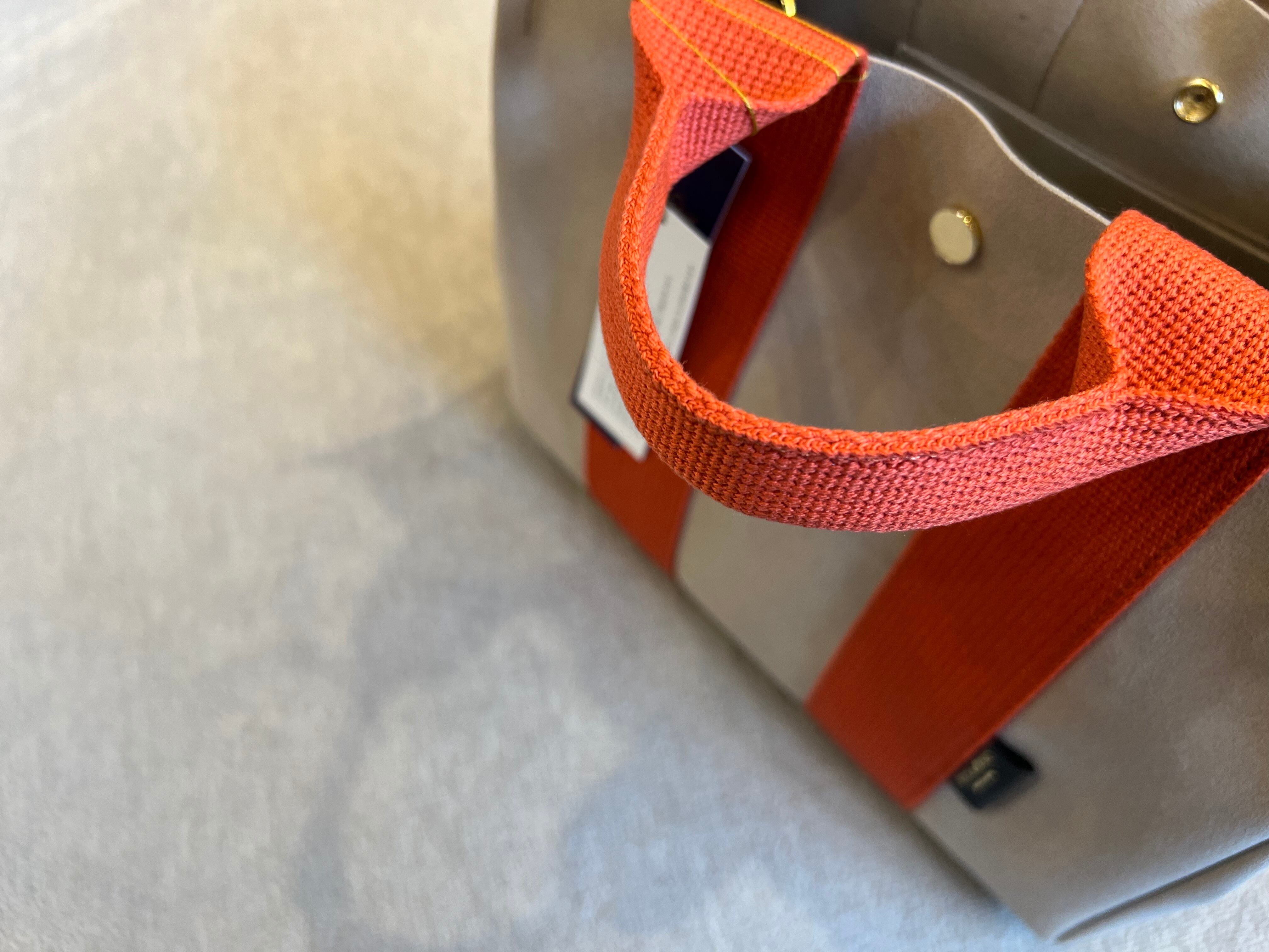 口周りは切りっぱなしのデザインなのでカジュアルな雰囲気でお持ち頂けます