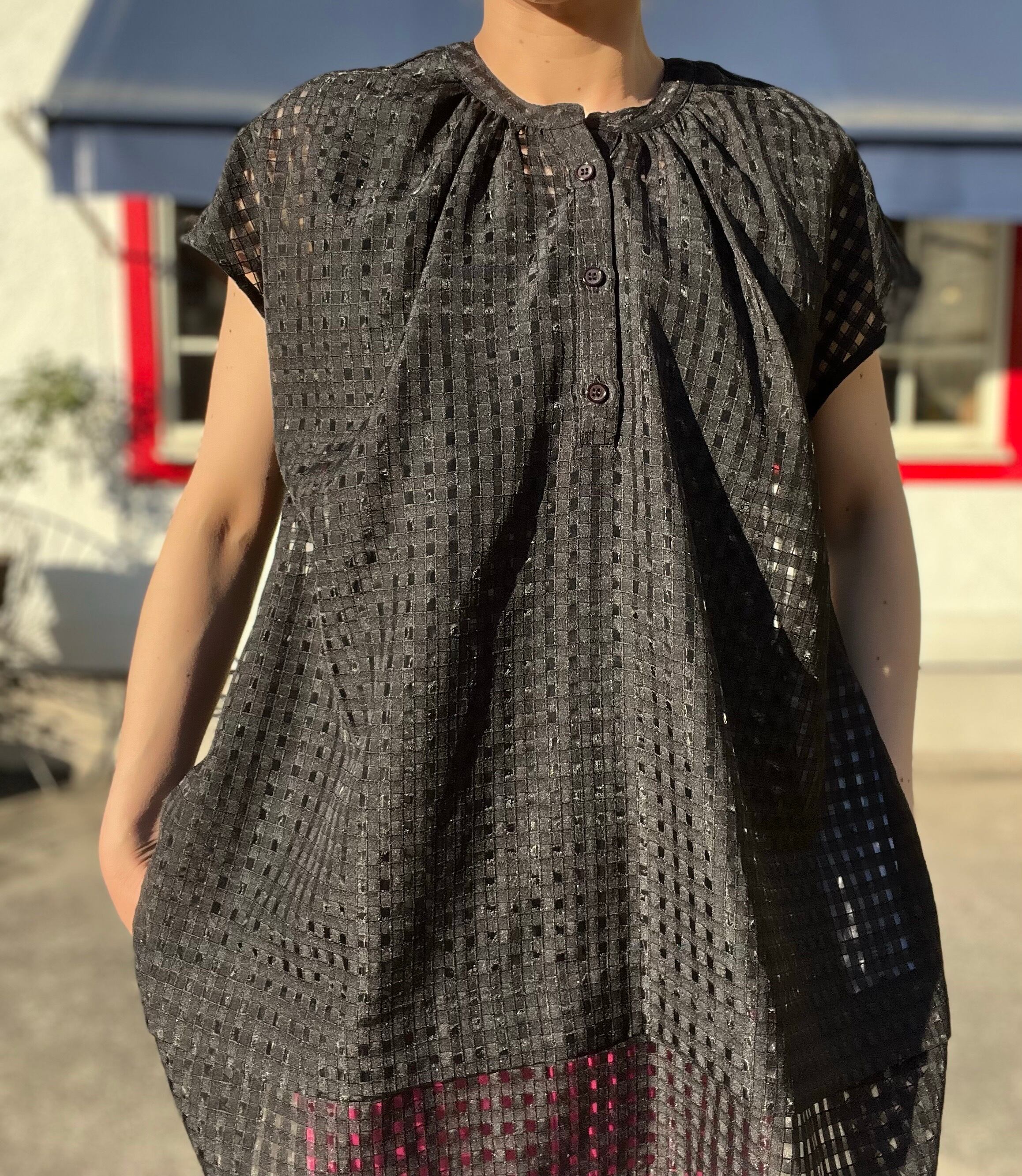 程よく透け感のあるシアープルオーバーチェックブラウス
