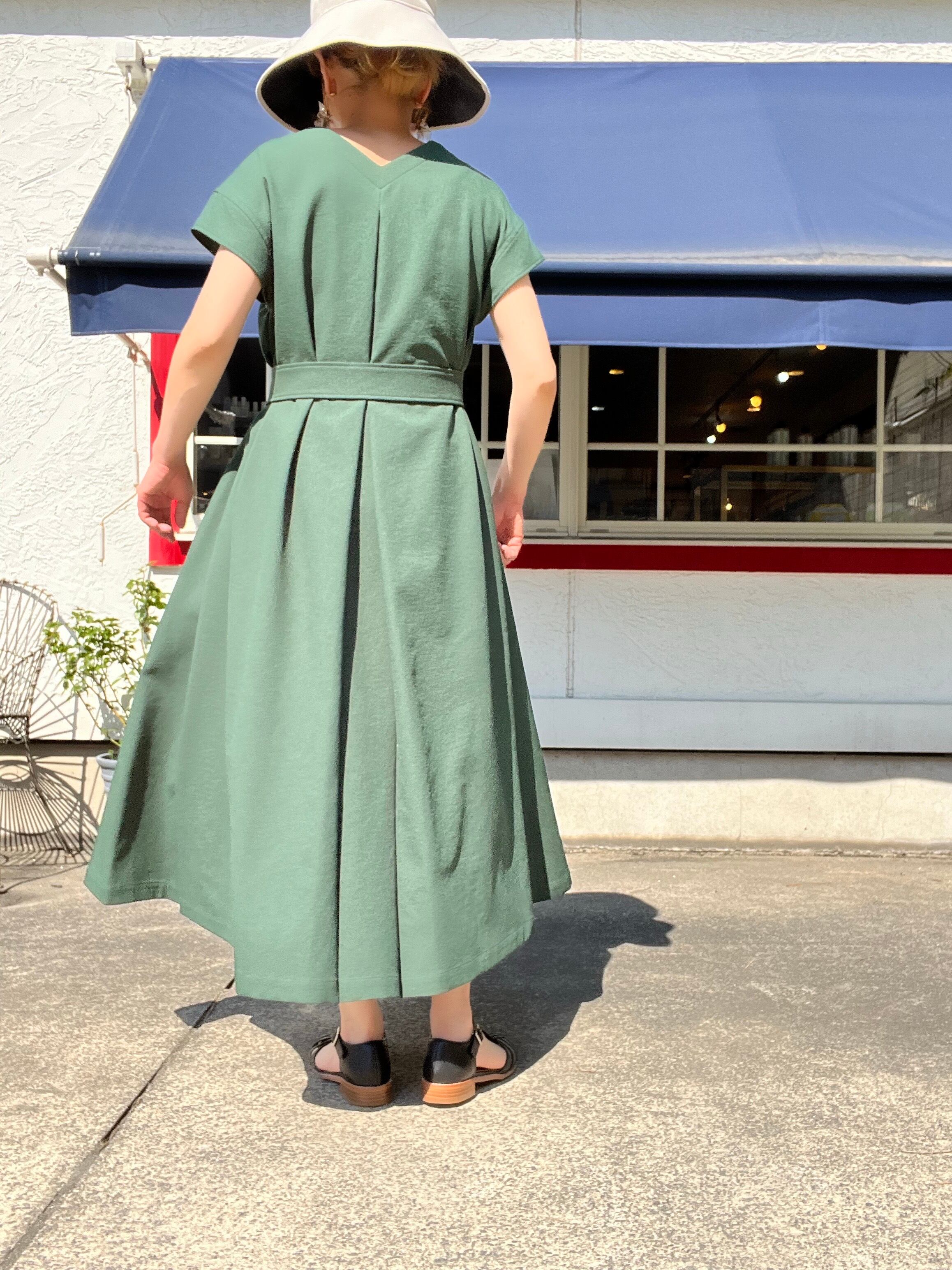 サイドに生地がたっぷりと使われて、ベルトをするとまるでドレスのようなエレガントなシルエット