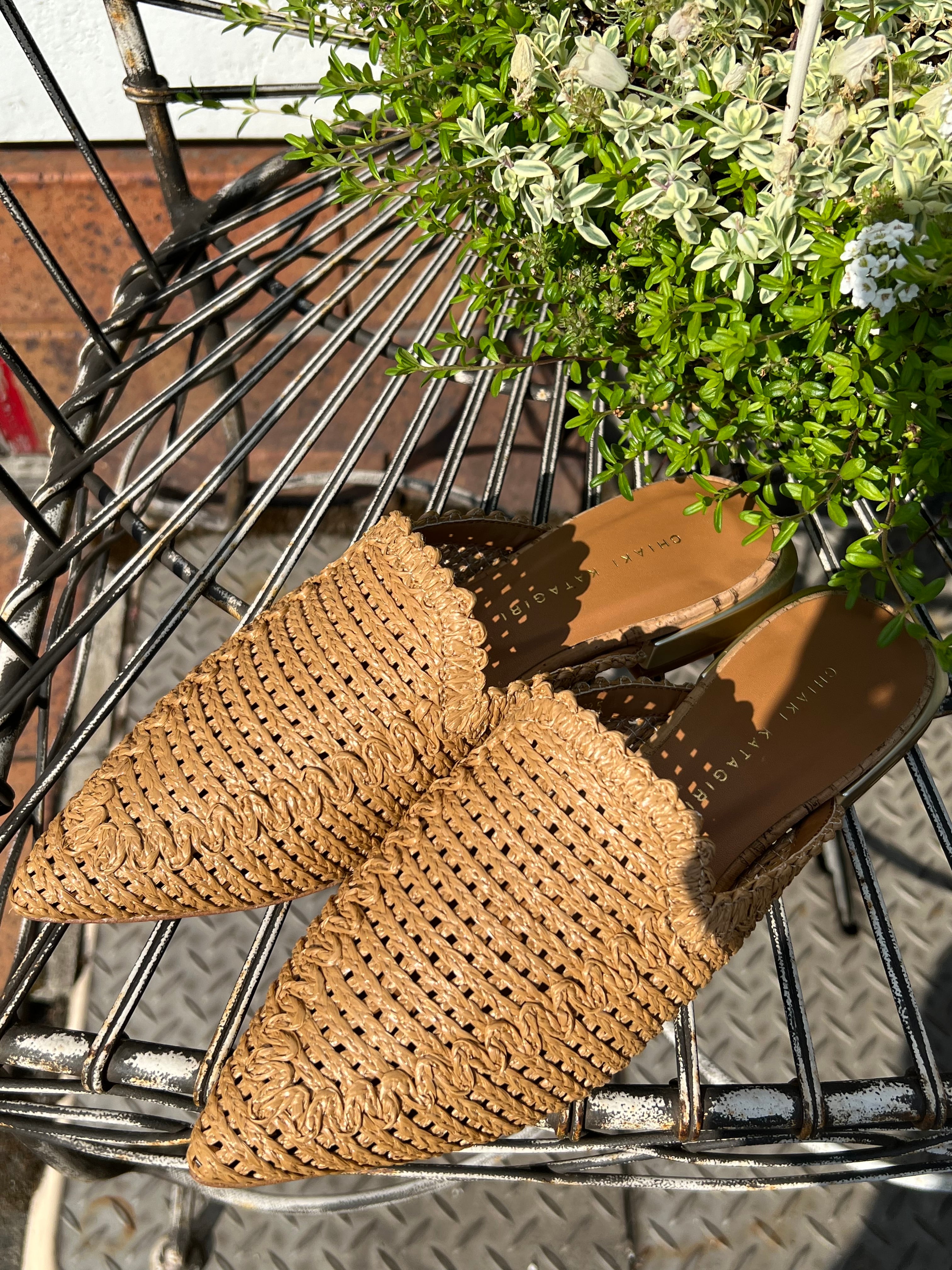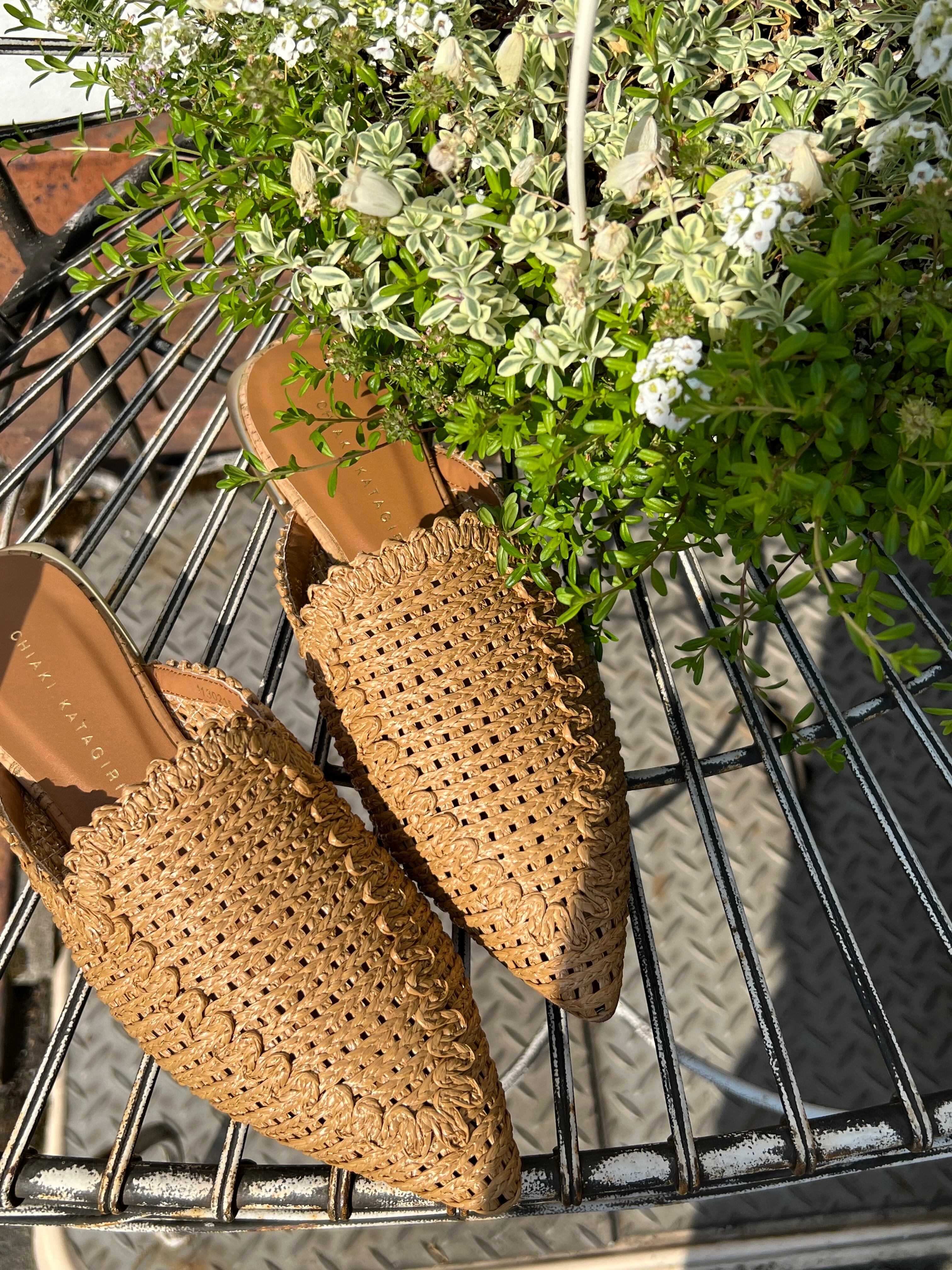 ポリウレタンラフィアを編み込んだメッシュタイプのミュール