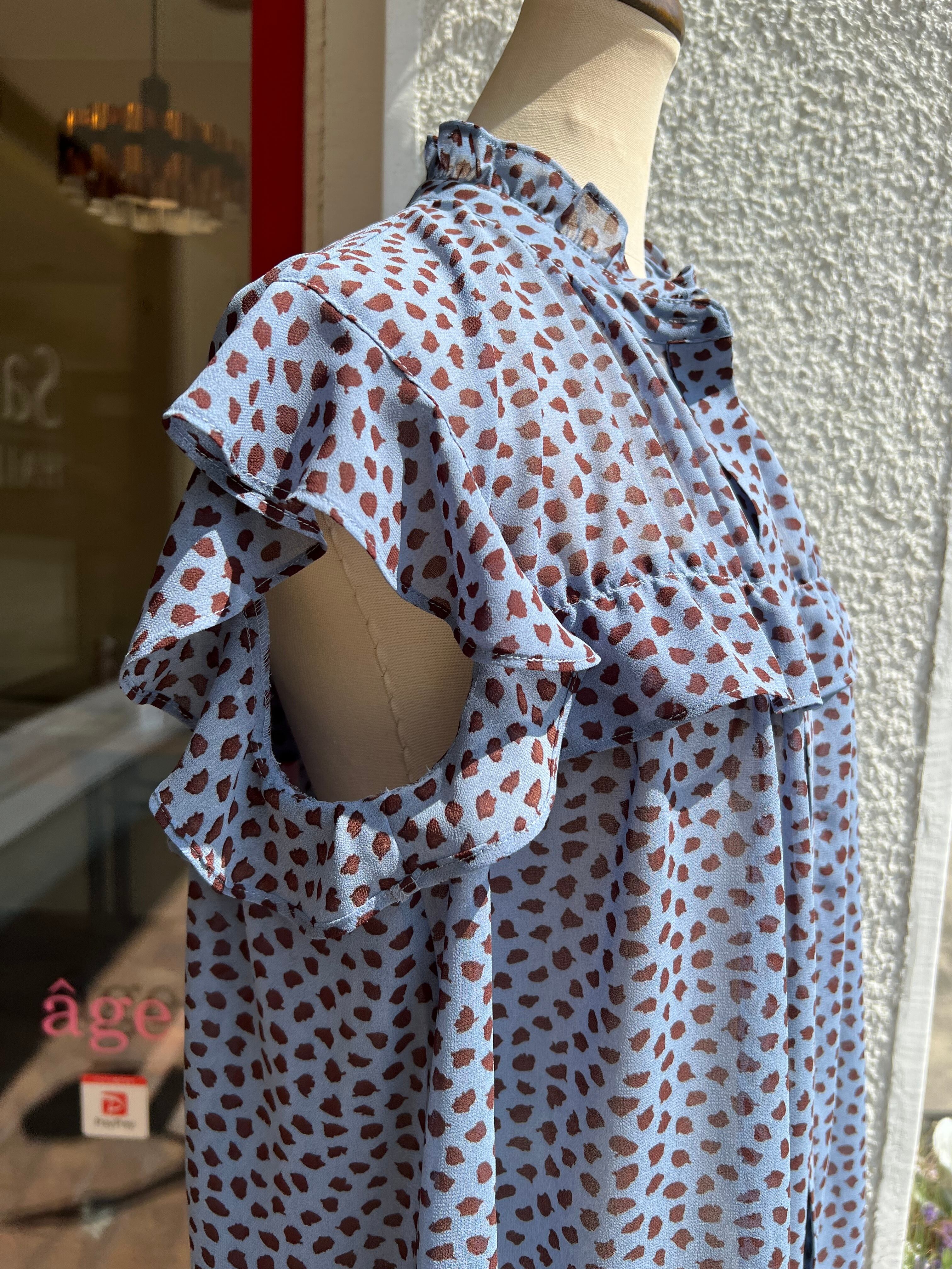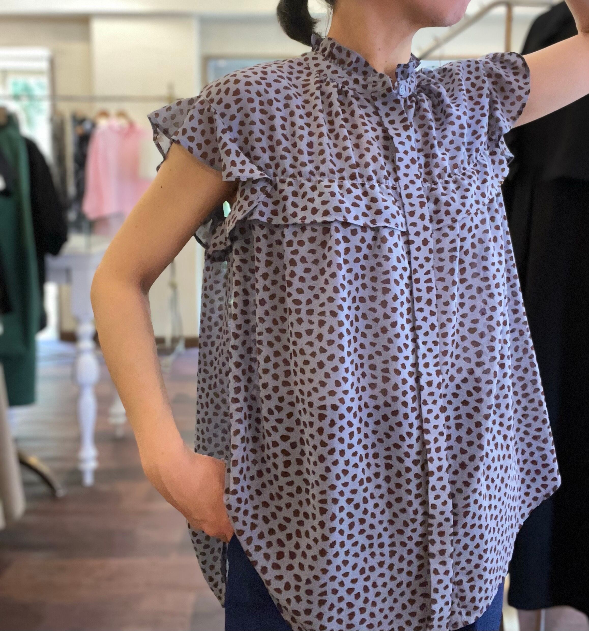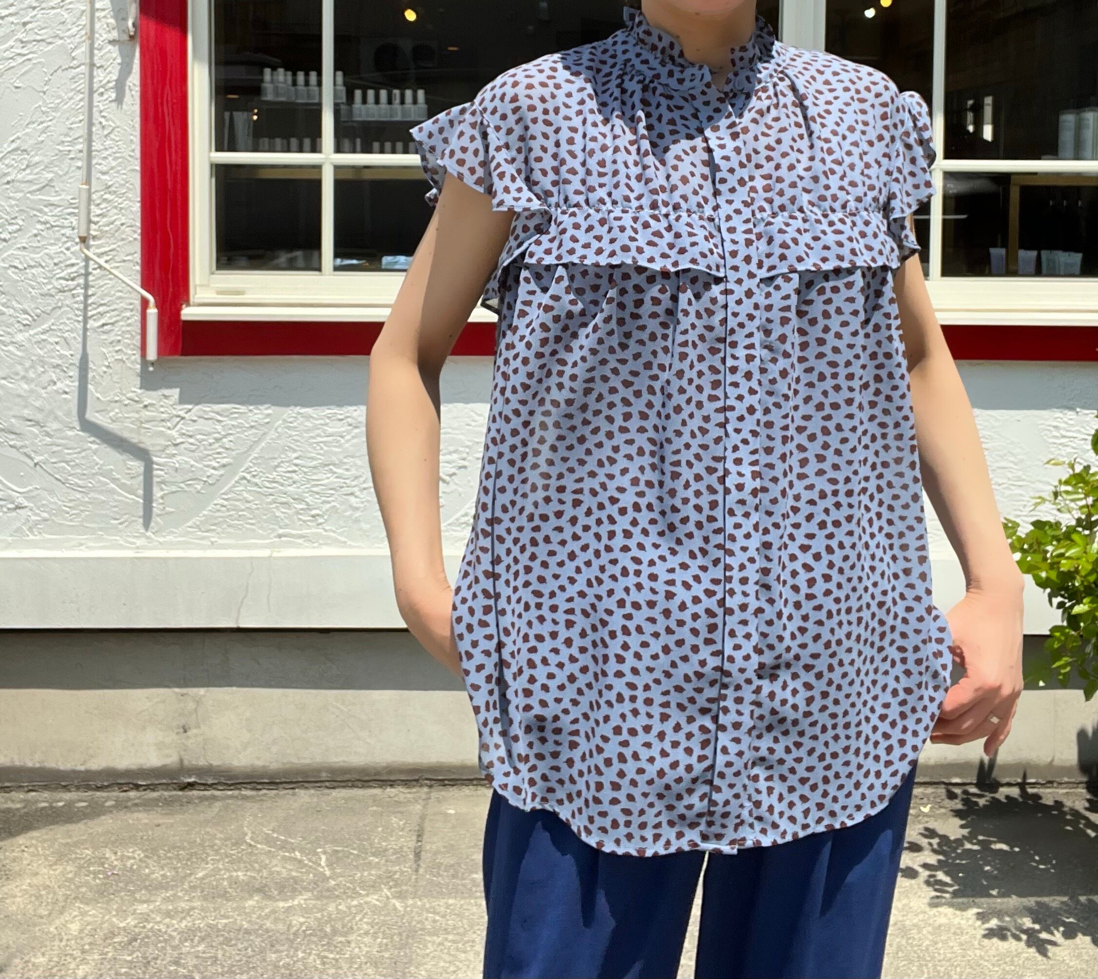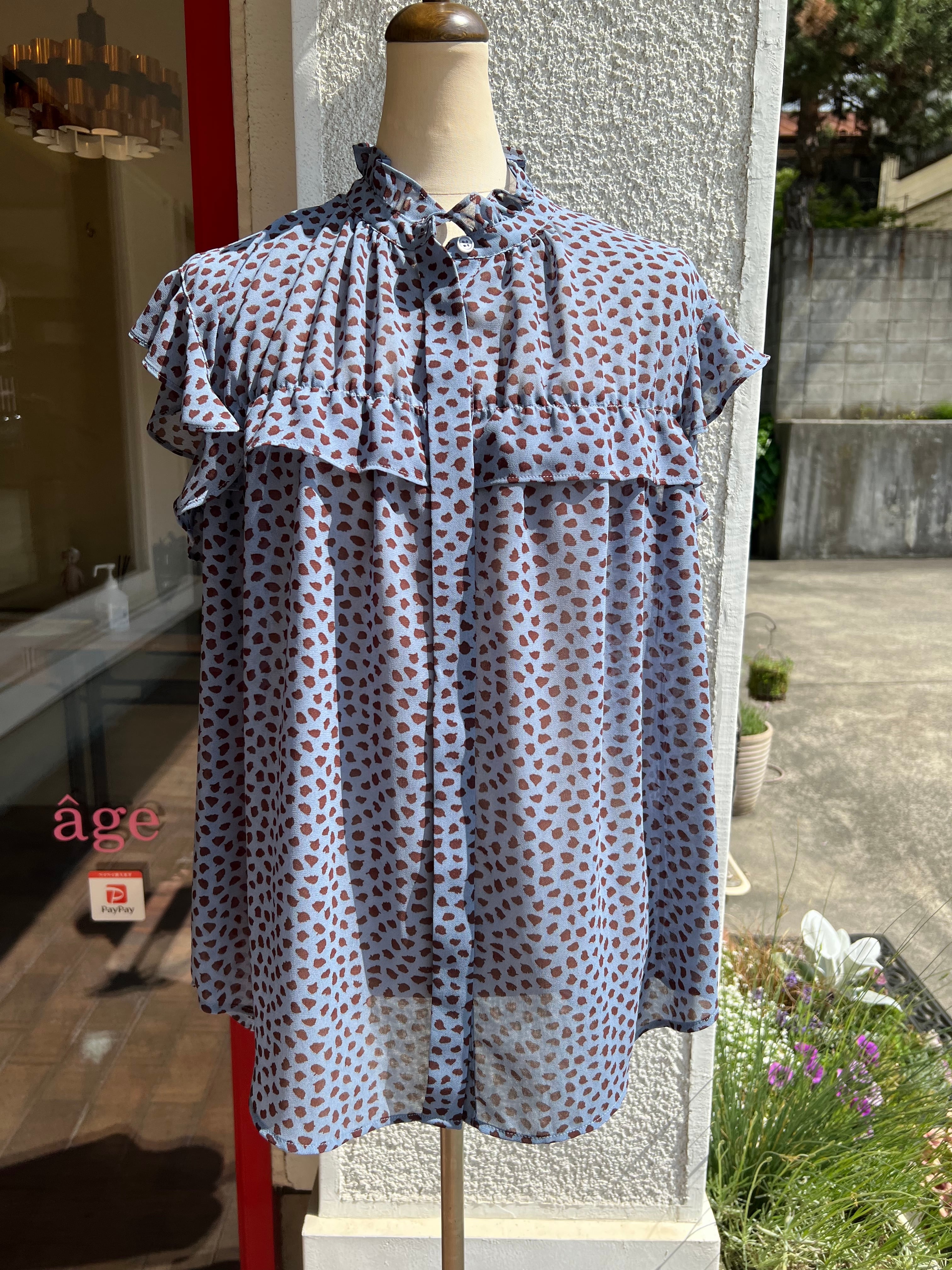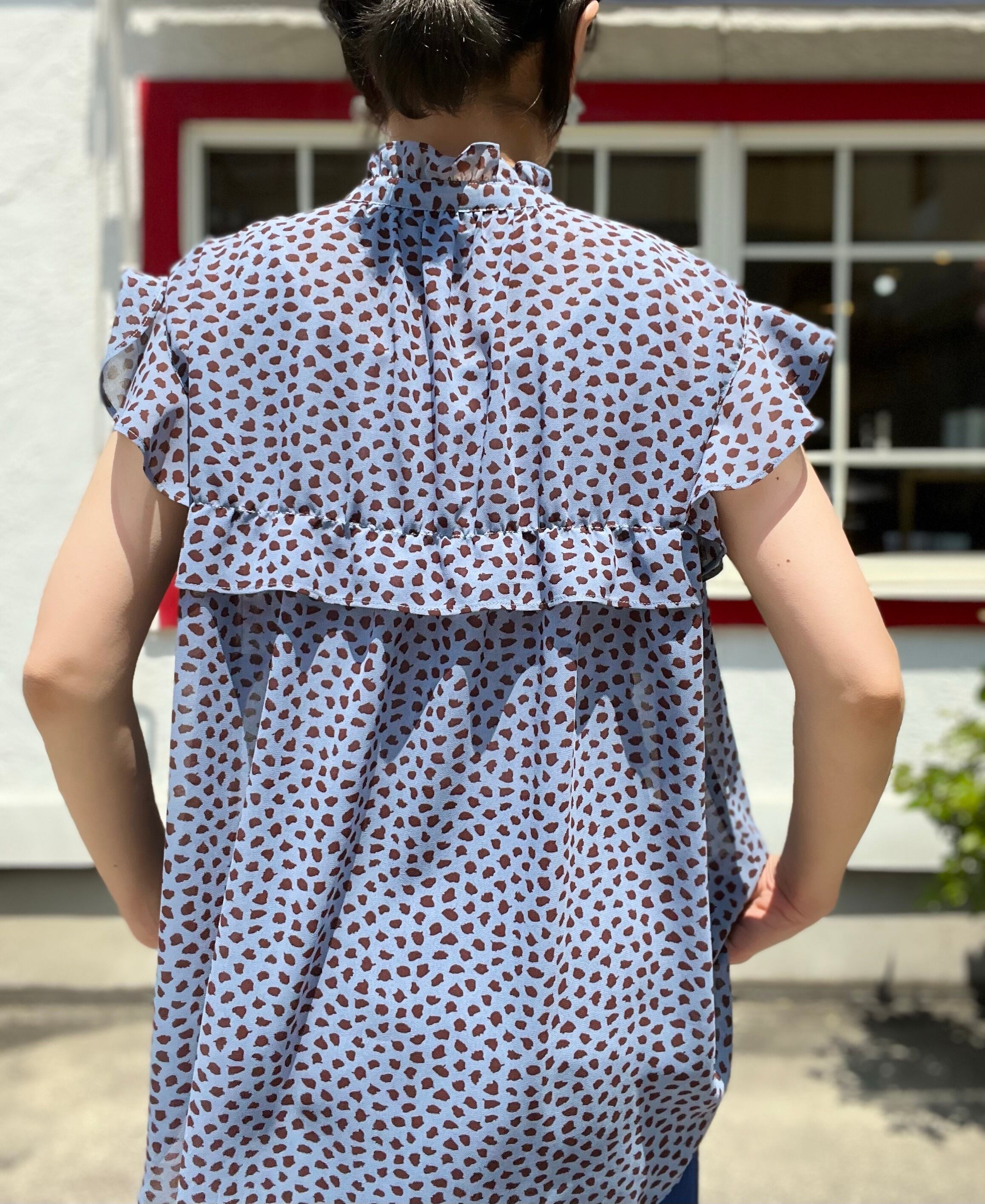 レオパード柄の軽やかなフリルが目を惹くブラウス
