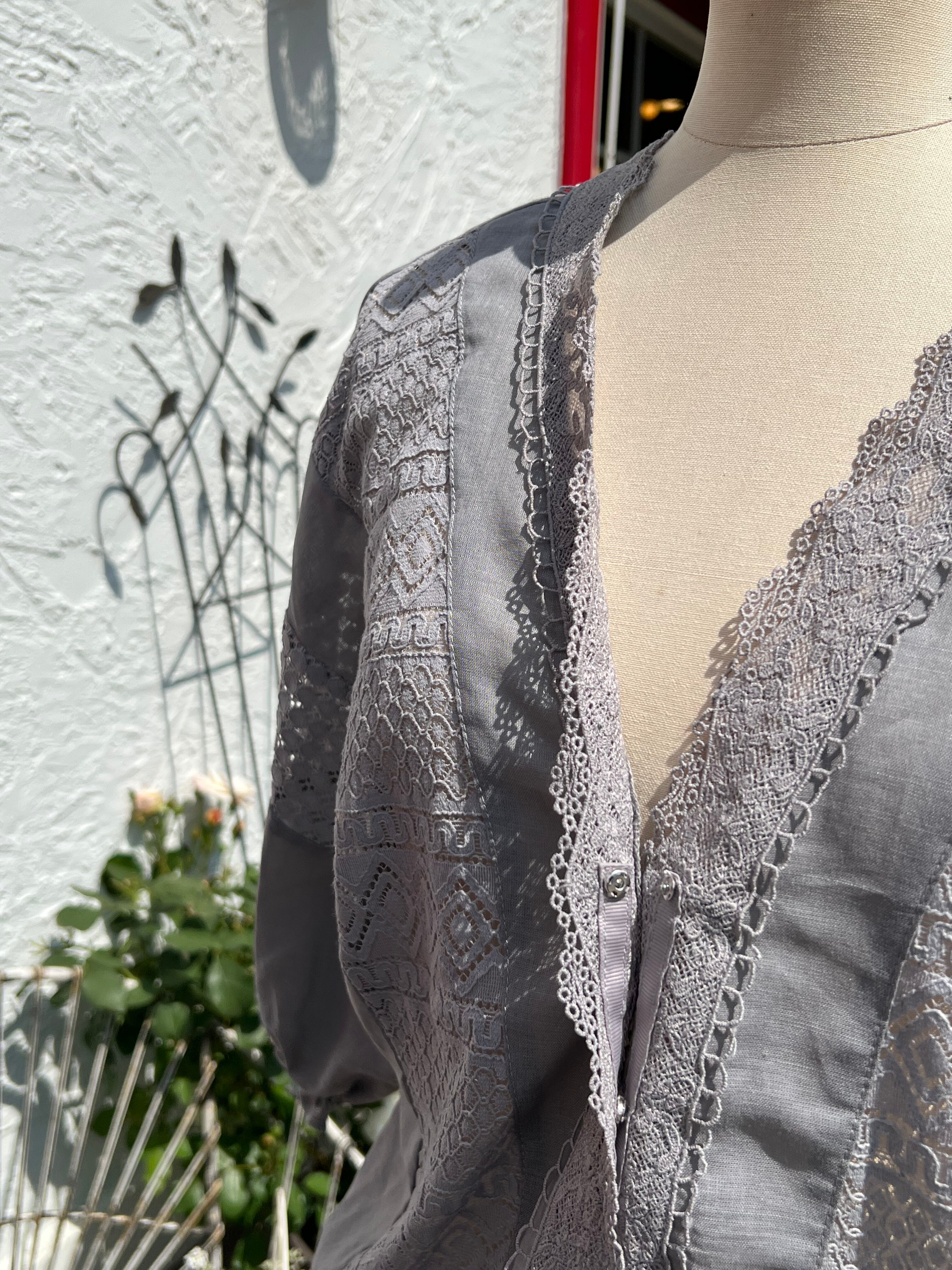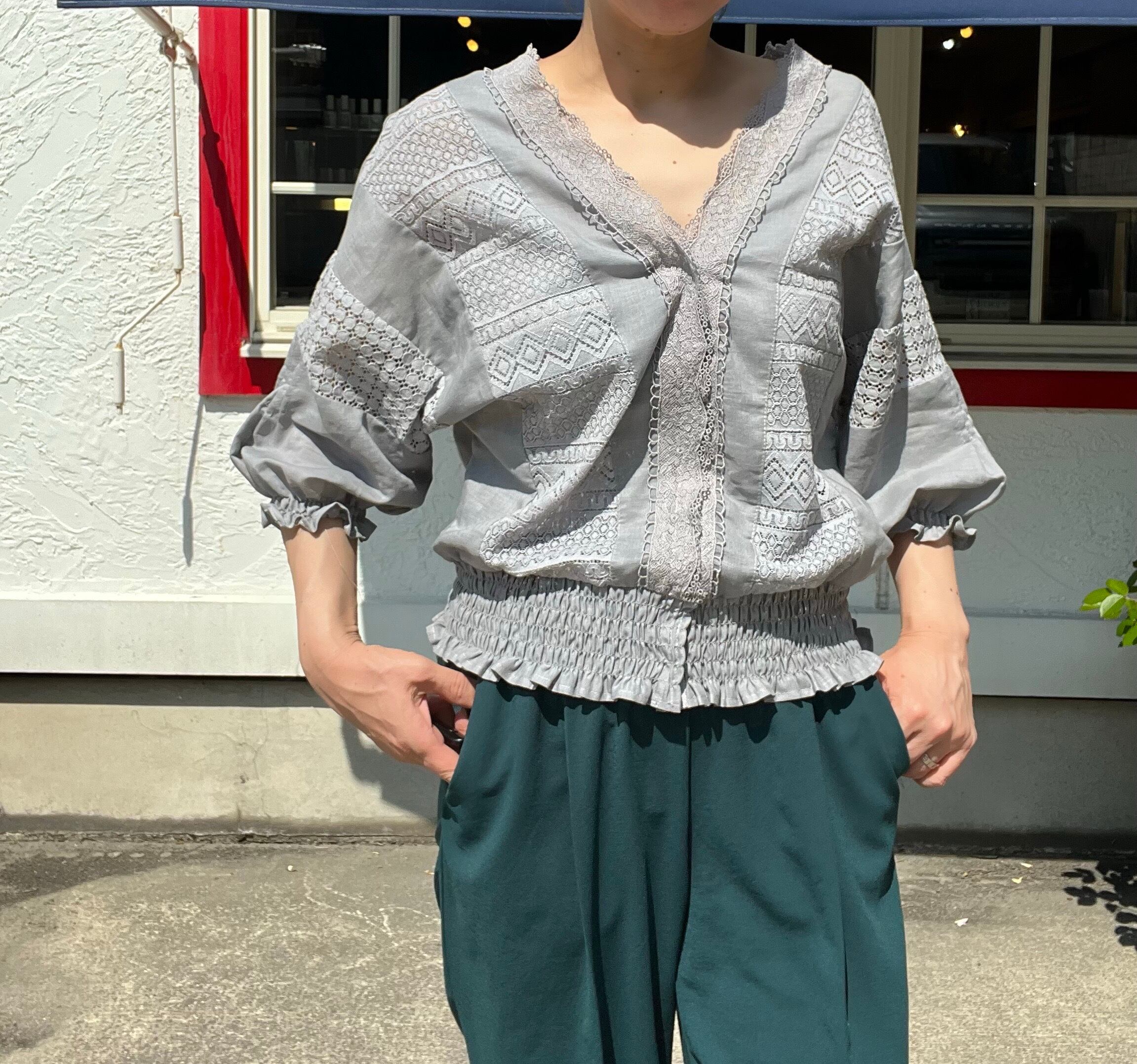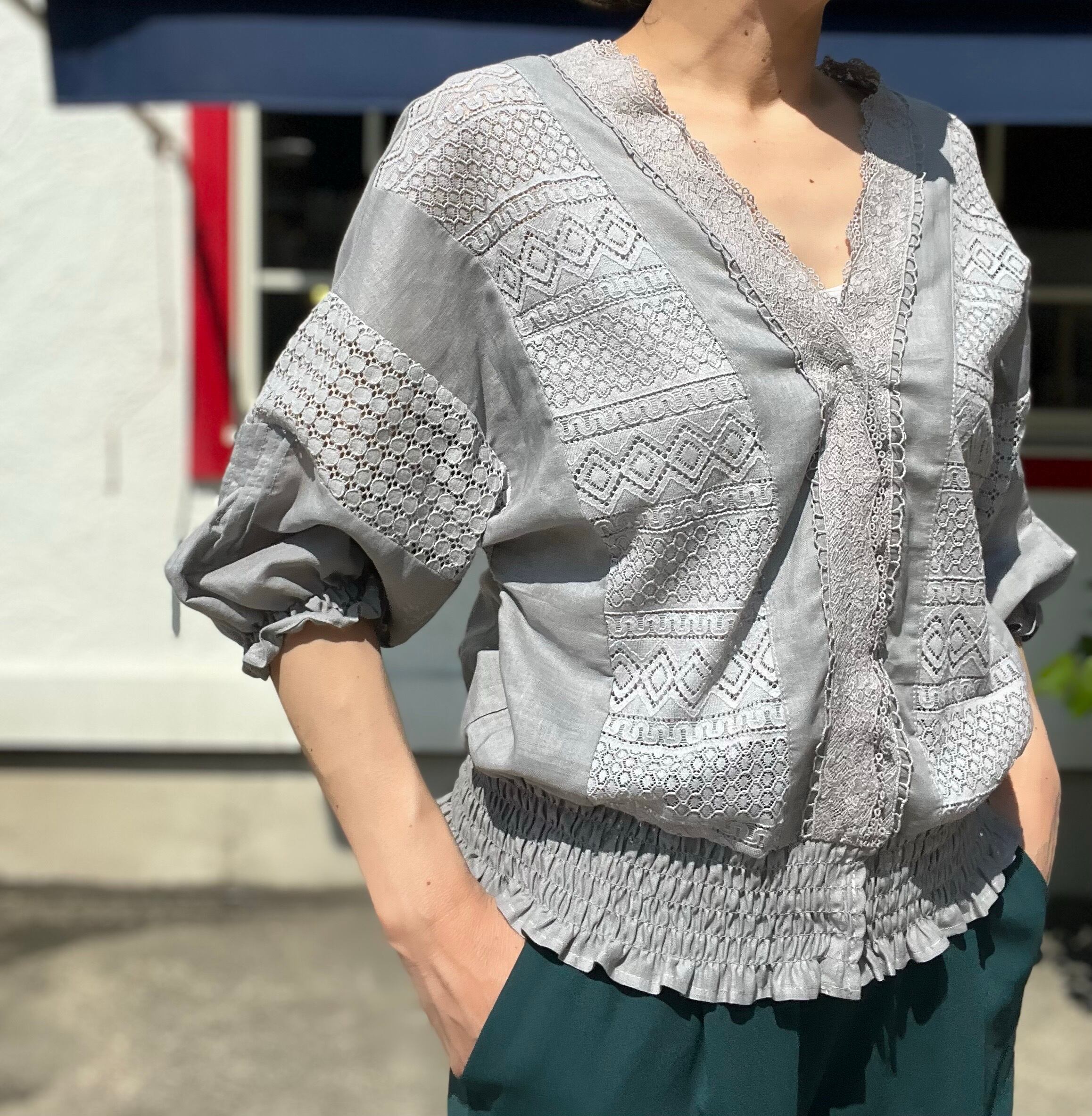 ブラウスのようで、スナップボタンが付く前開きカーディガン