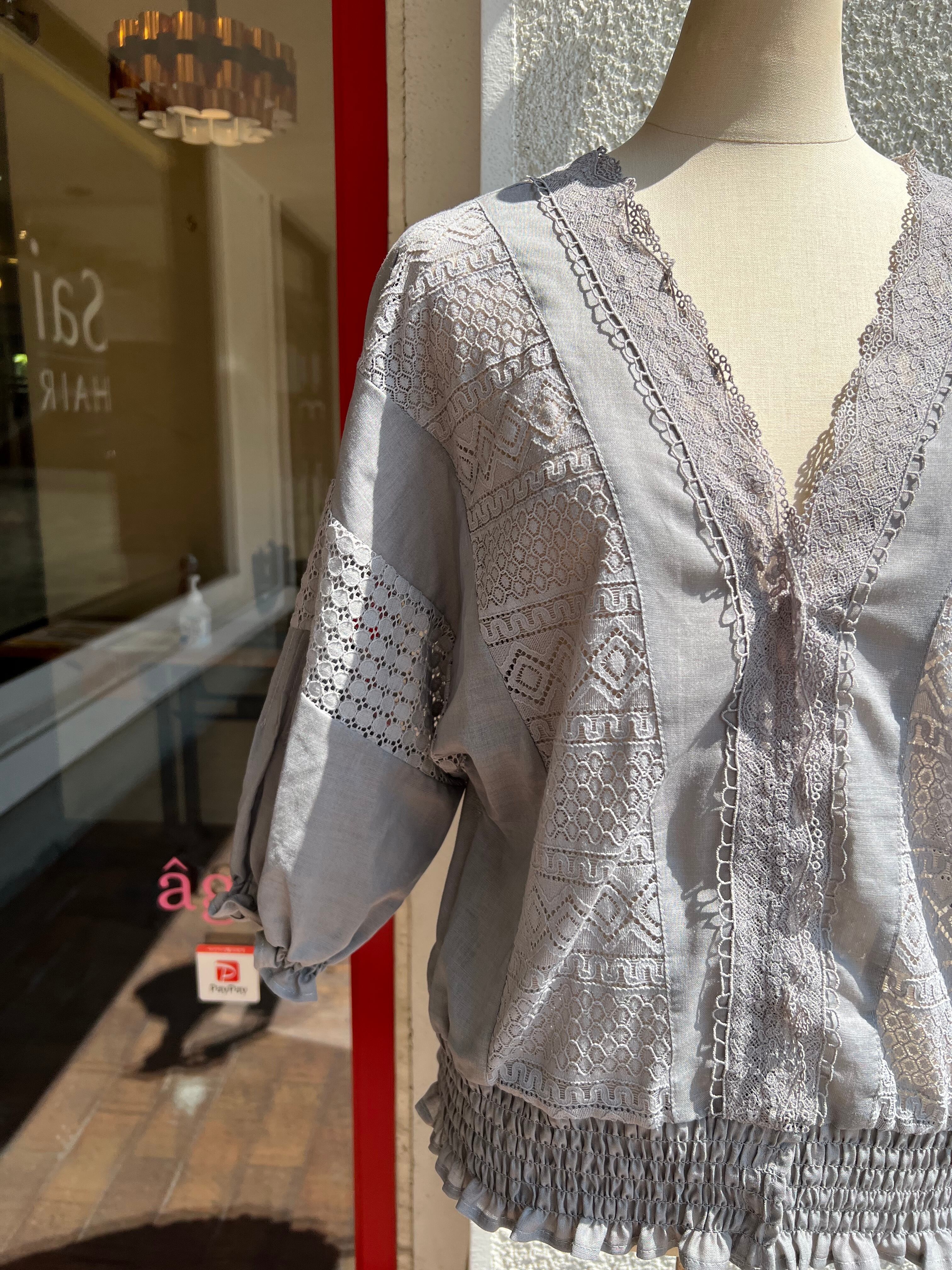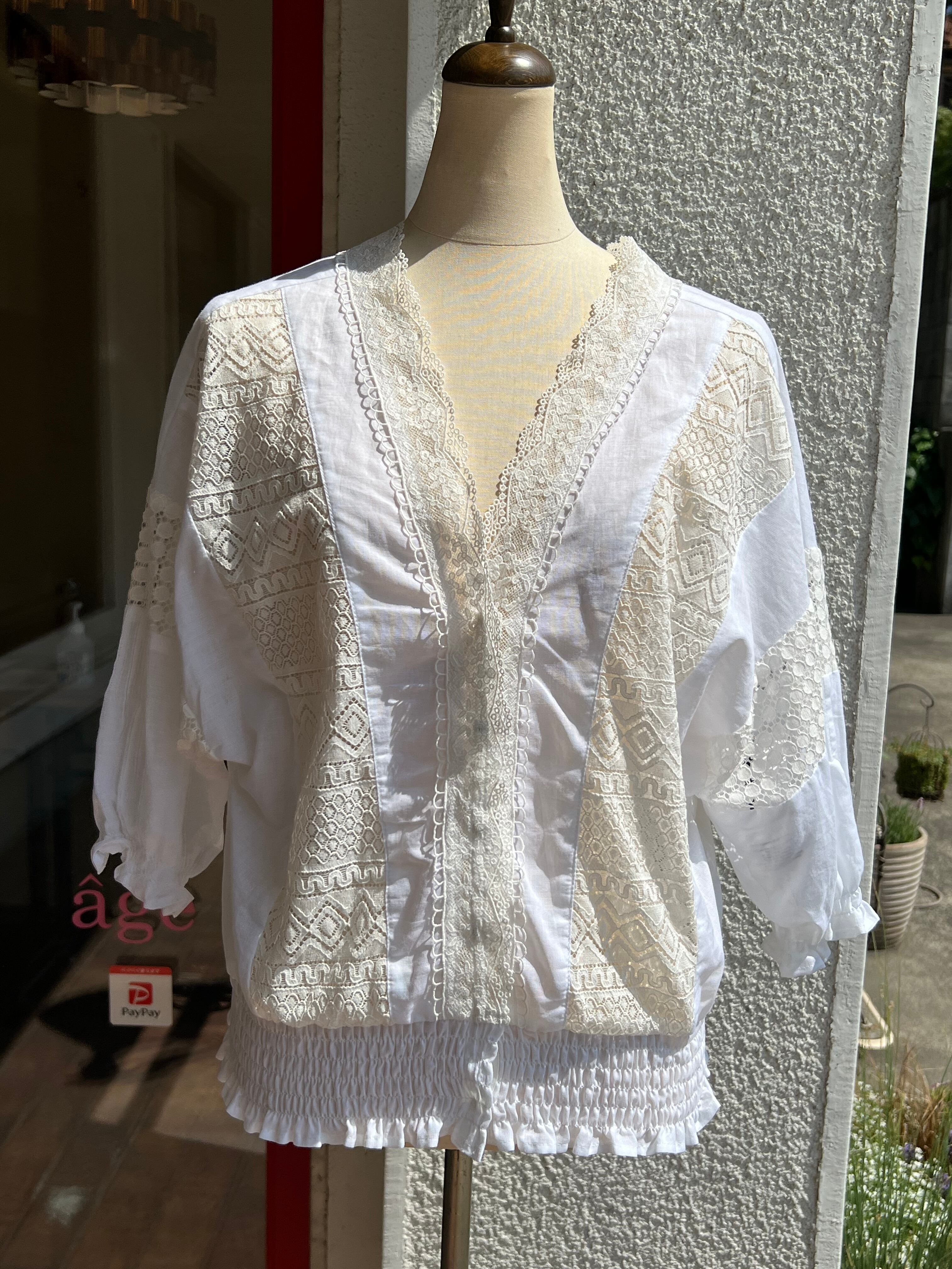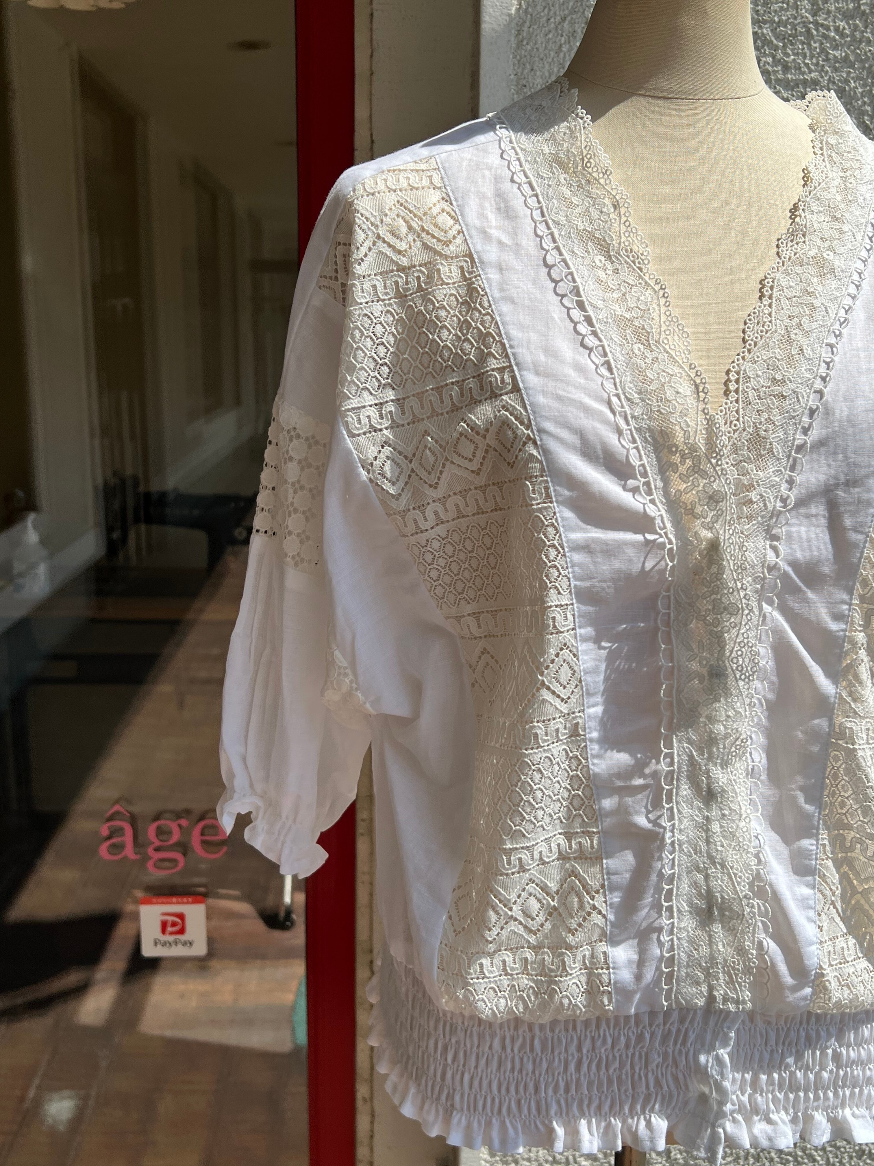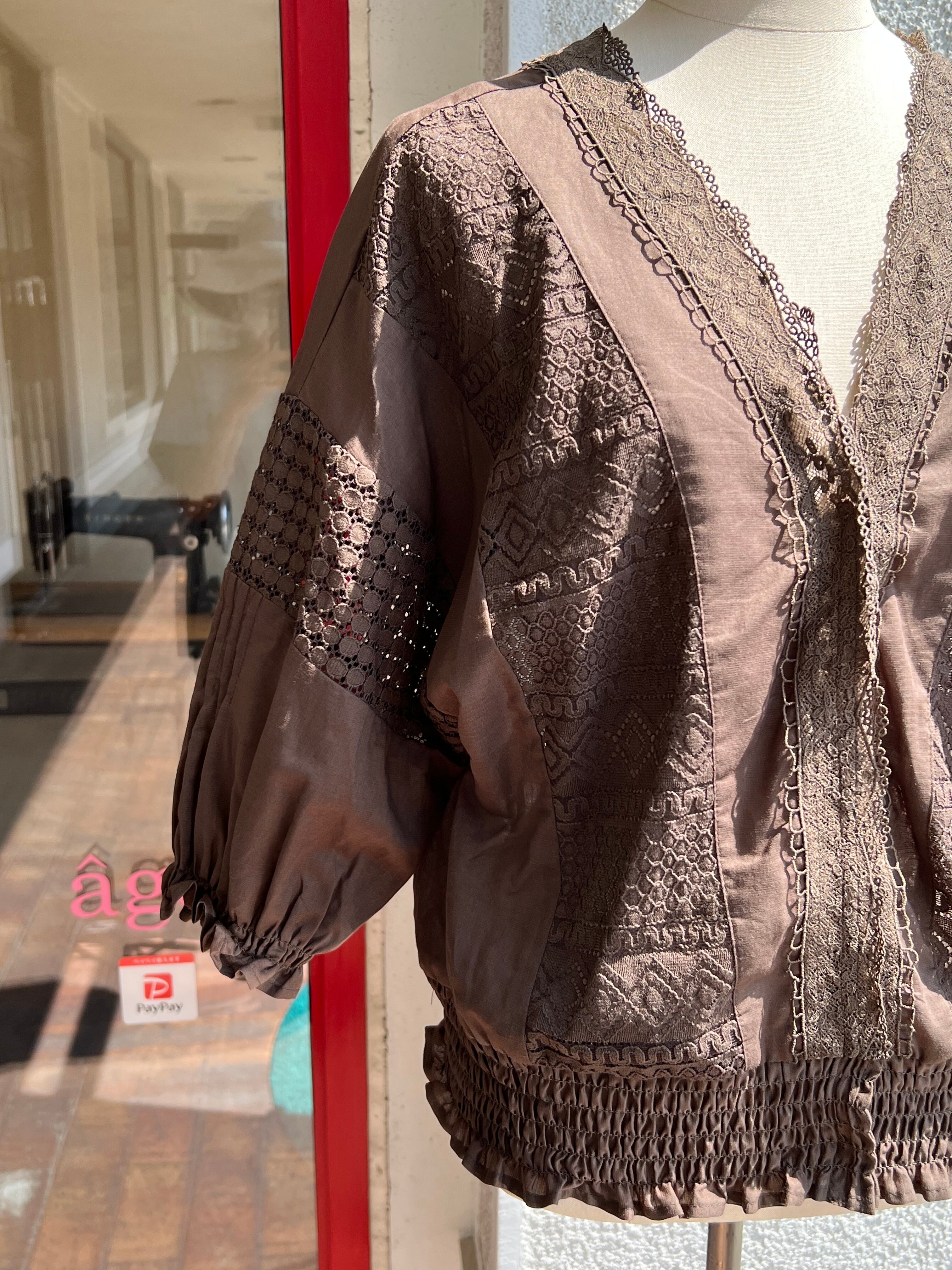 ブラウスのようで、スナップボタンが付く前開きカーディガン