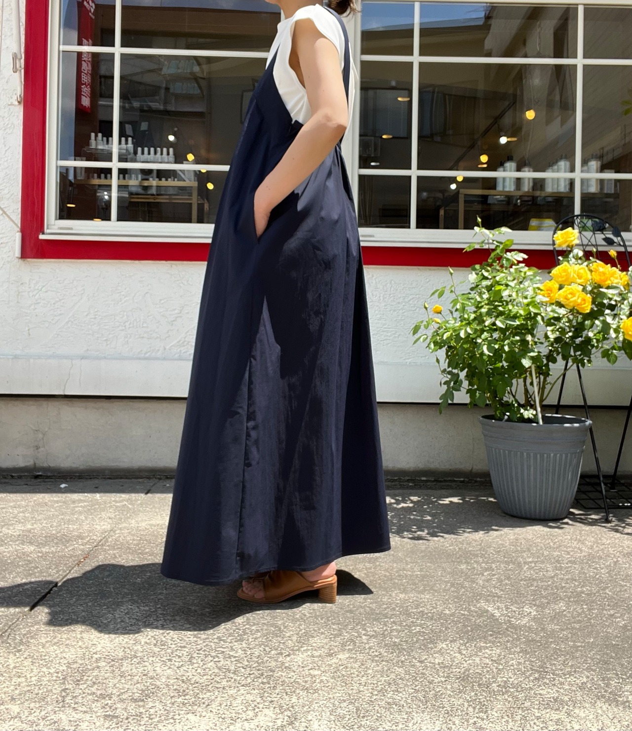 後ろが深く開きギャザーも可愛らしいジャンパースカート