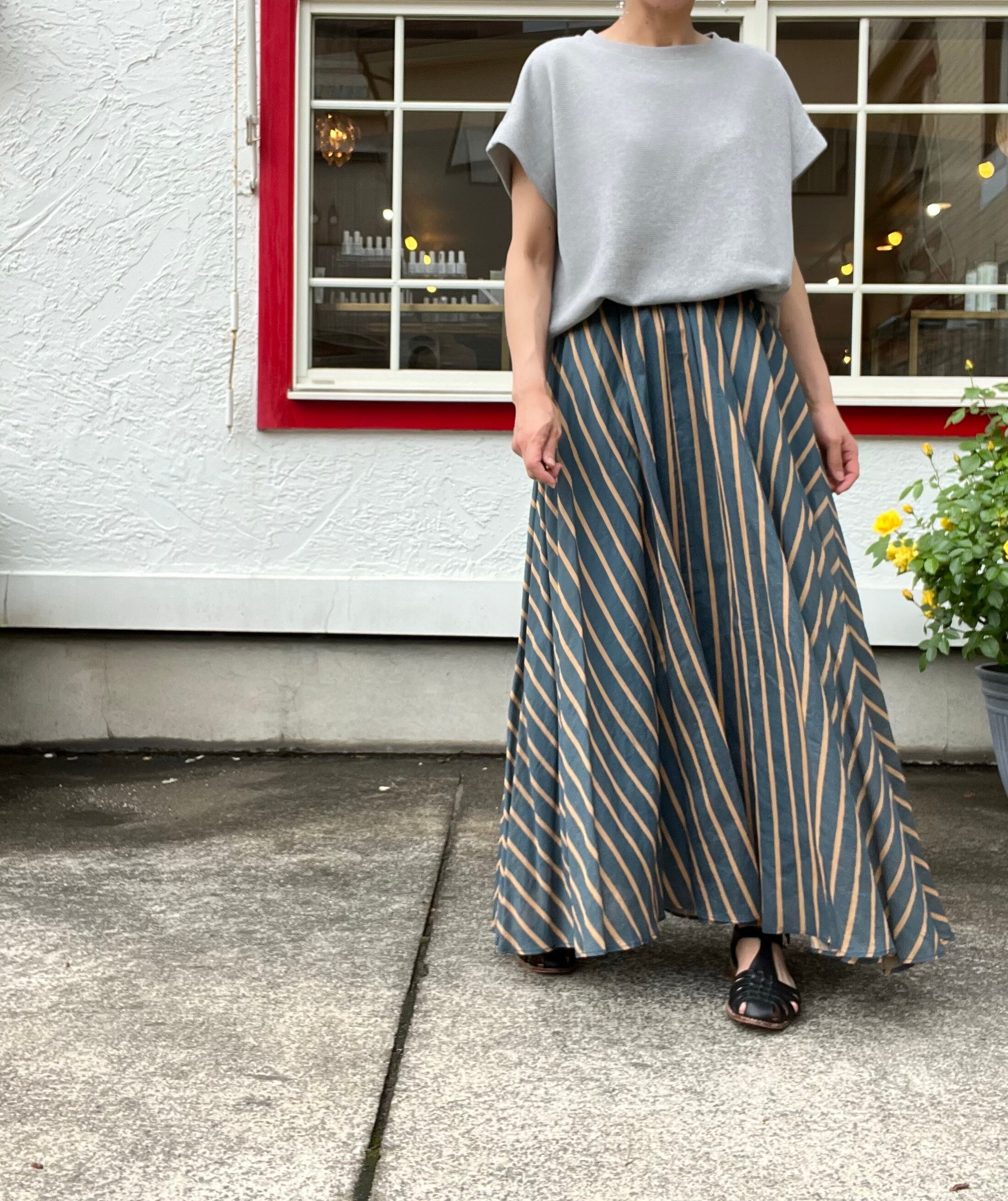 裾から足首がやや透け、ロング丈でも清涼感がございます