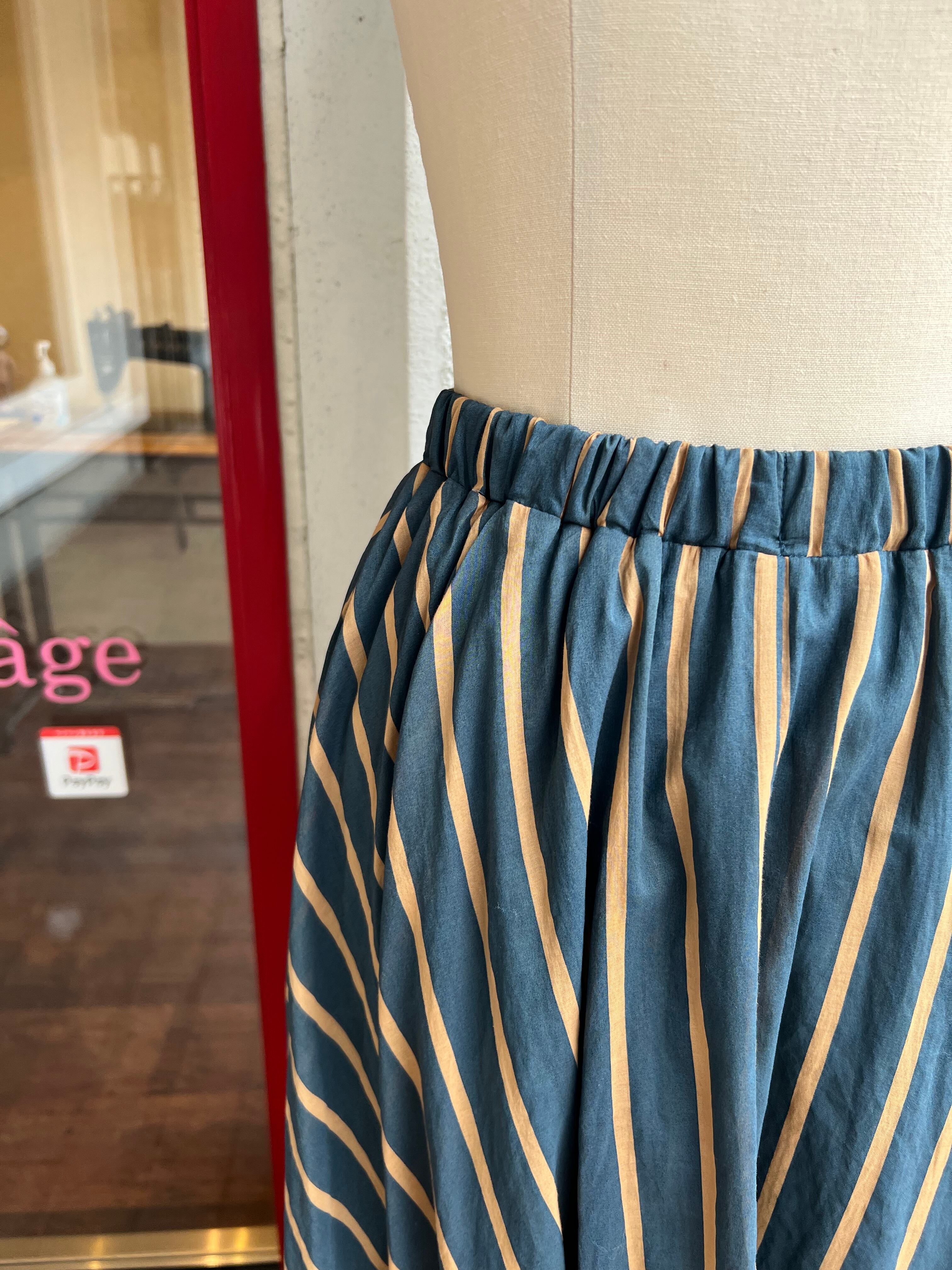 夏らしい素材ながら、晩夏まで活躍するスカートです