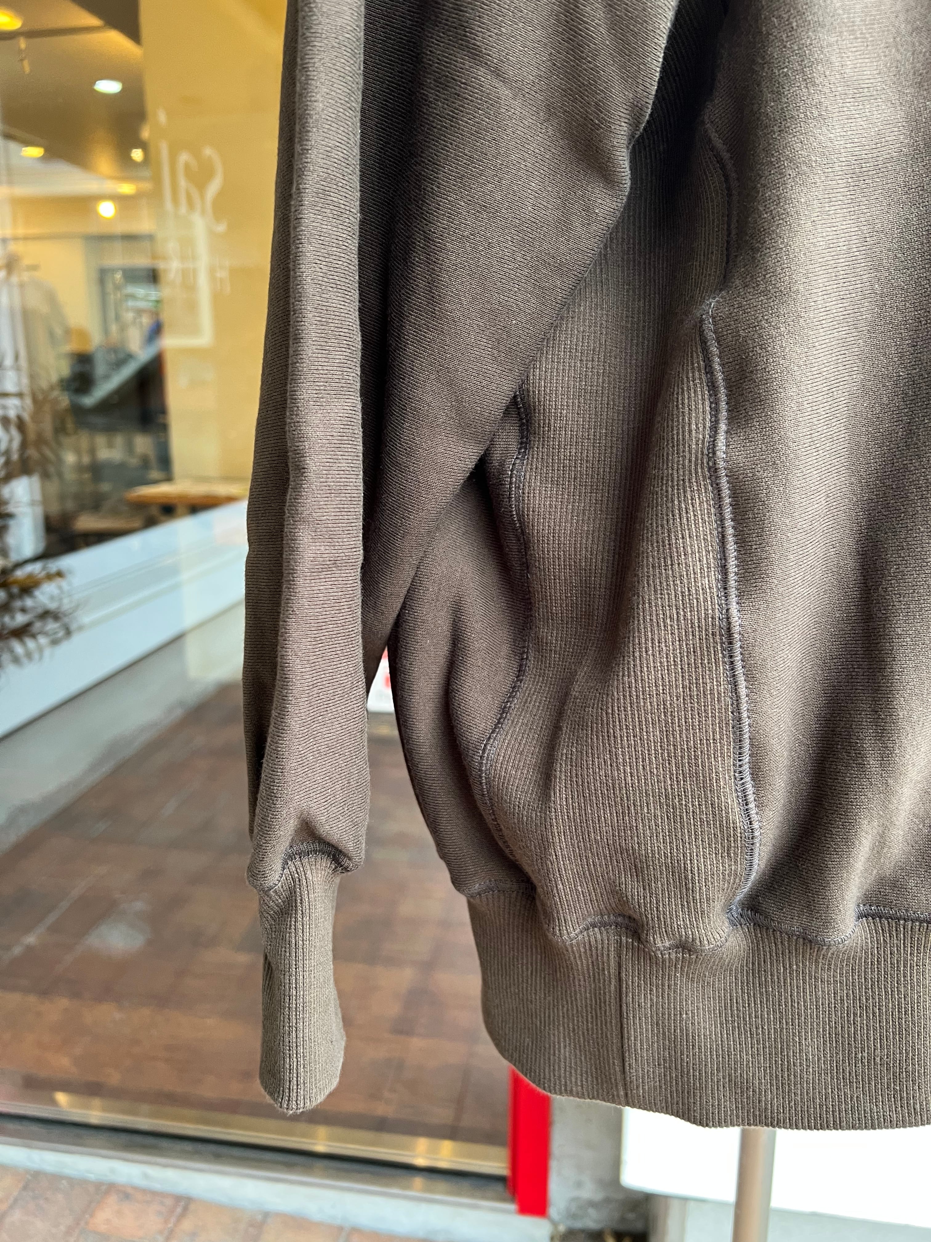 ドロップショルダーと袖のリブ上のボリュームが今年ぽくありながら、ヴィンテージ感漂うスウェットです