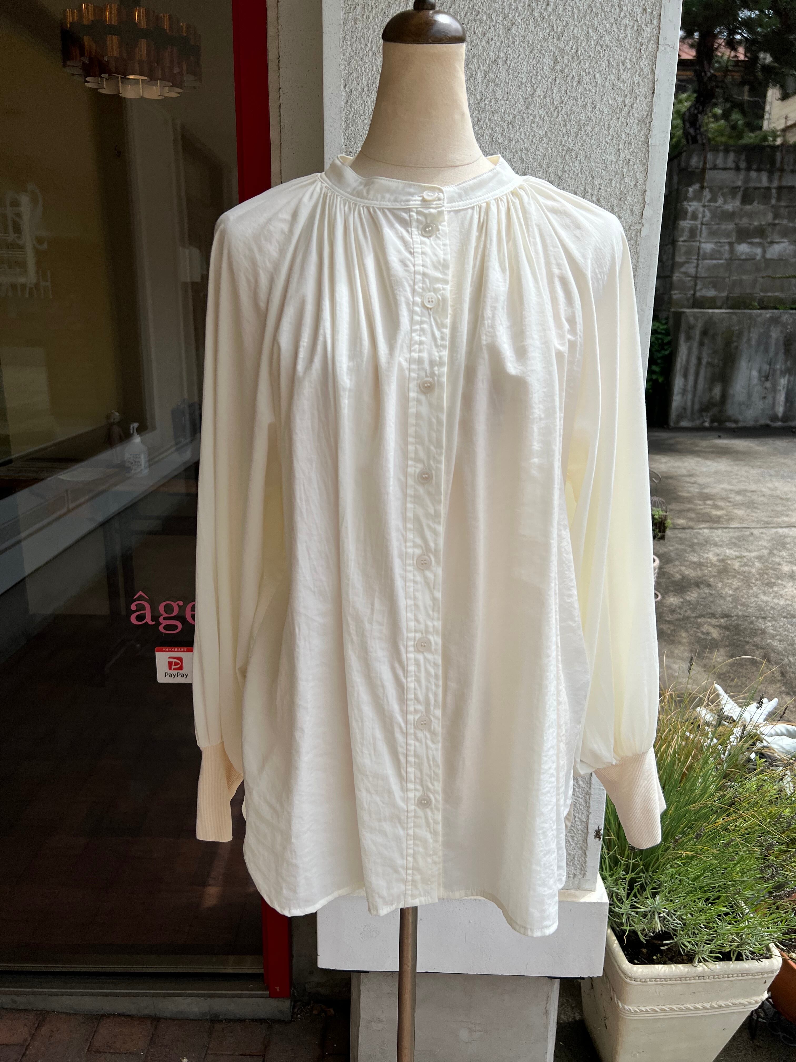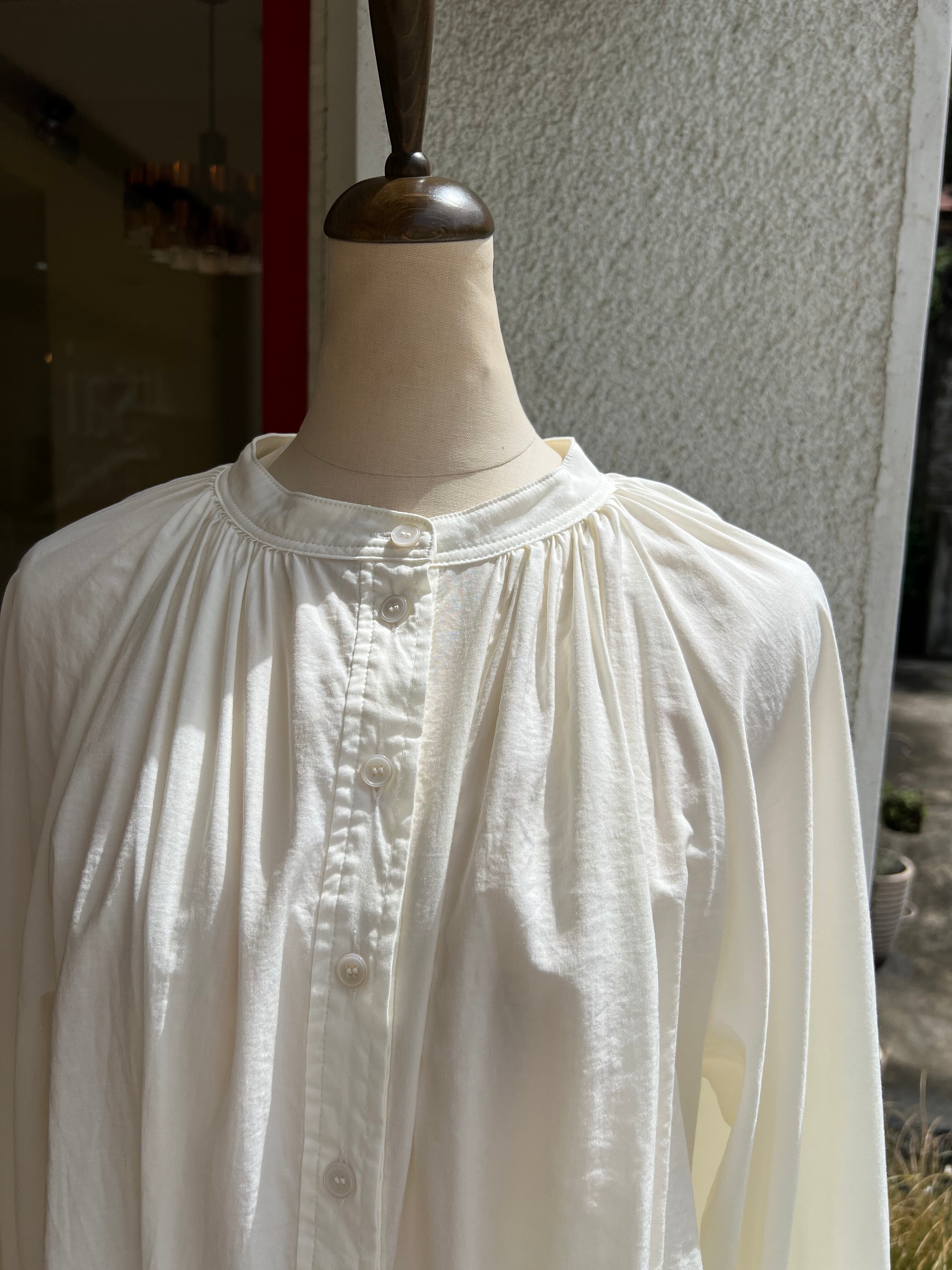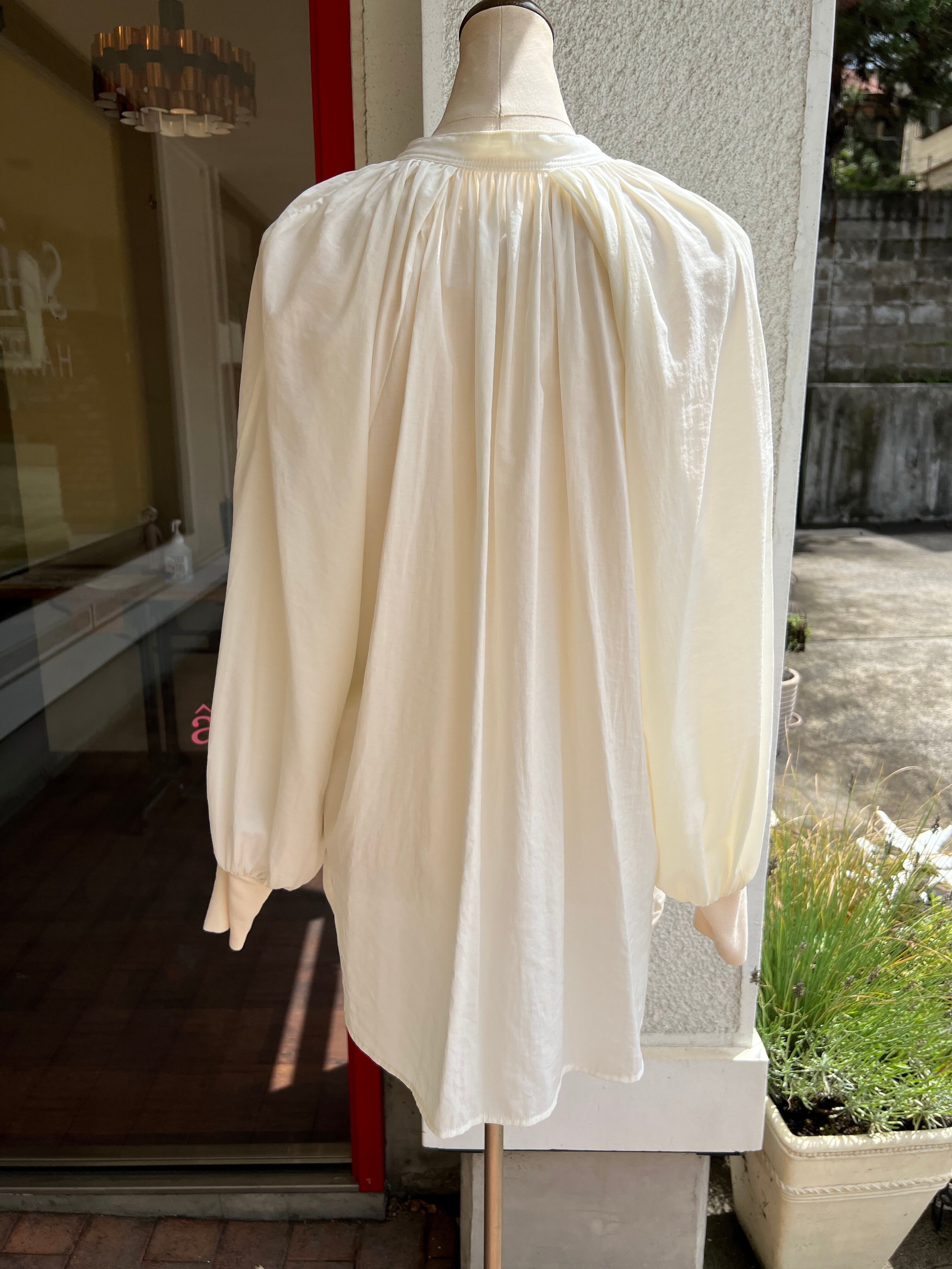 襟周りにたくさんのギャザーが入るクラシカルなブラウス