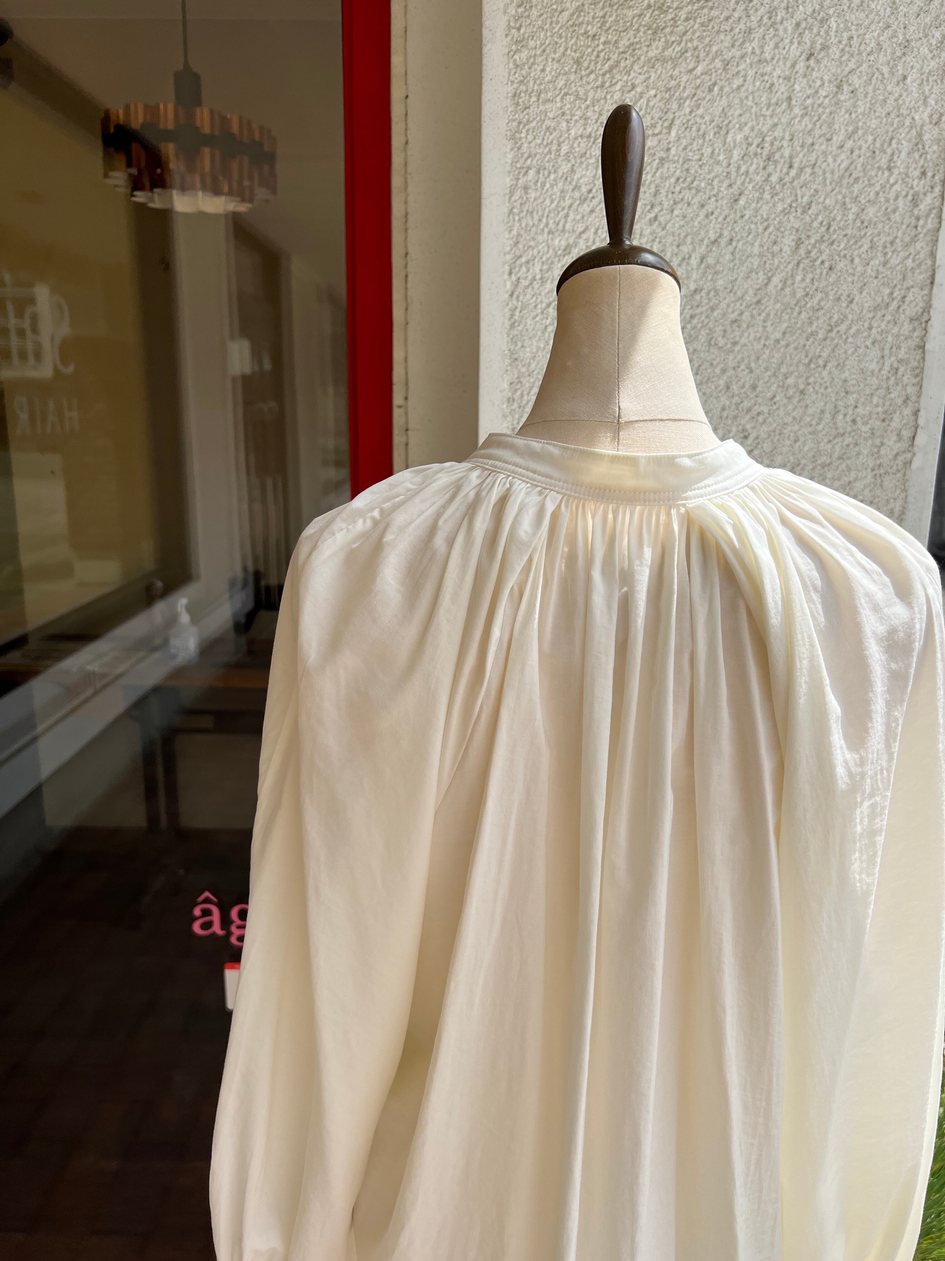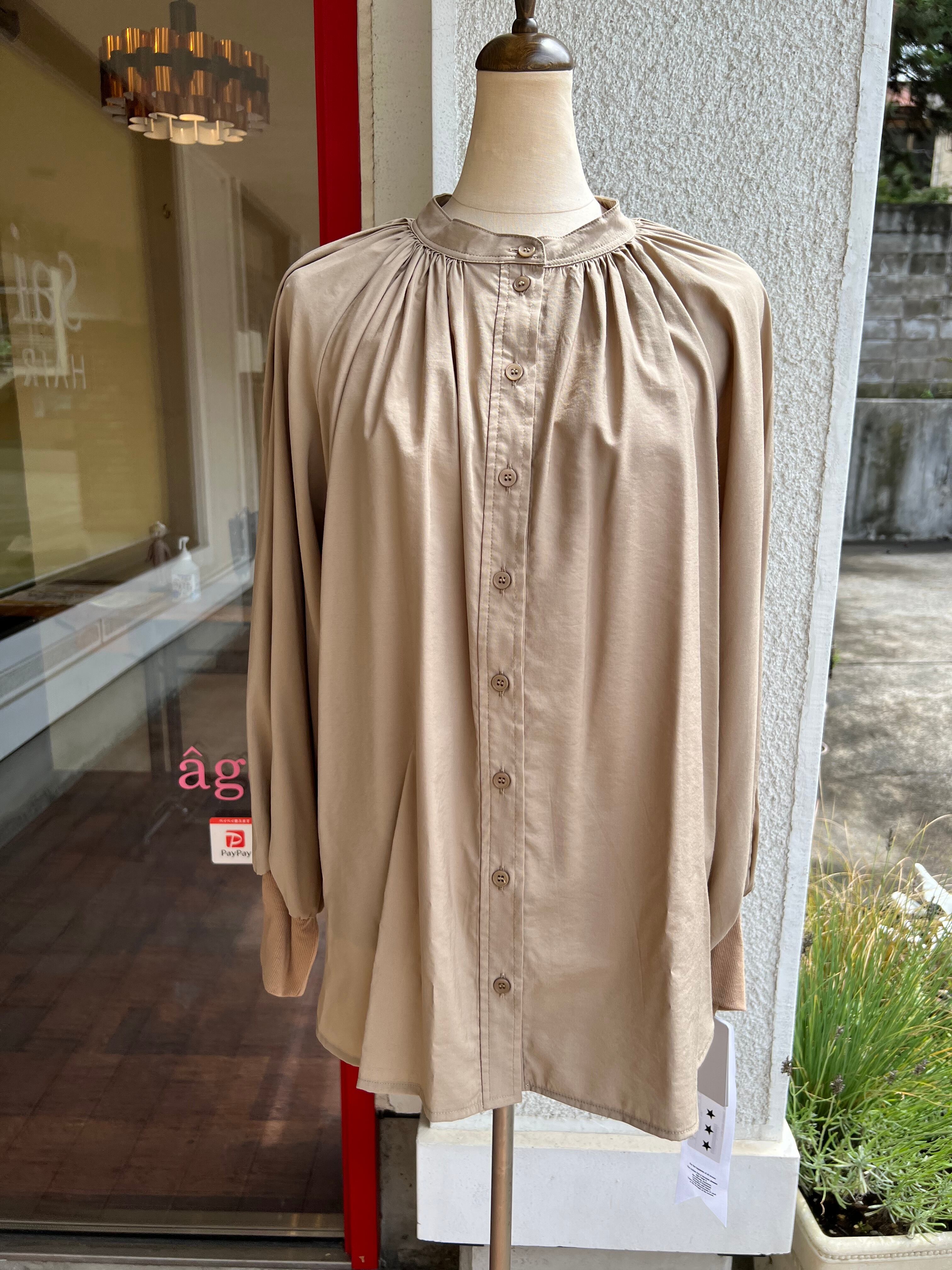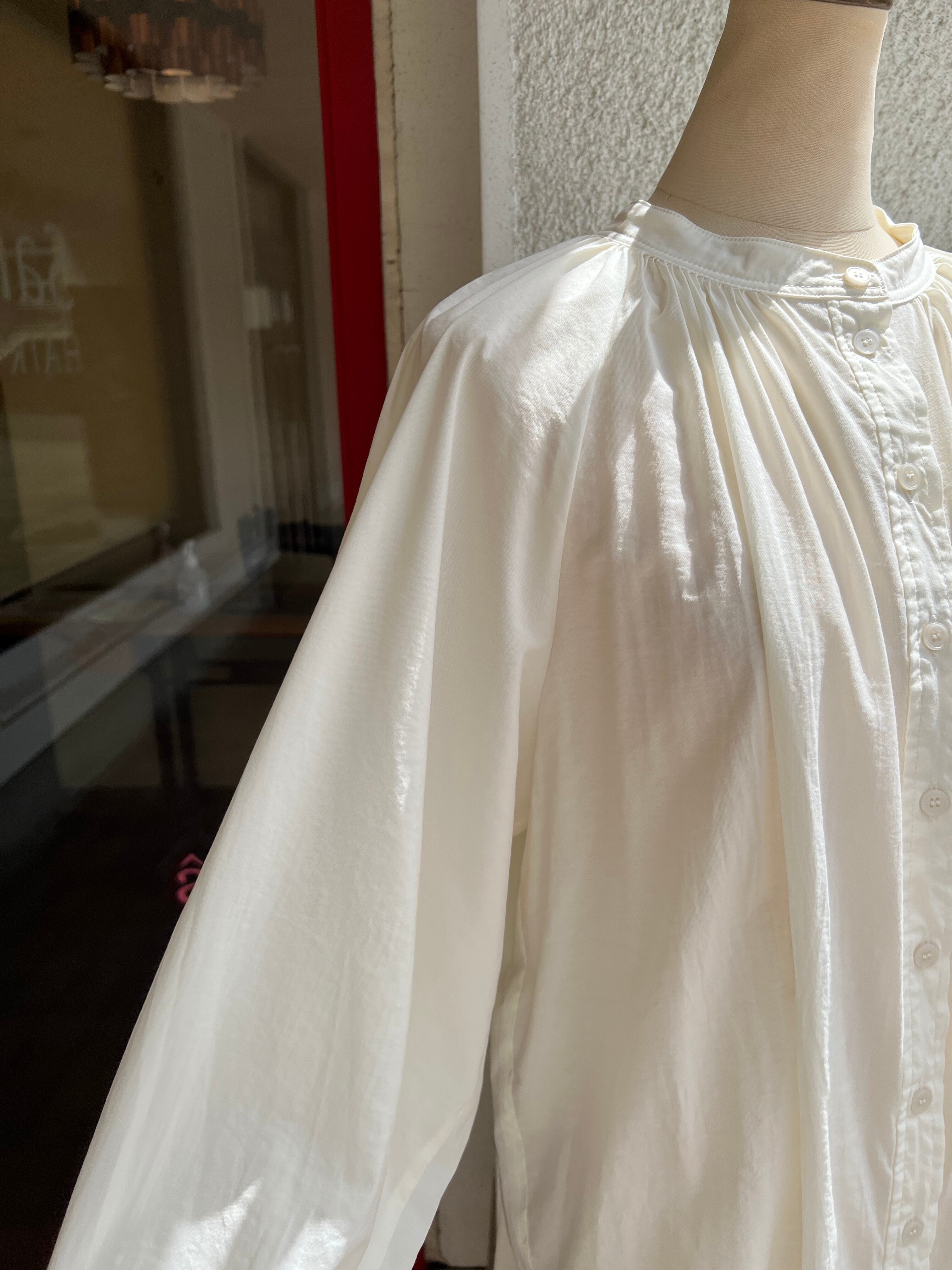 襟周りにたくさんのギャザーが入るクラシカルなブラウス