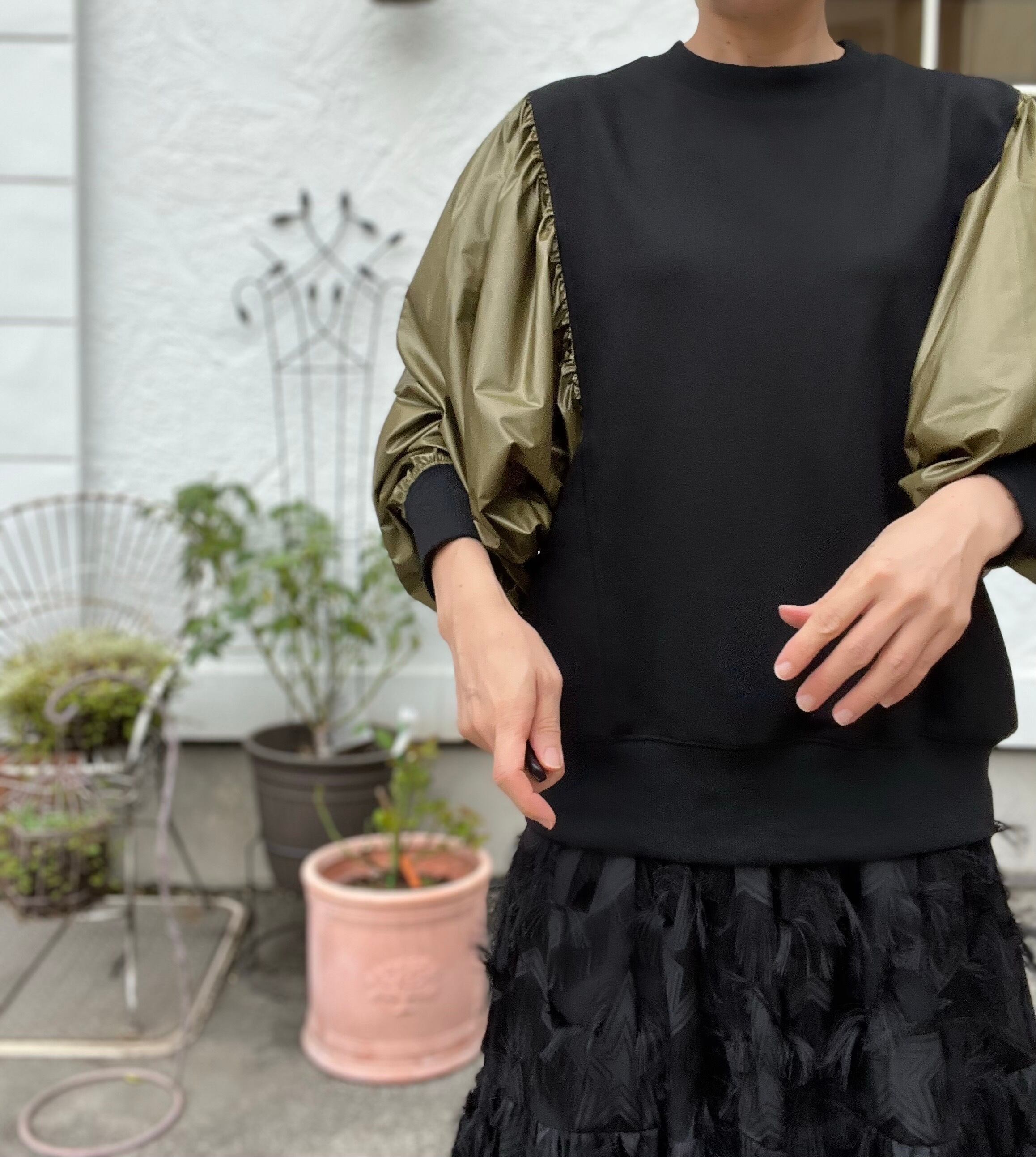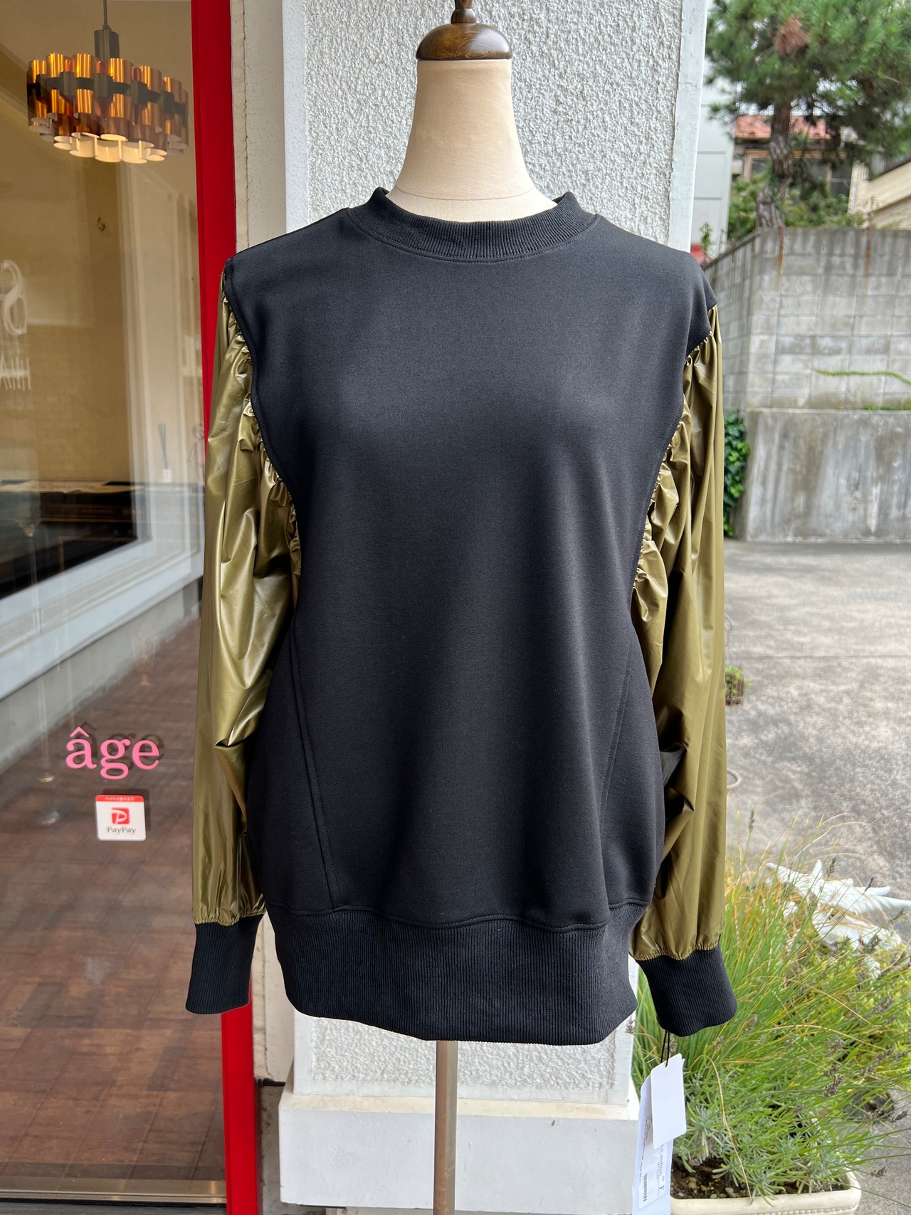 光沢のある袖生地は柔らかく、袖口は止まりが良いリブ袖仕上げです