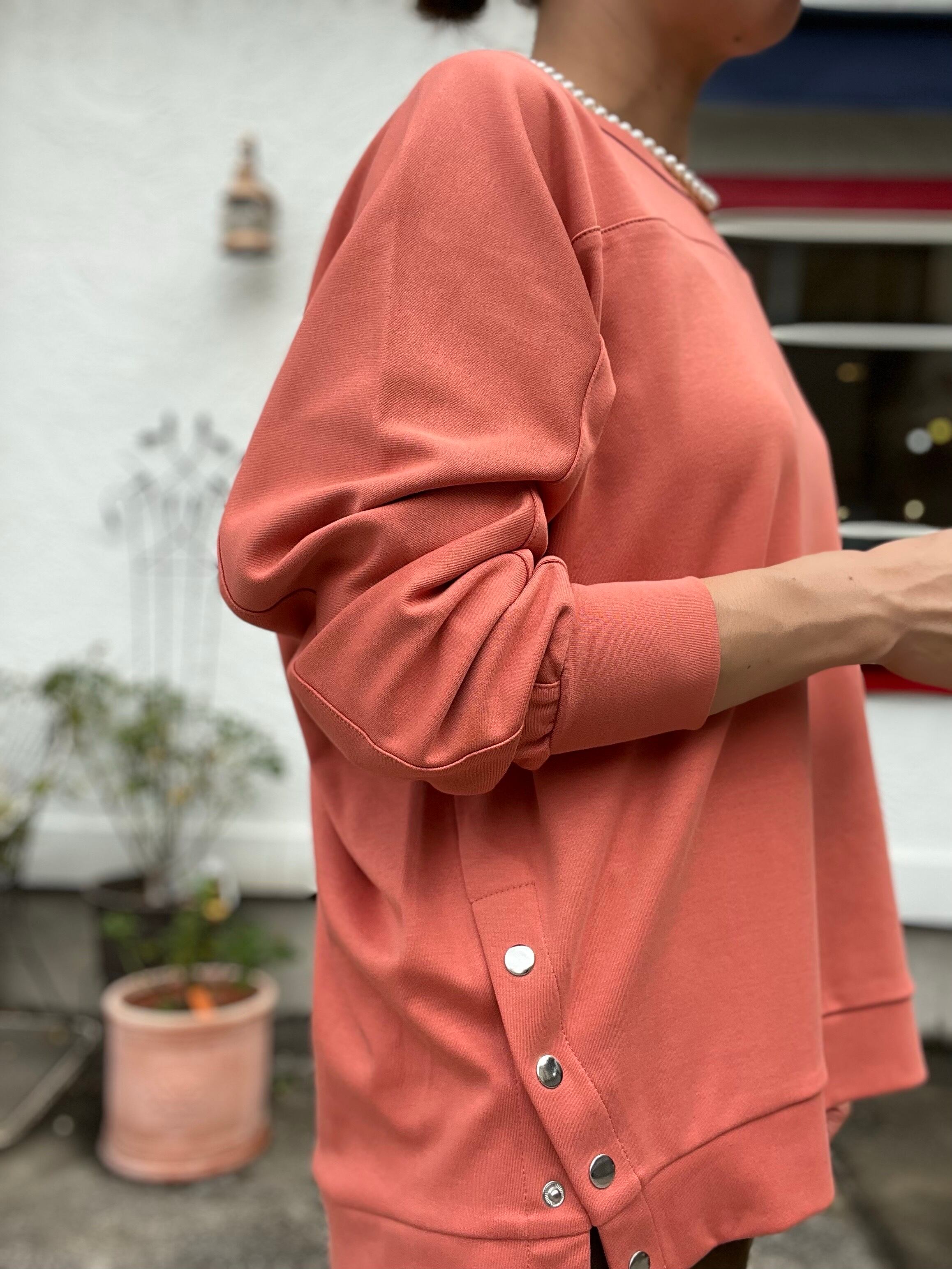 程よいサイズ感のスタッズ付きプルオーバー