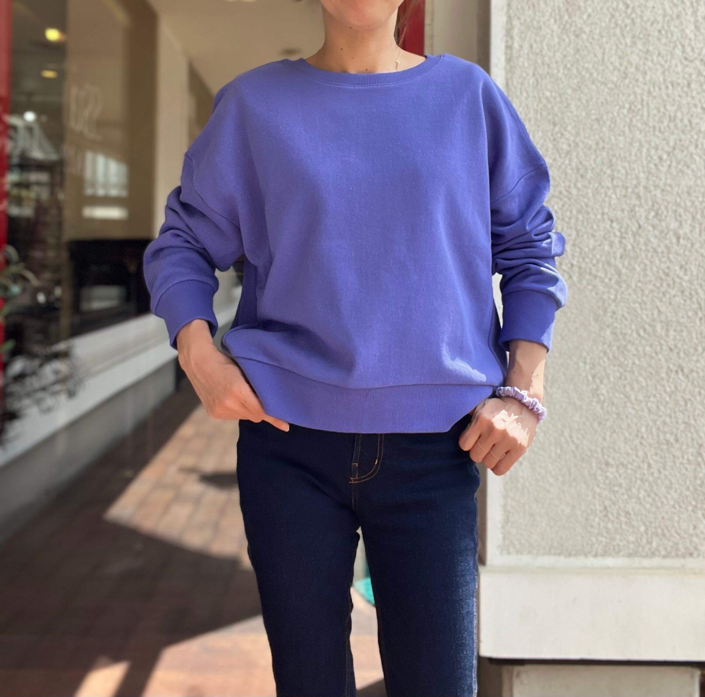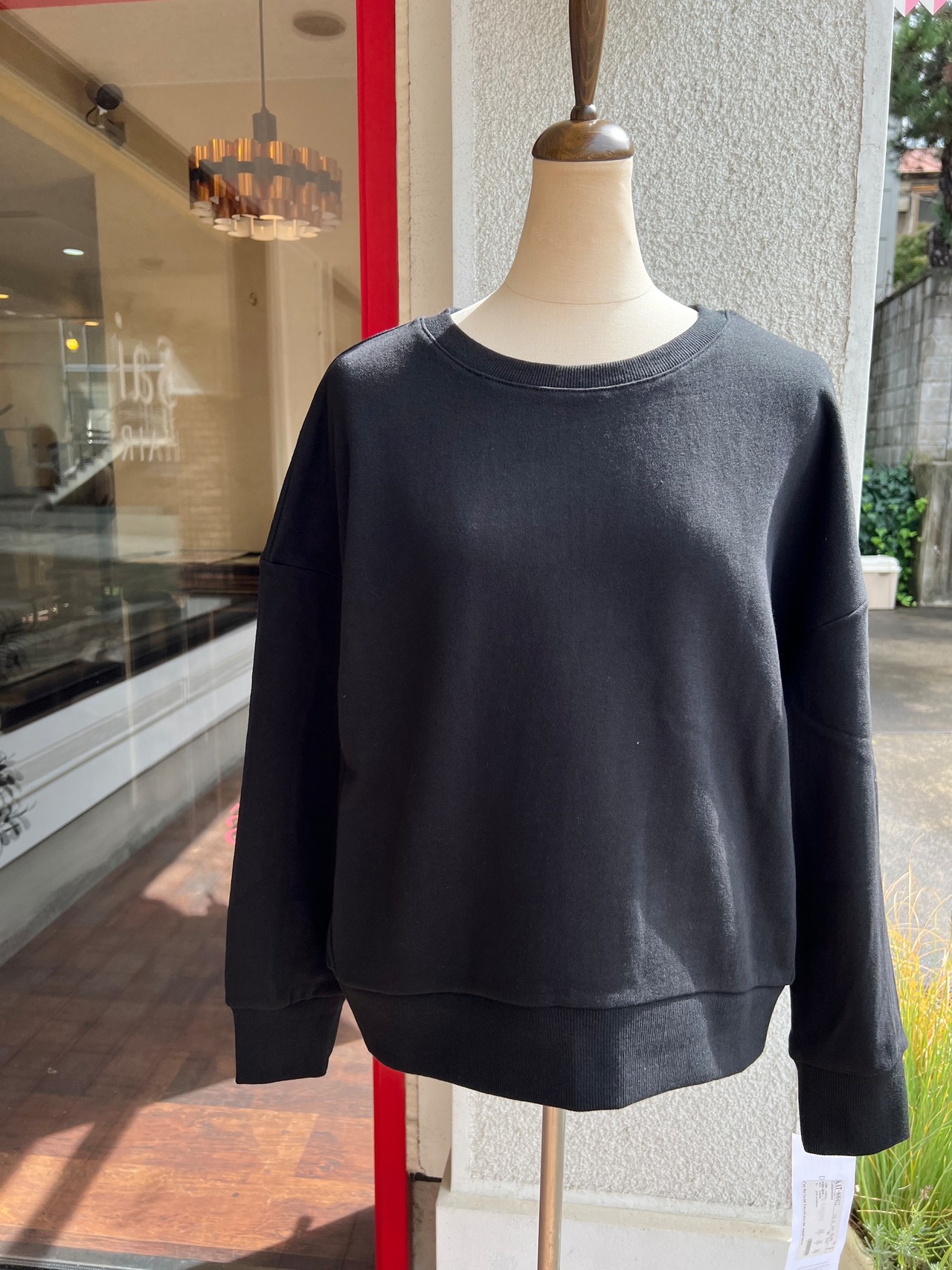 サイドに広がるネックラインと、締め付け感のない裾が、ショート丈を着やすくさせてくれます