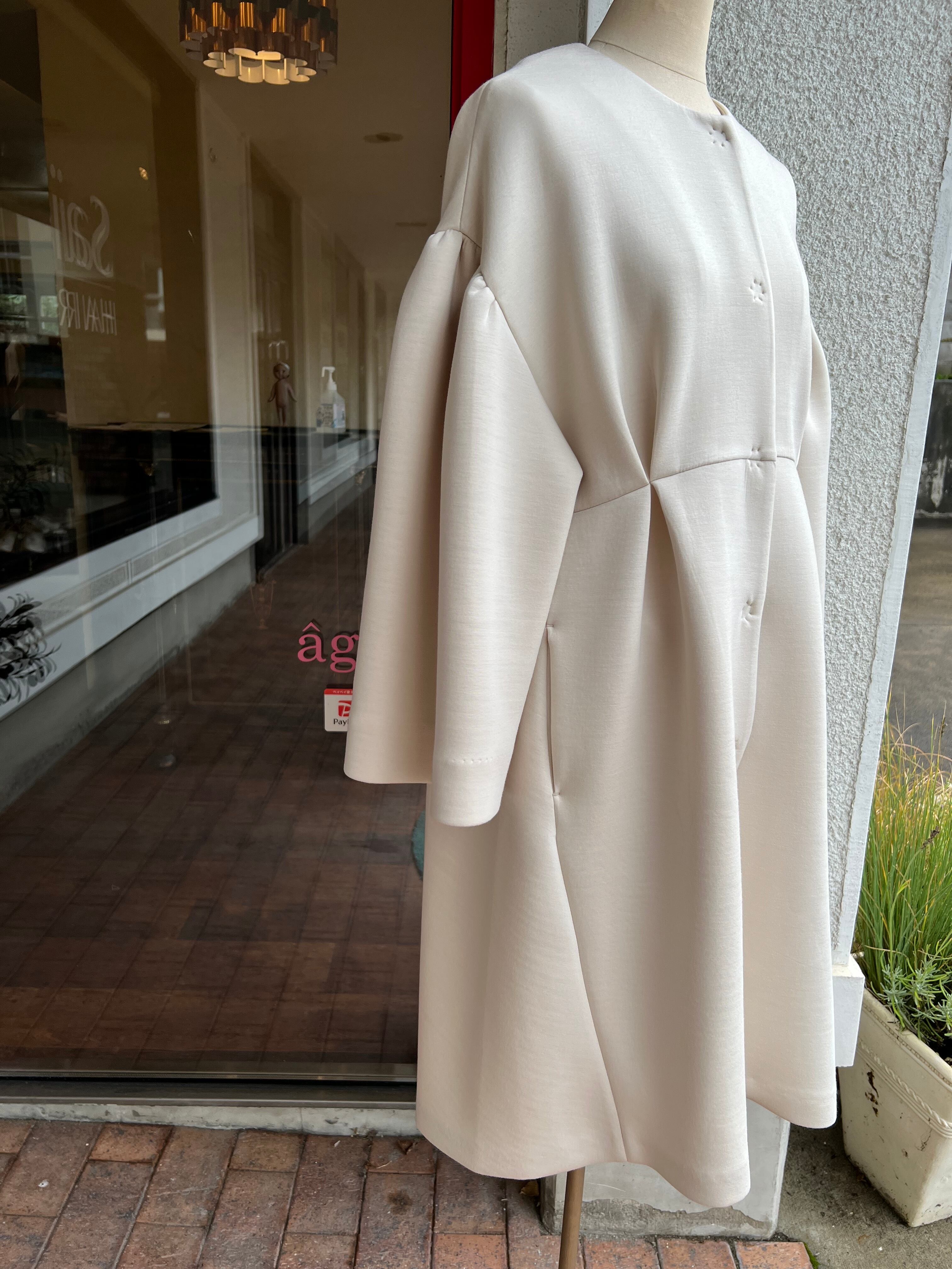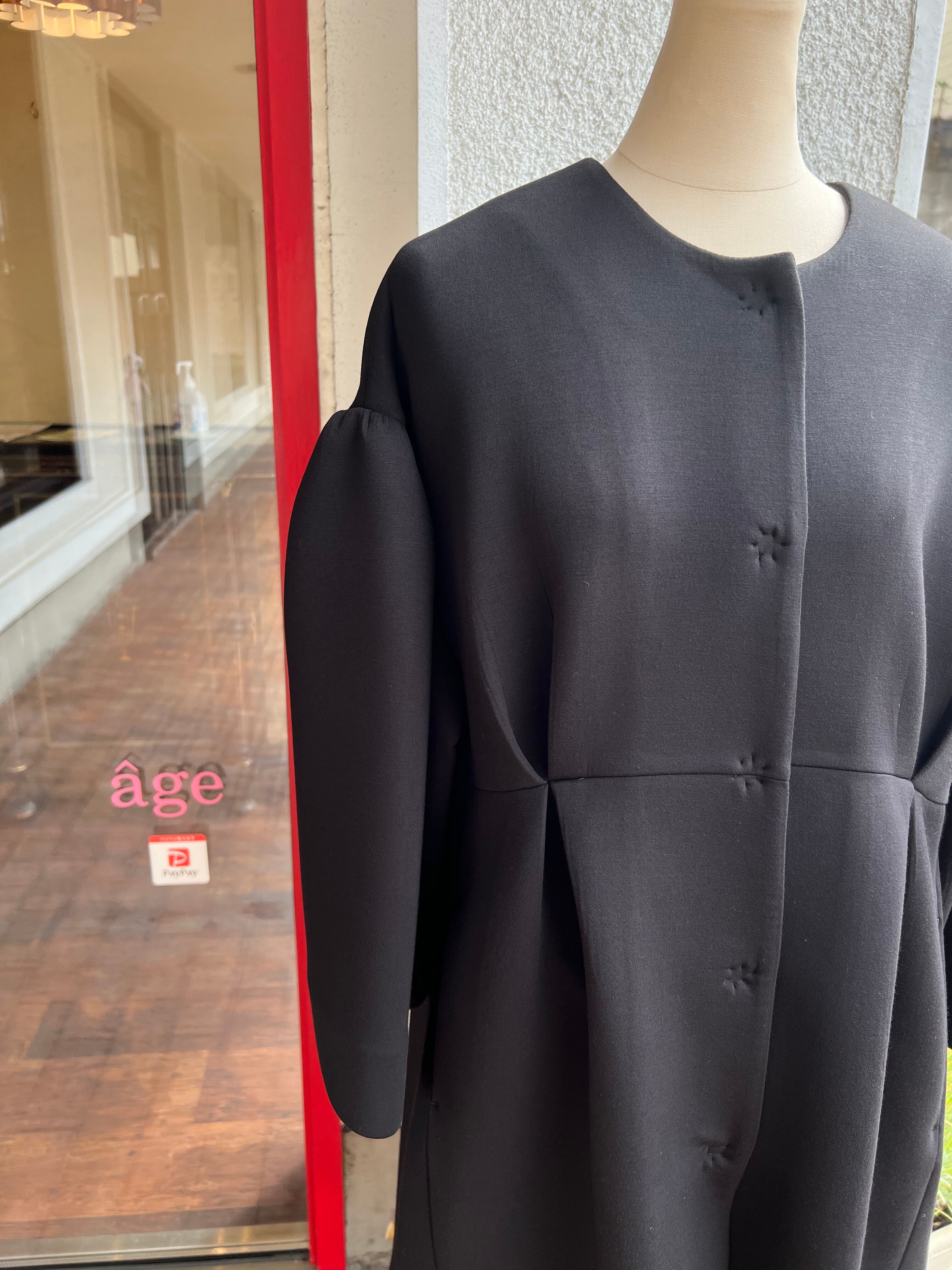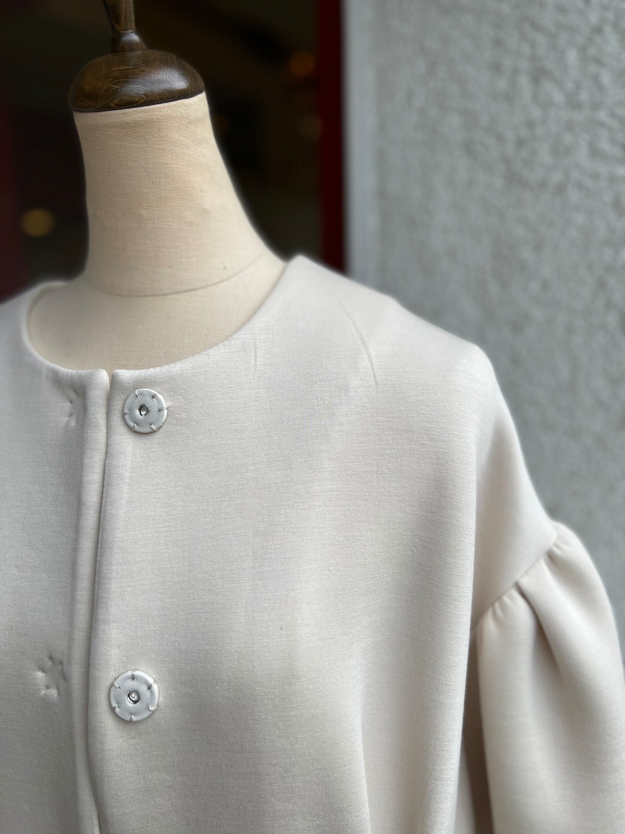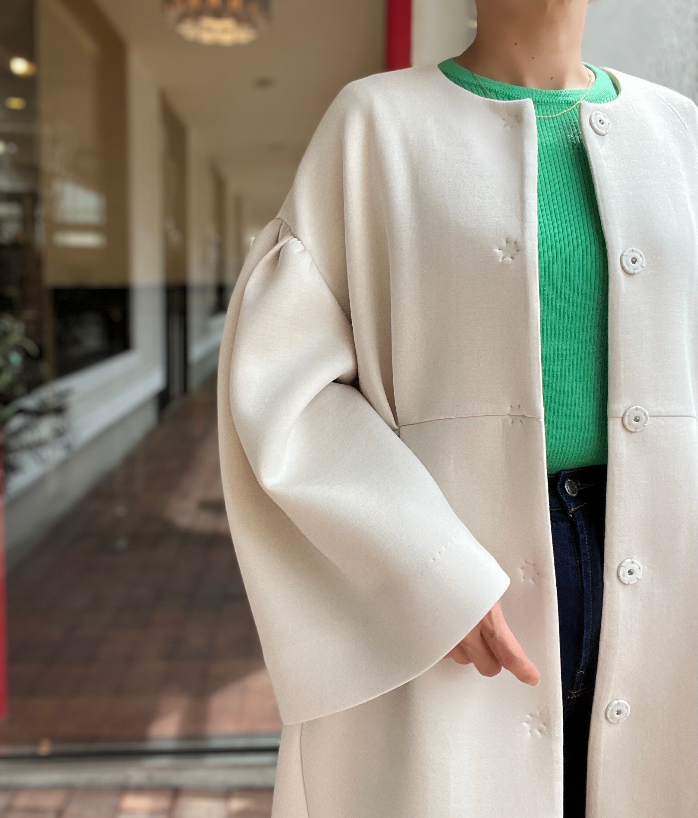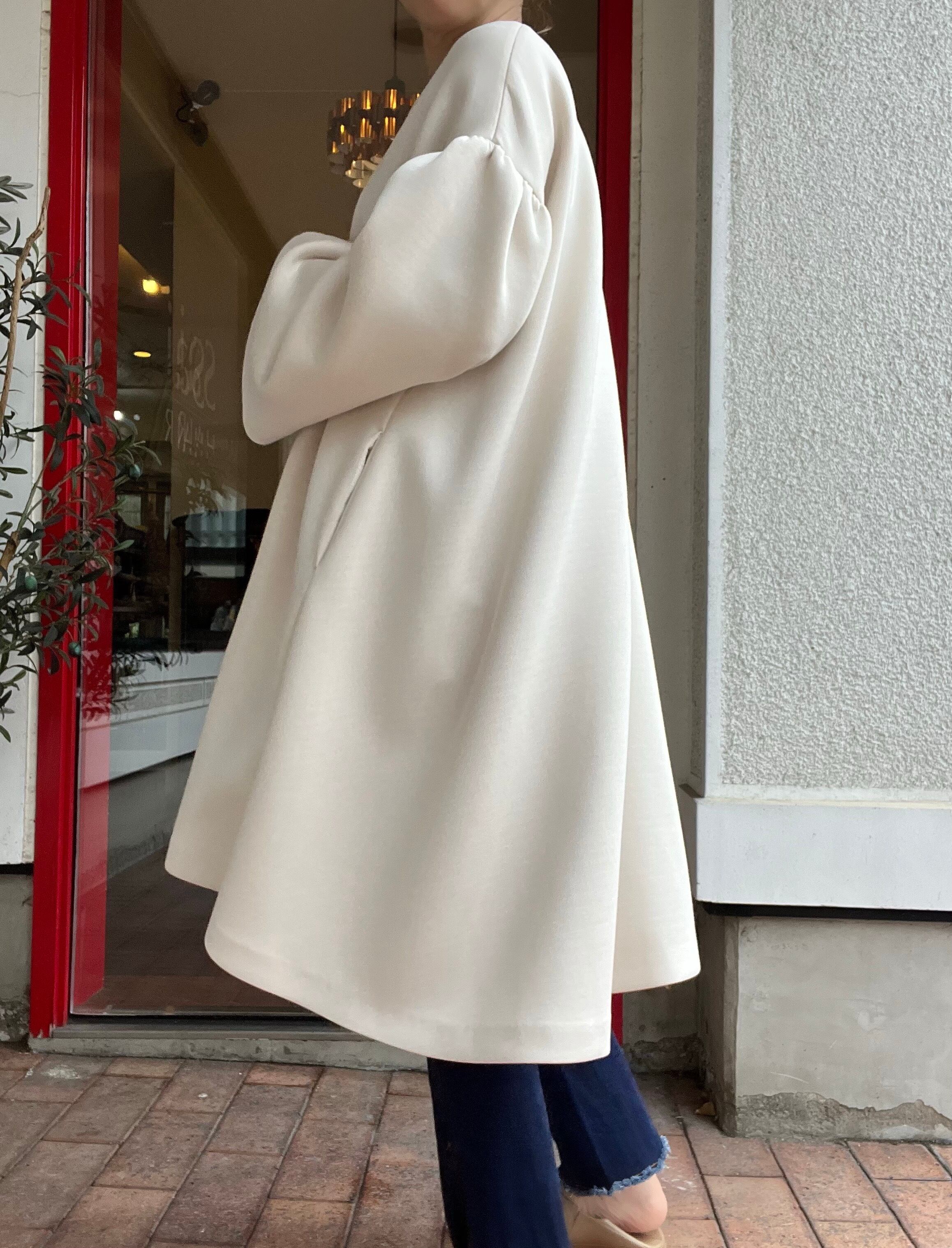 アームが広いボリュームスリーブは、インナーが少し厚手でももたつかず、羽織りやすいデザインです