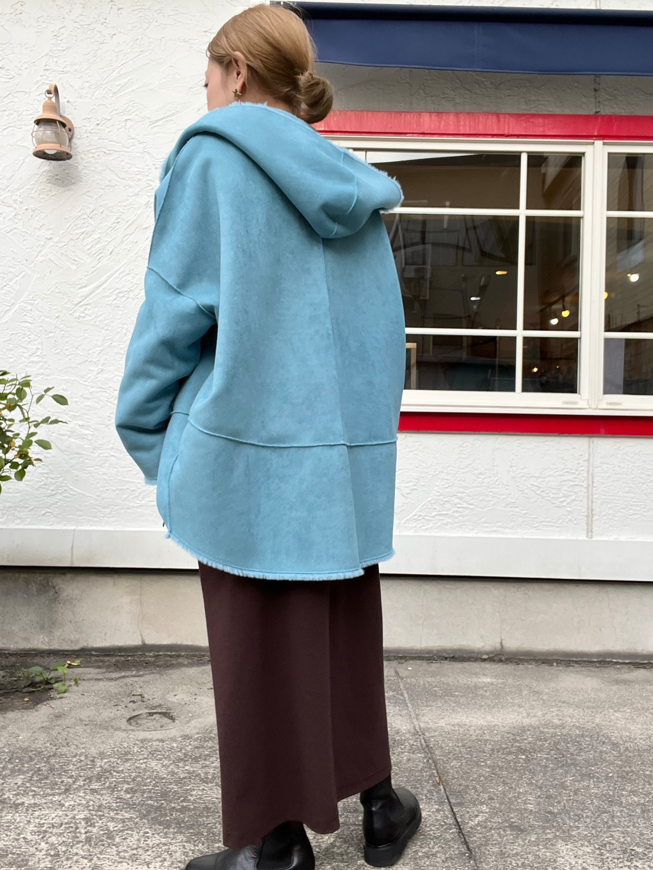 程よいゆとりがあり、ヒップが隠れる着丈はコーディネートしやすいコクーン型
