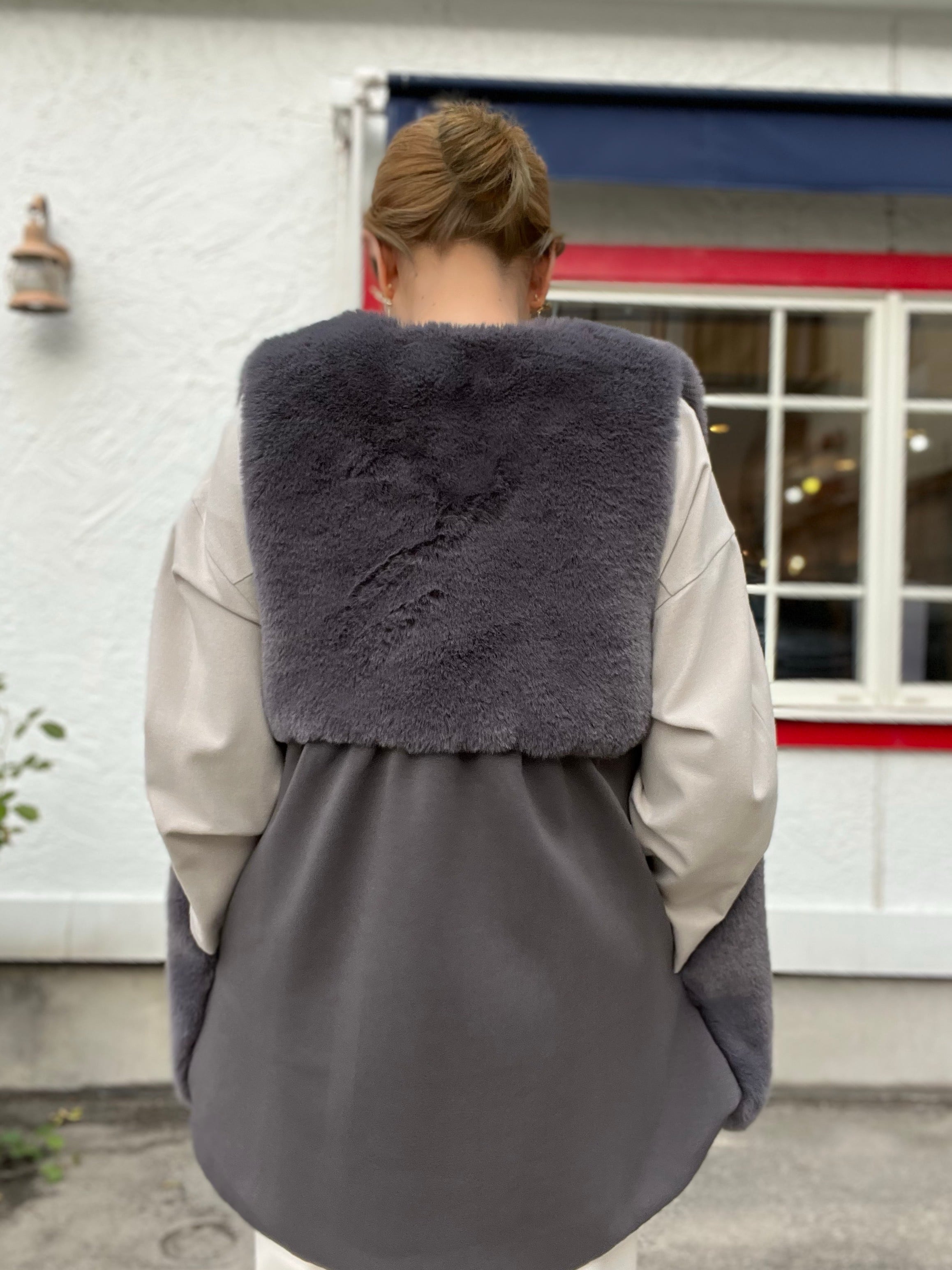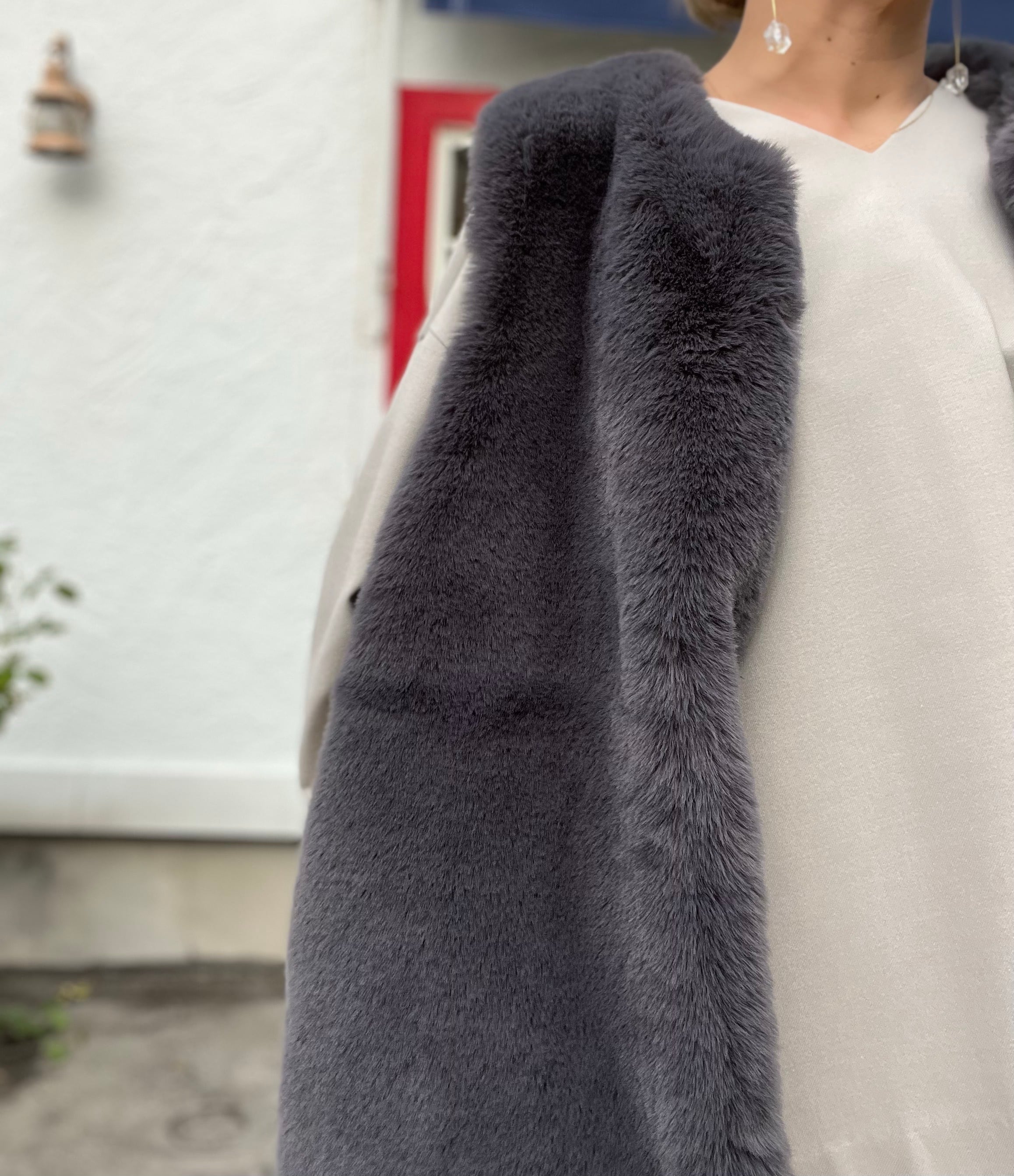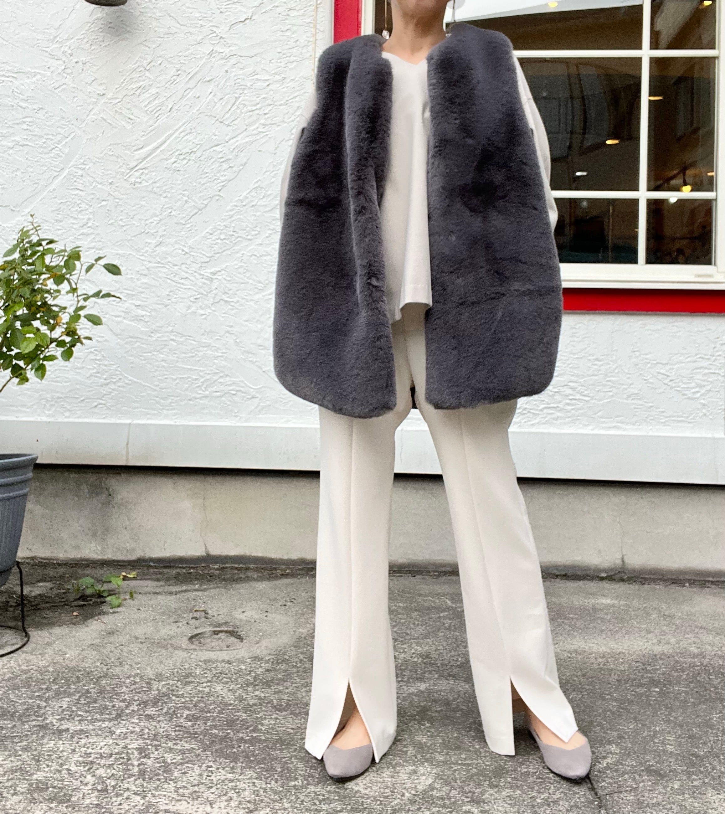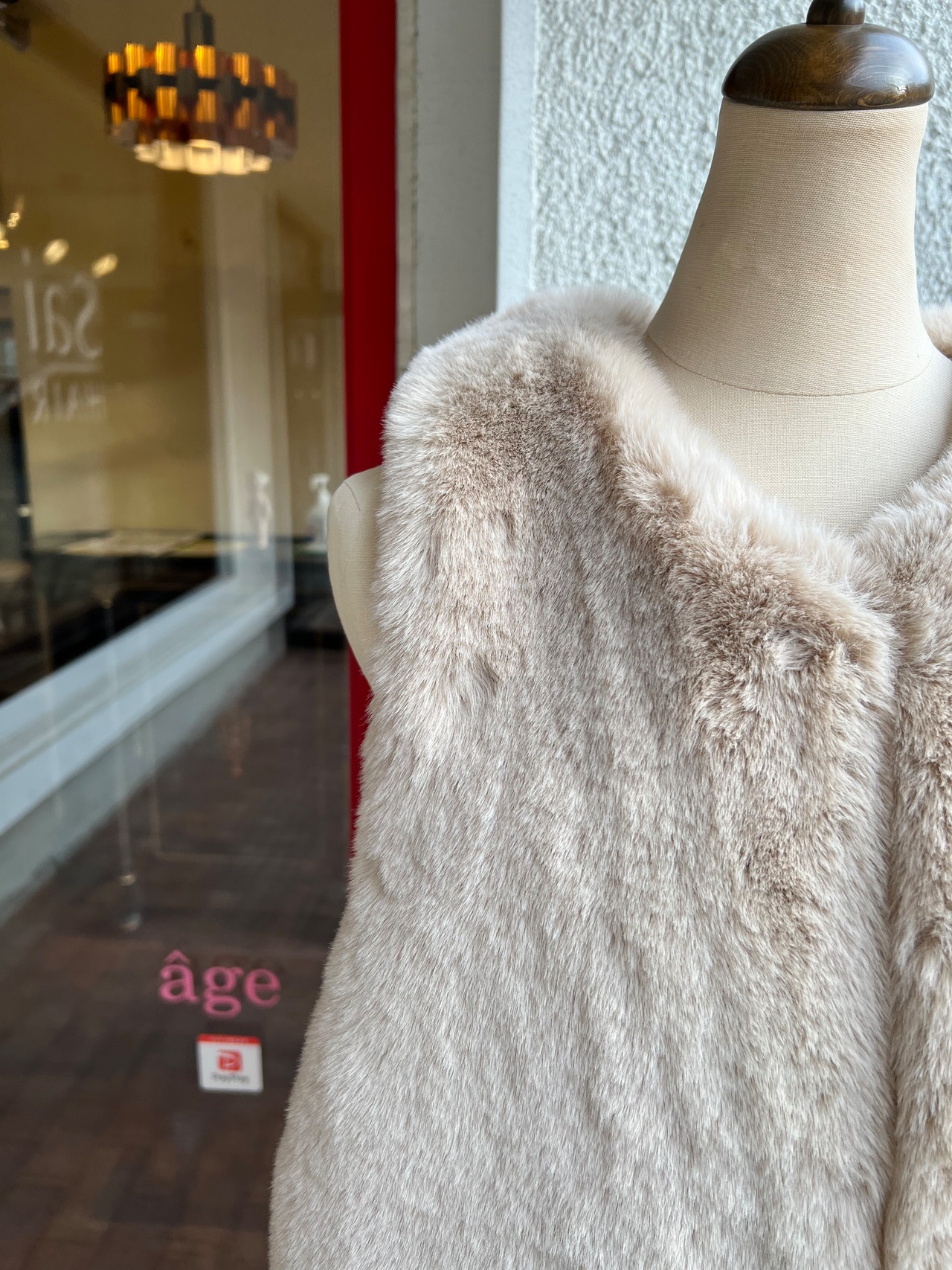 リアルファーのように艶があり、肌触り良く上品なエコファーベスト