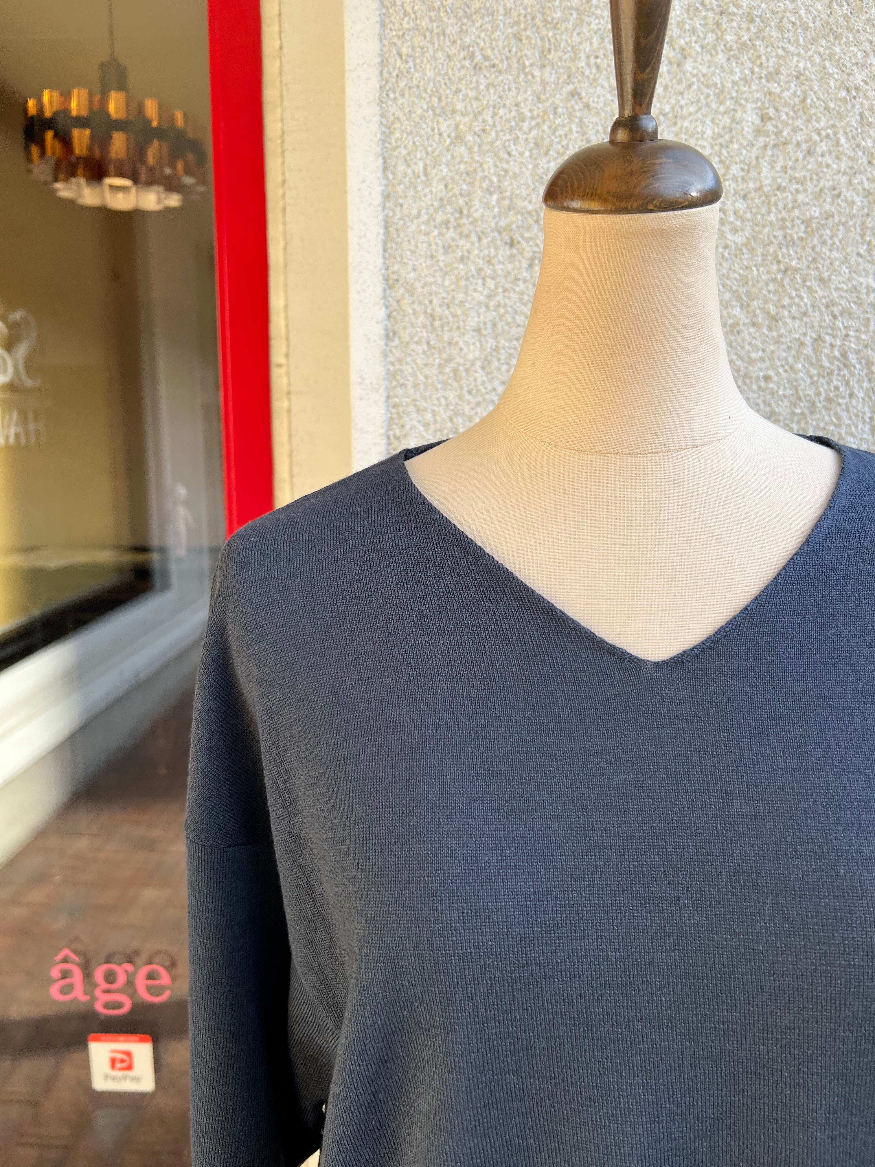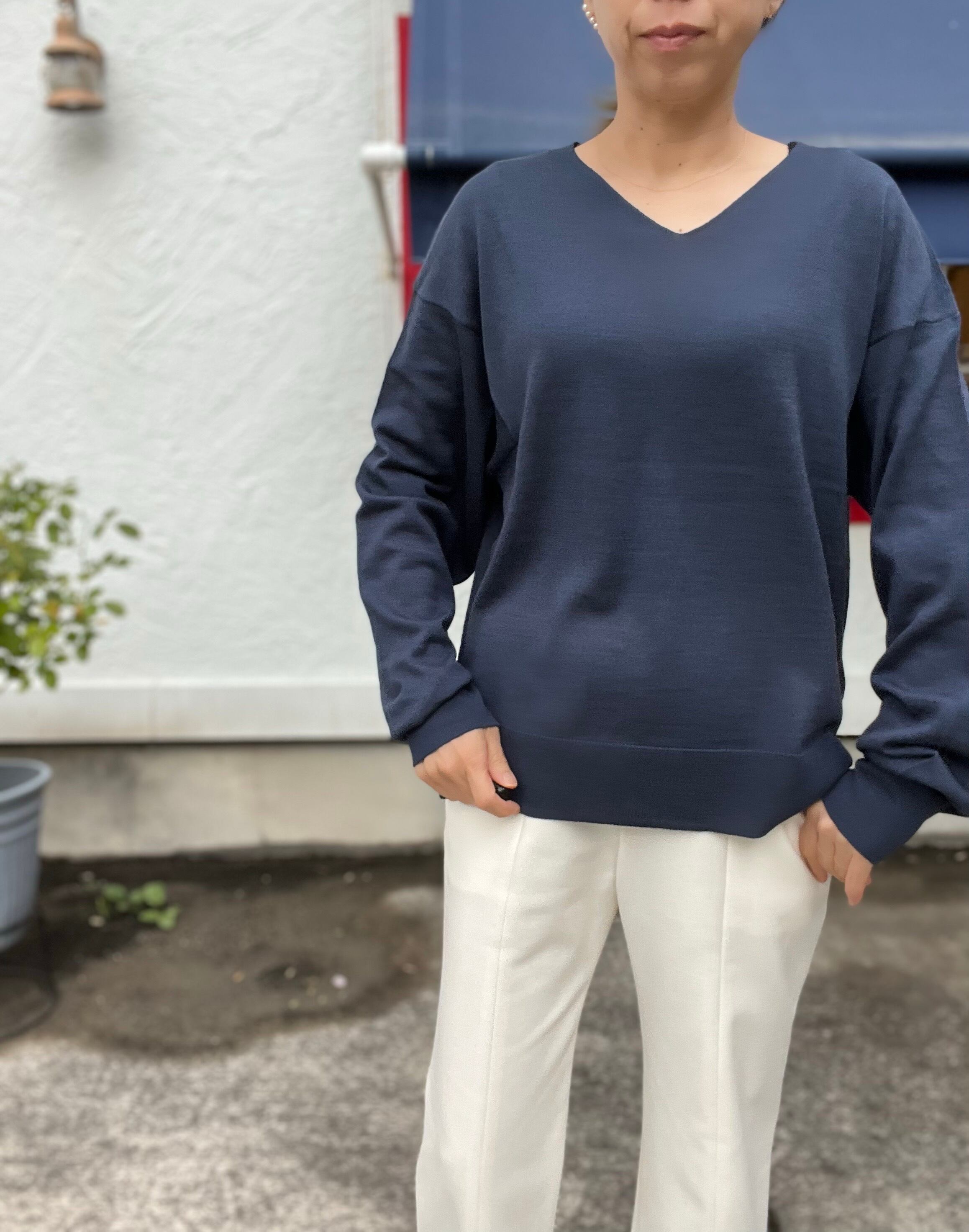 エクオ 梳毛セミドルマンVネックプルオーバー