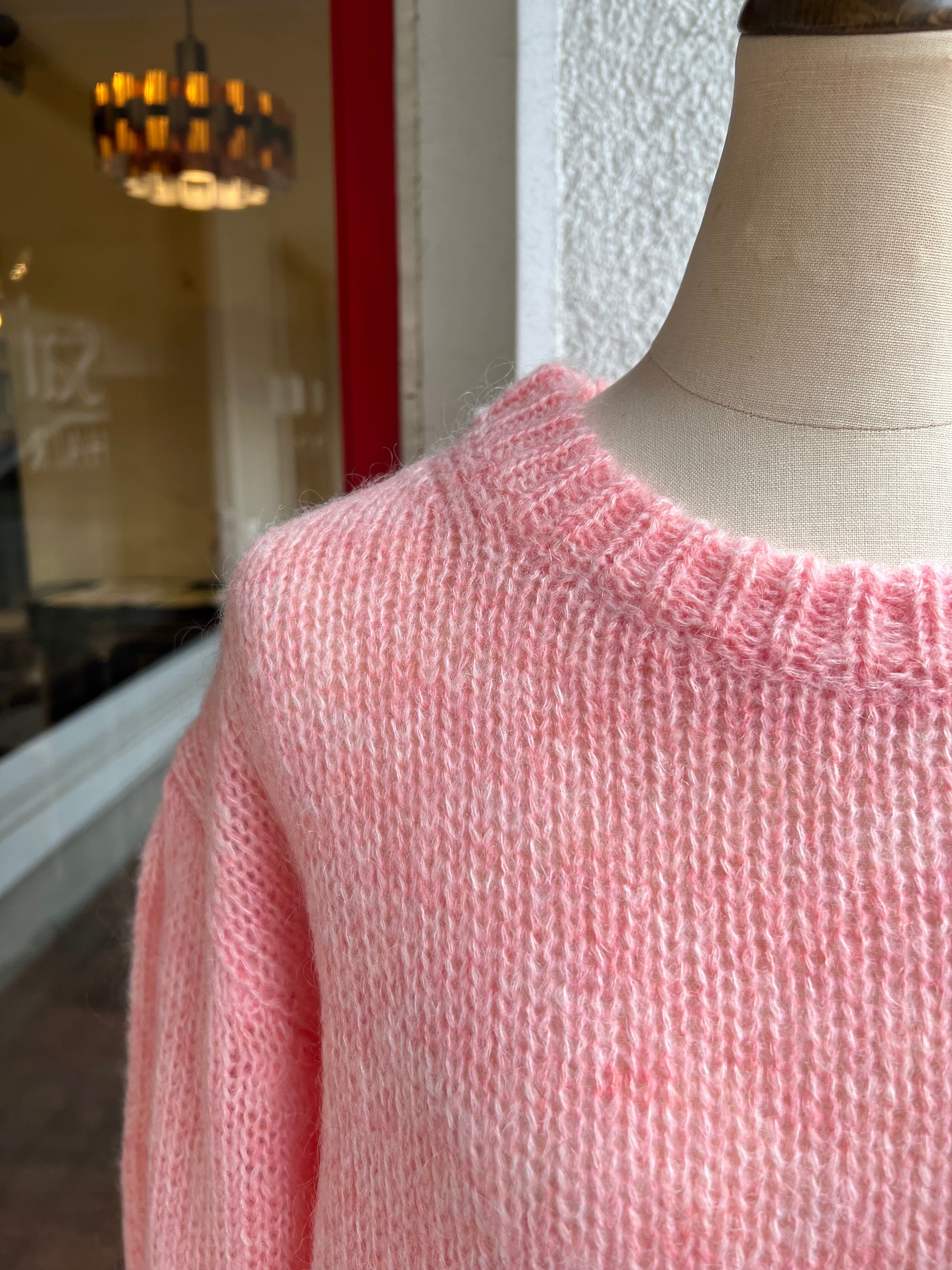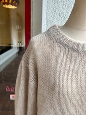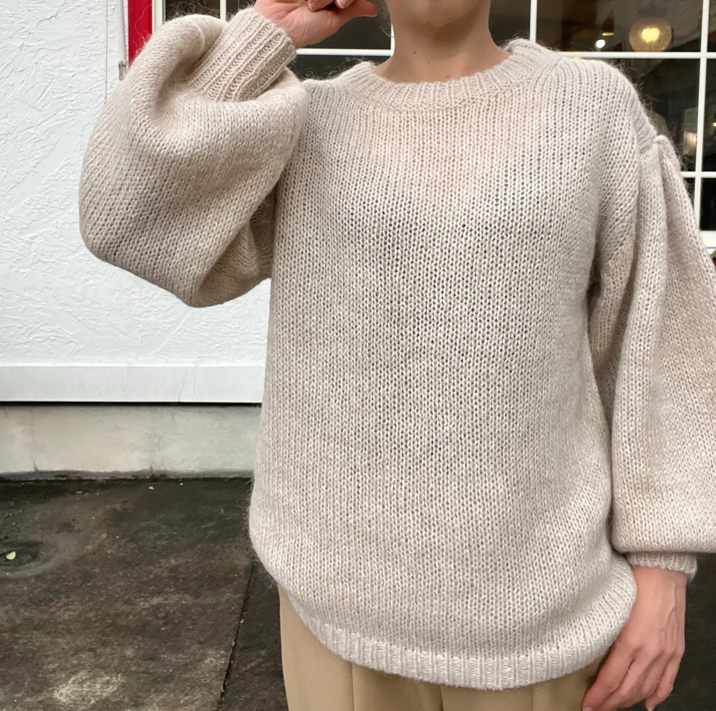 モヘヤ混の糸で緩めに編まれたプルオーバーニット