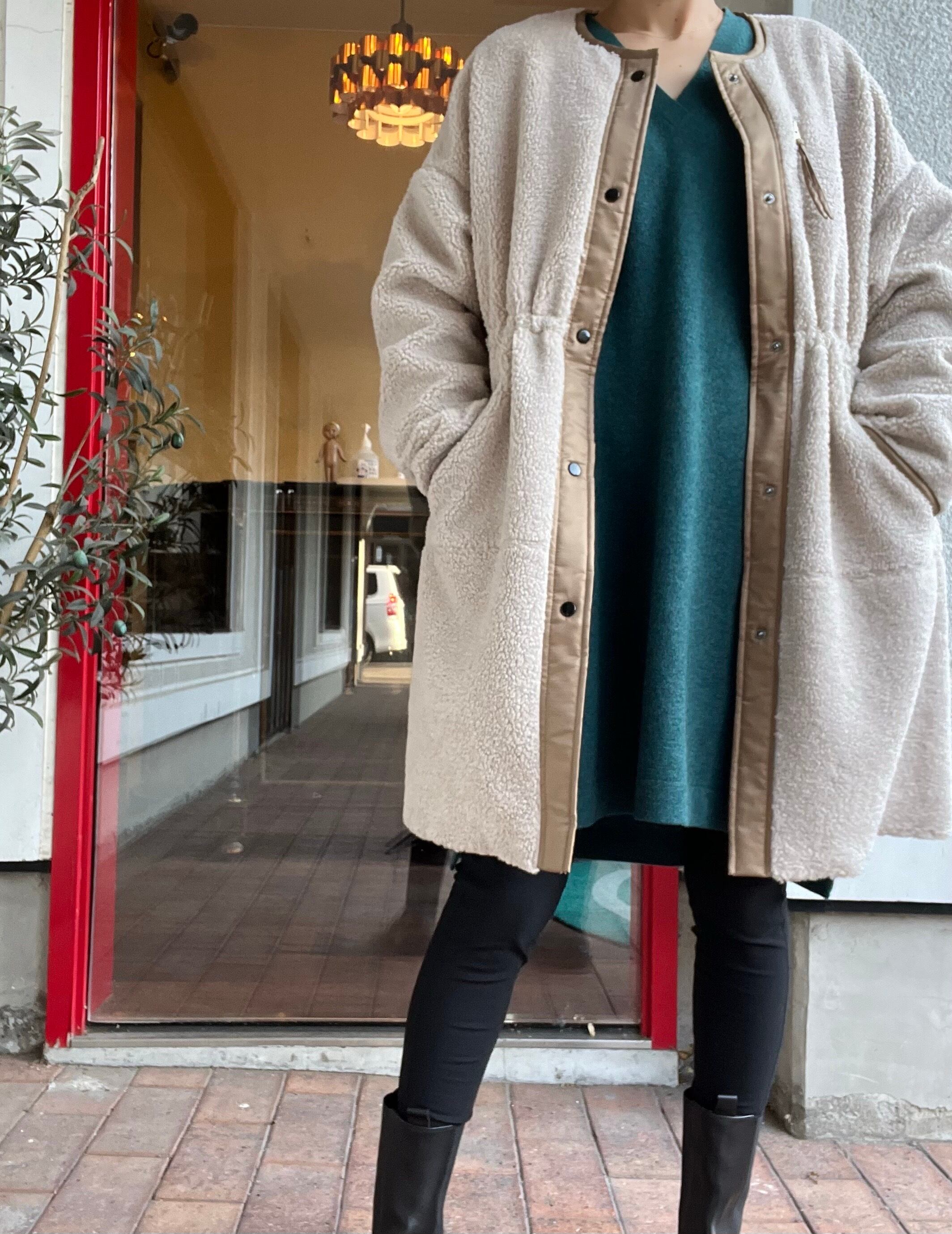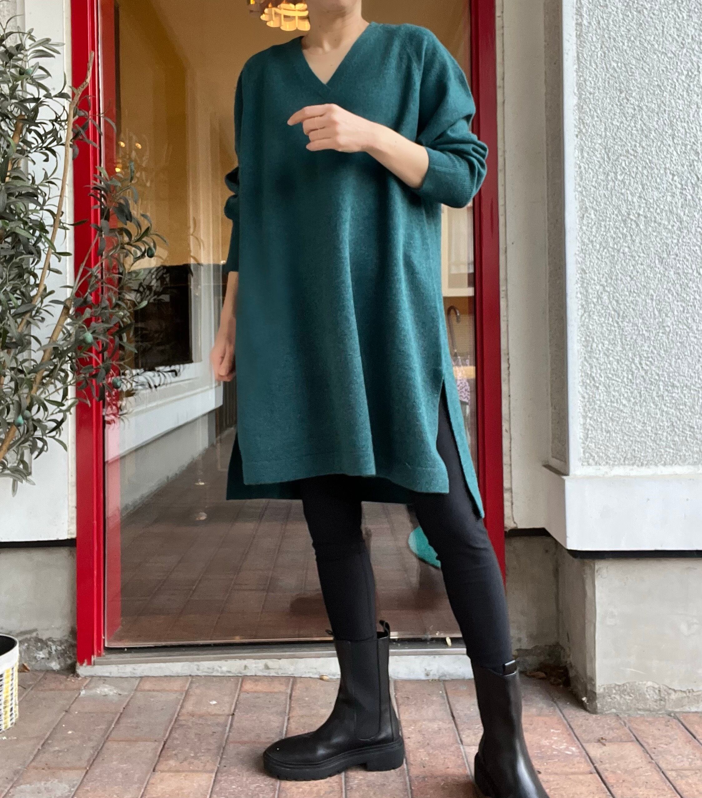 目が詰まったウール100%素材で、ダウンのインに着ても嵩張らない厚さです