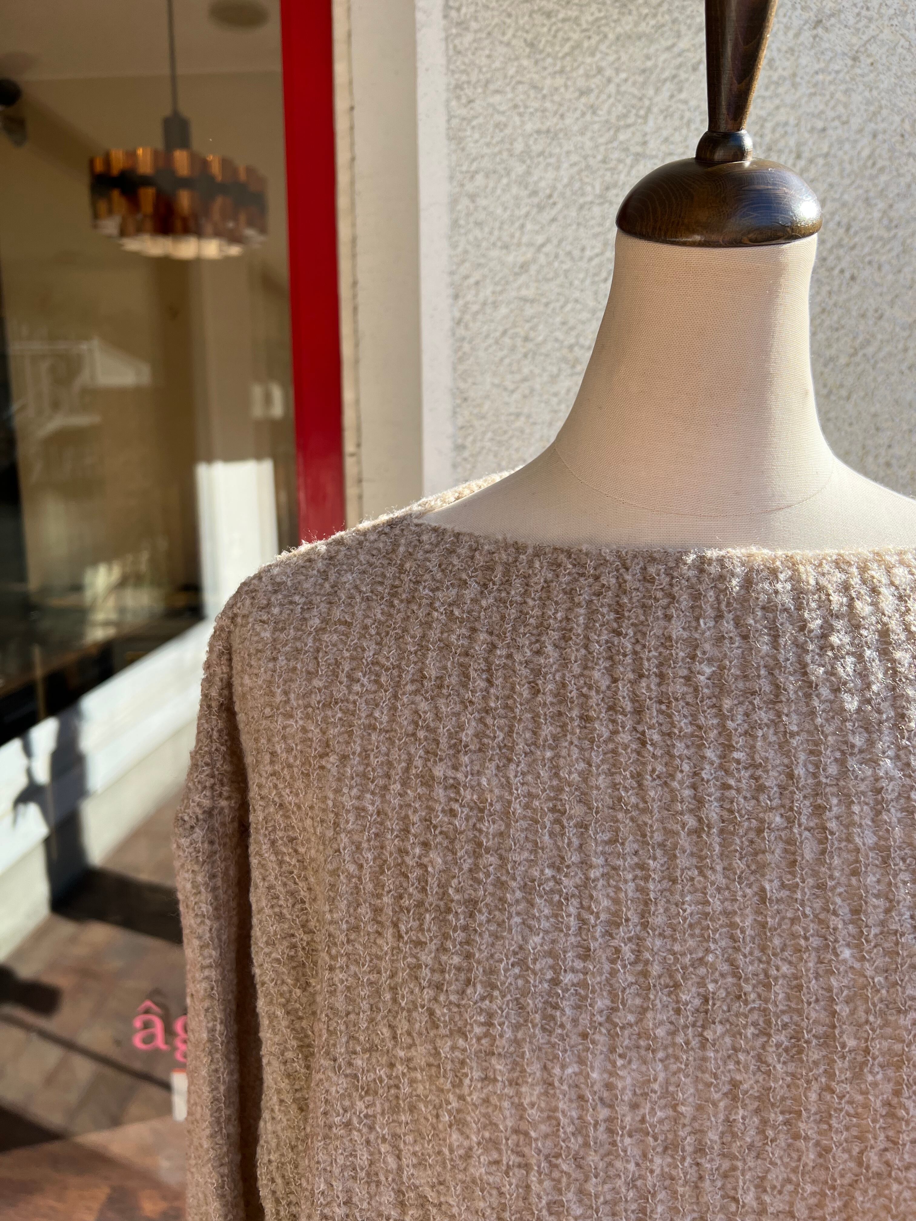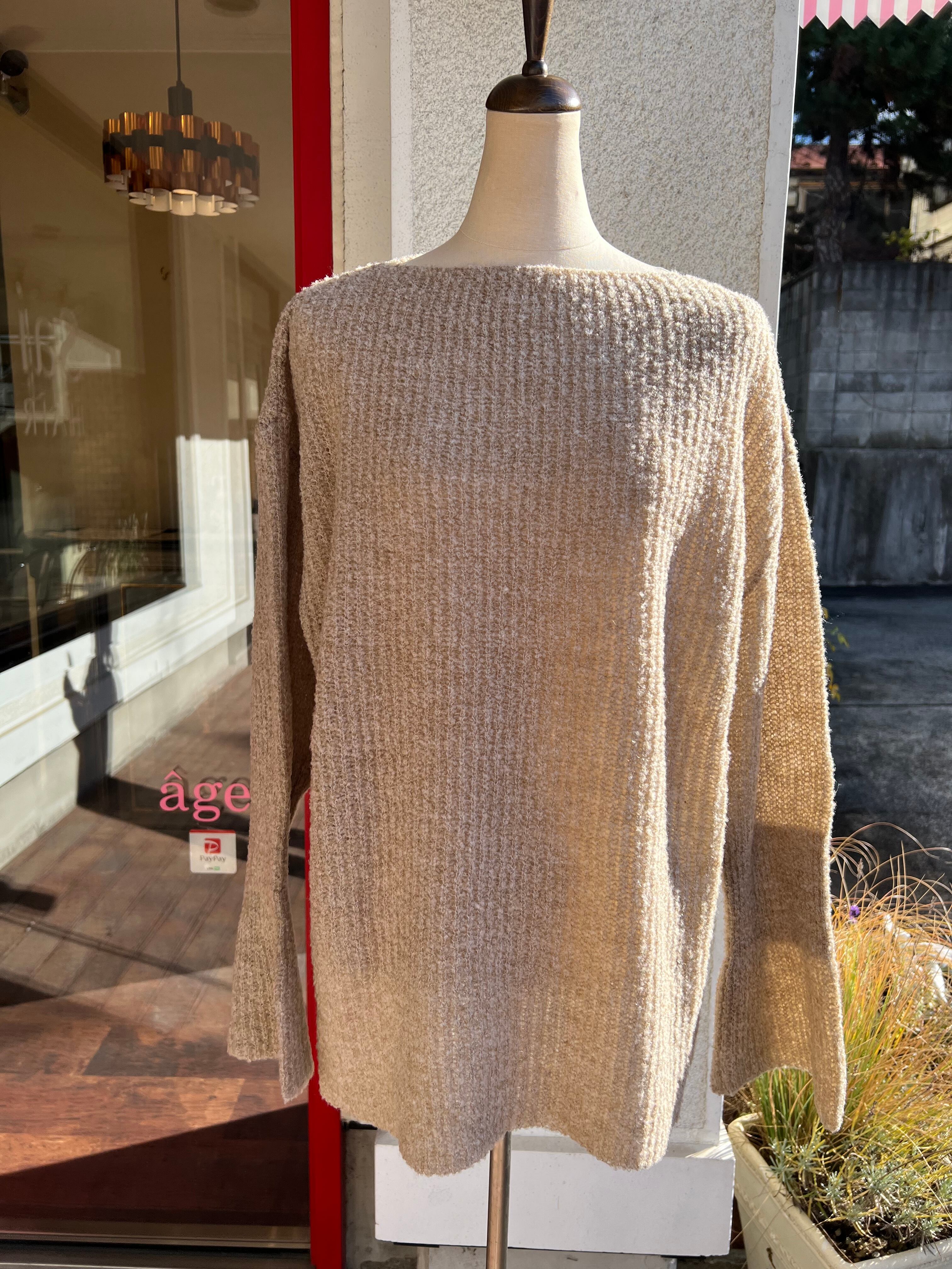 ベーシックなボートネックにベルスリーブのデザインがポイントです