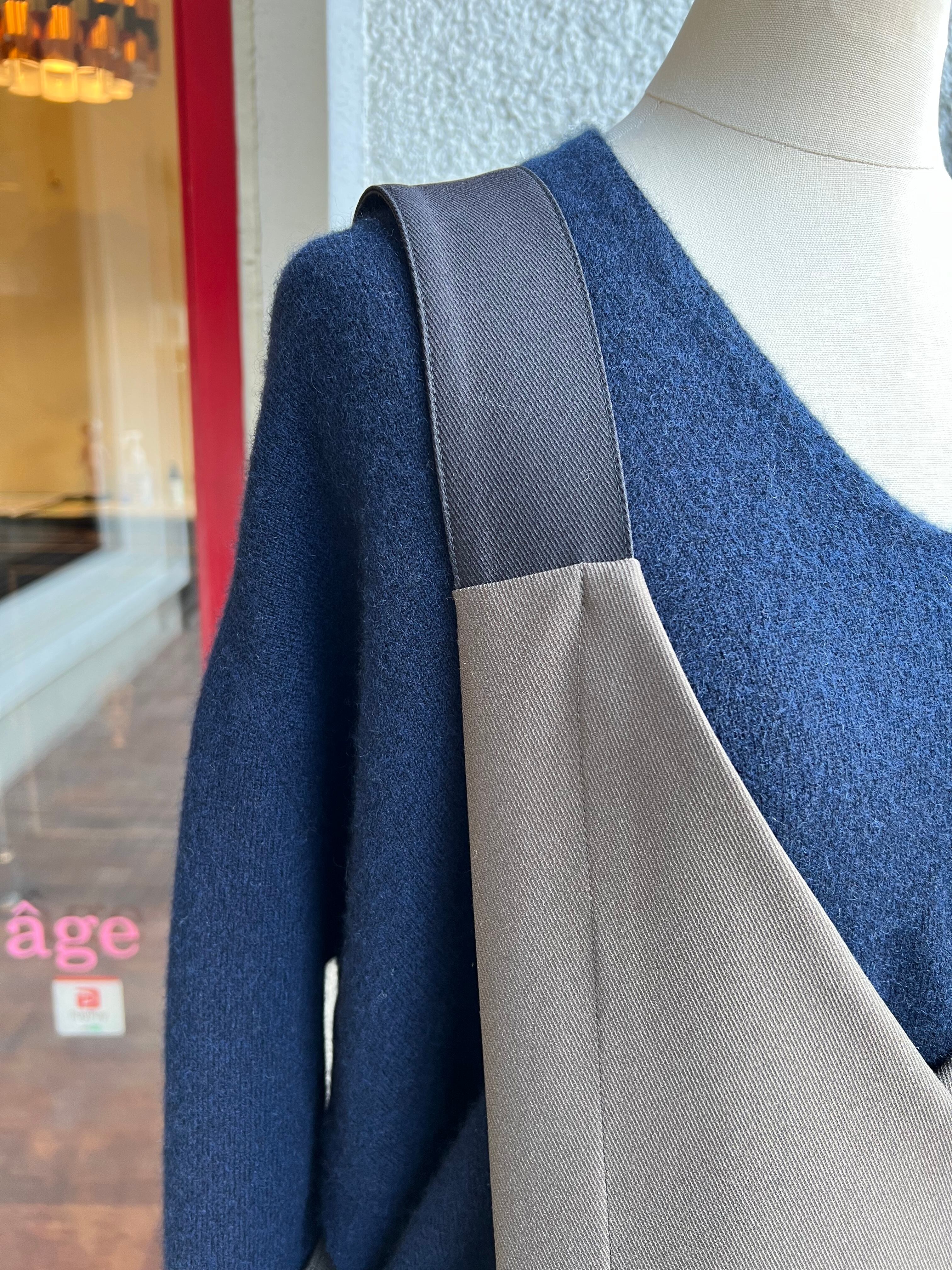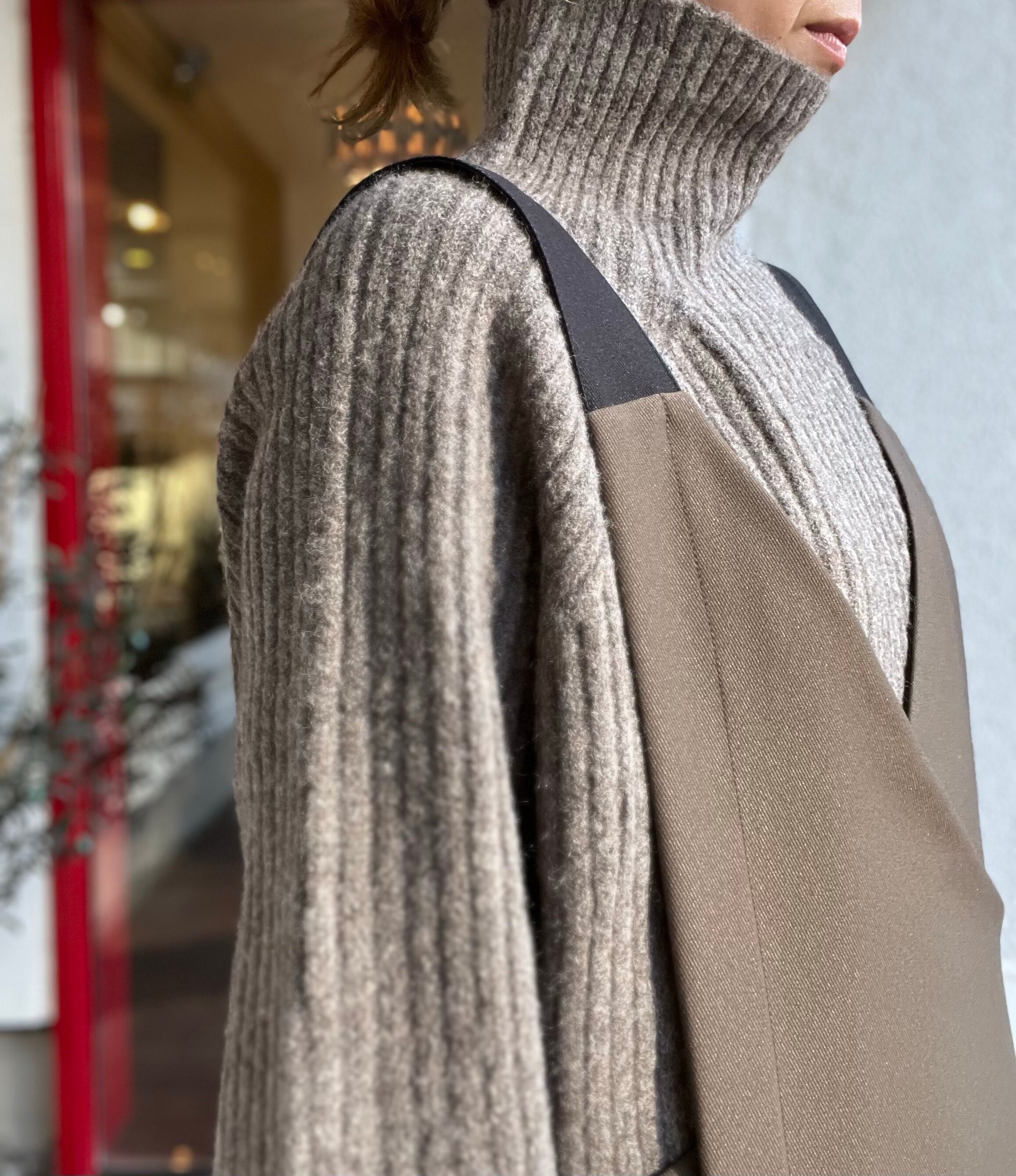 裏地も付き多少厚みのあるトップスも合わせて頂けます