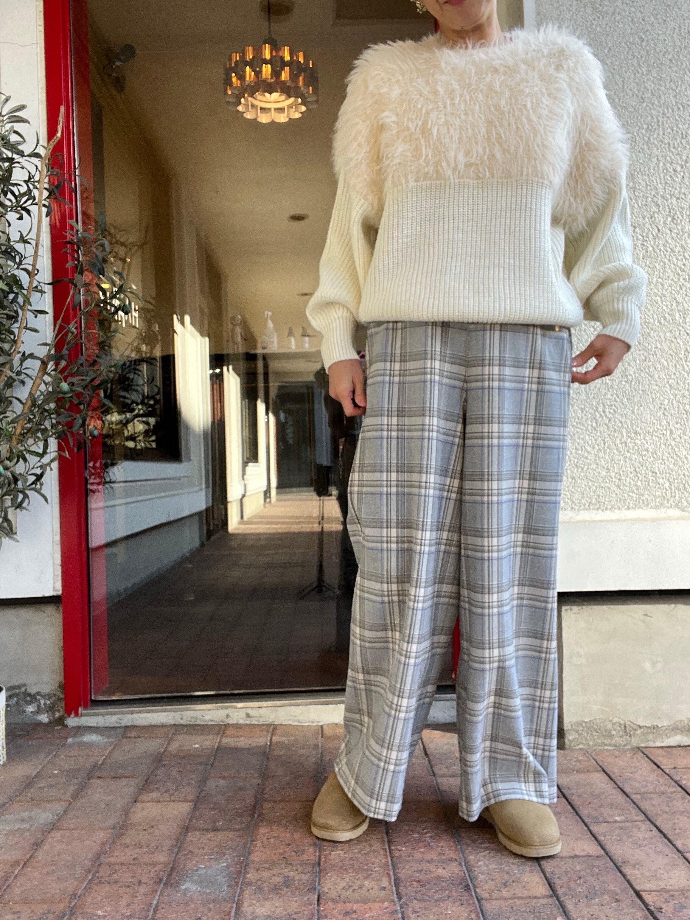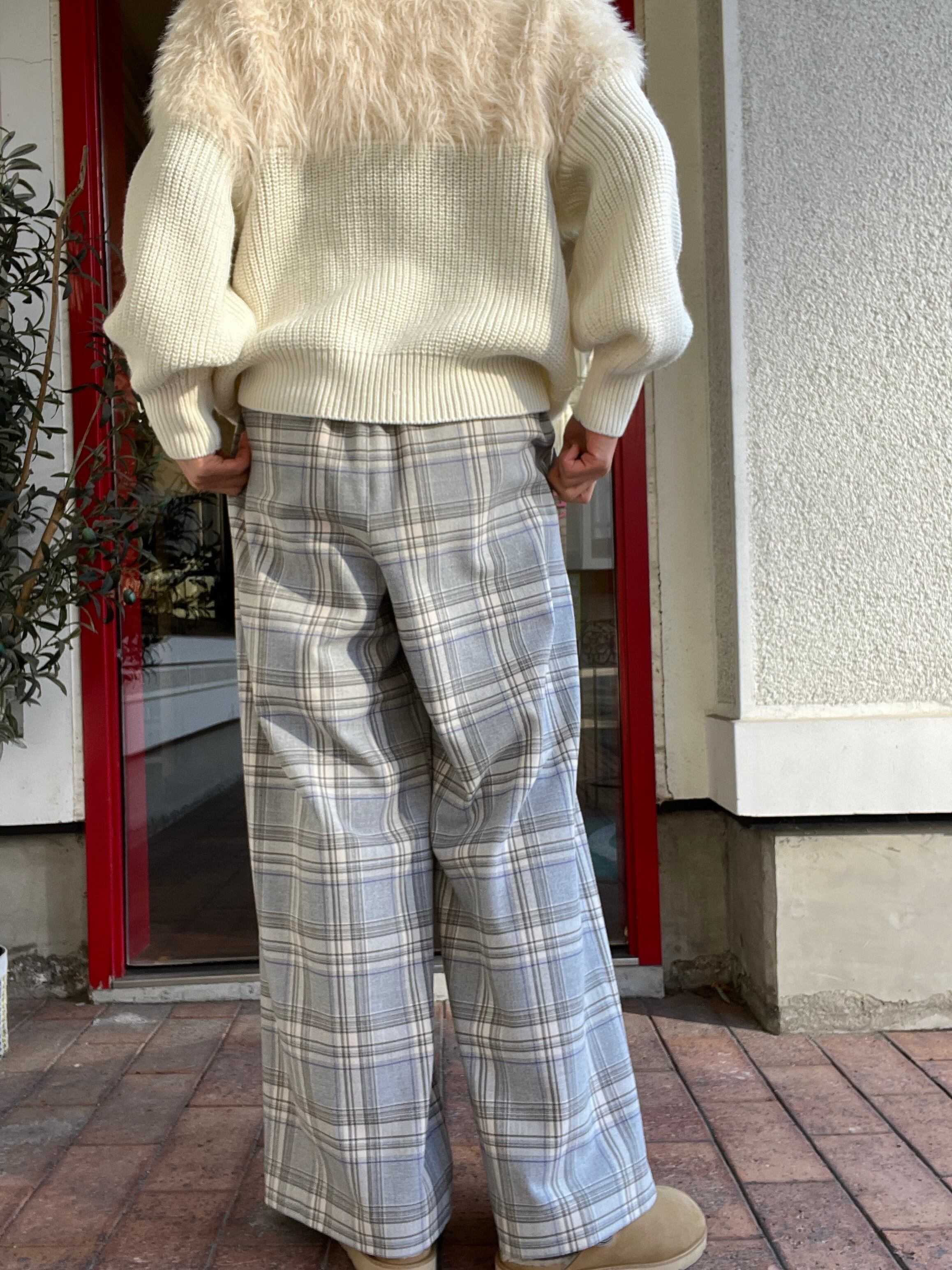 ディニテコリエ 両面起毛チェックワイドパンツ