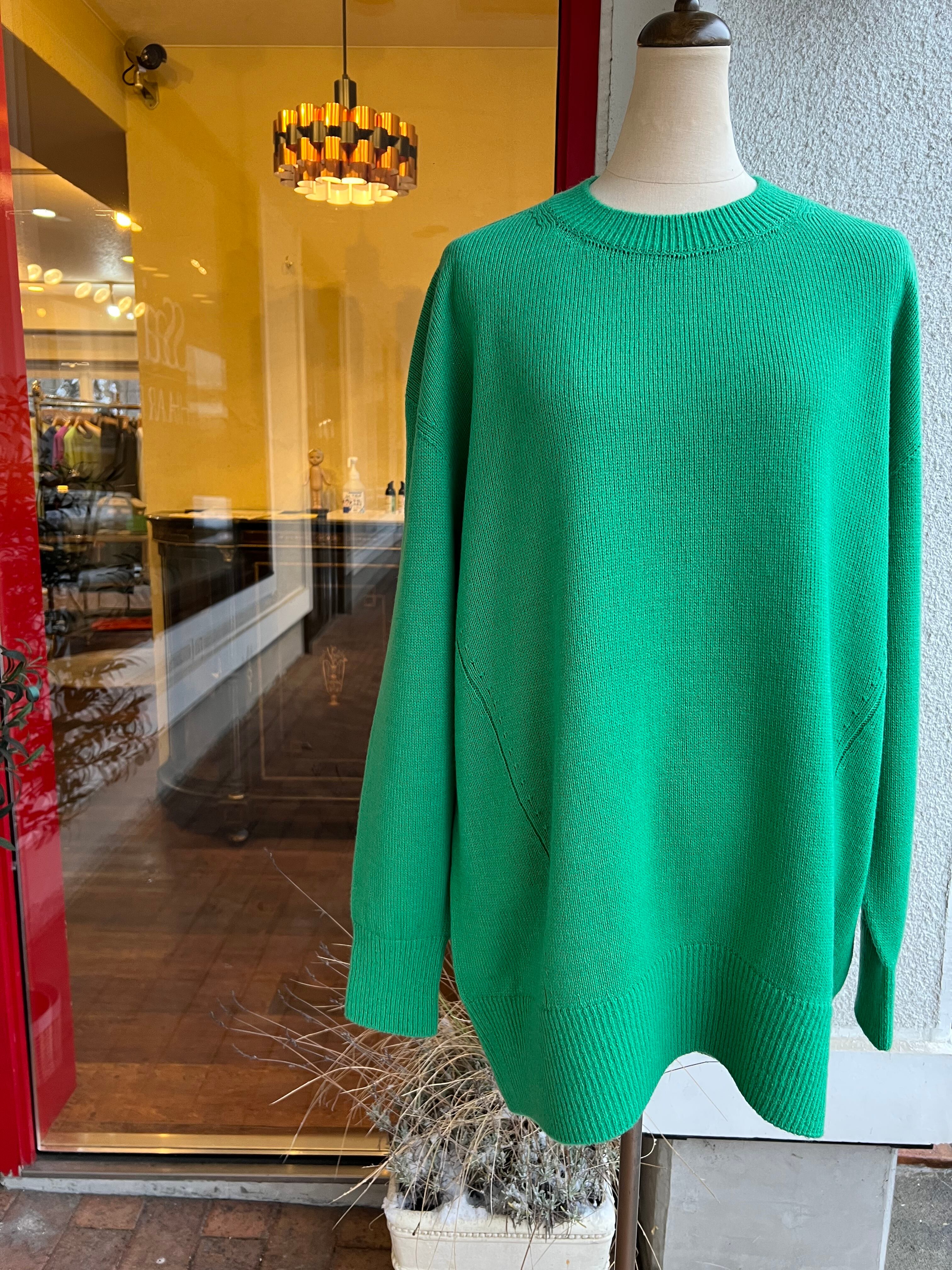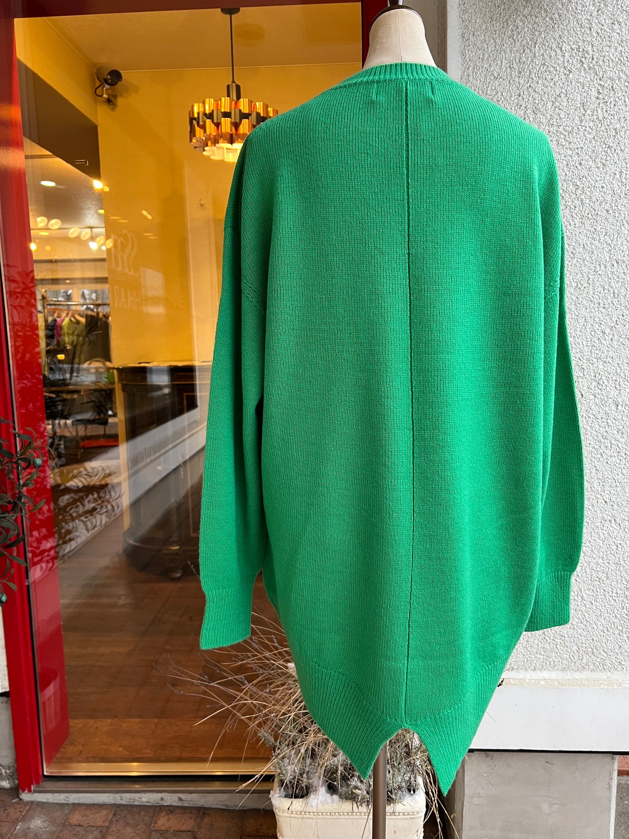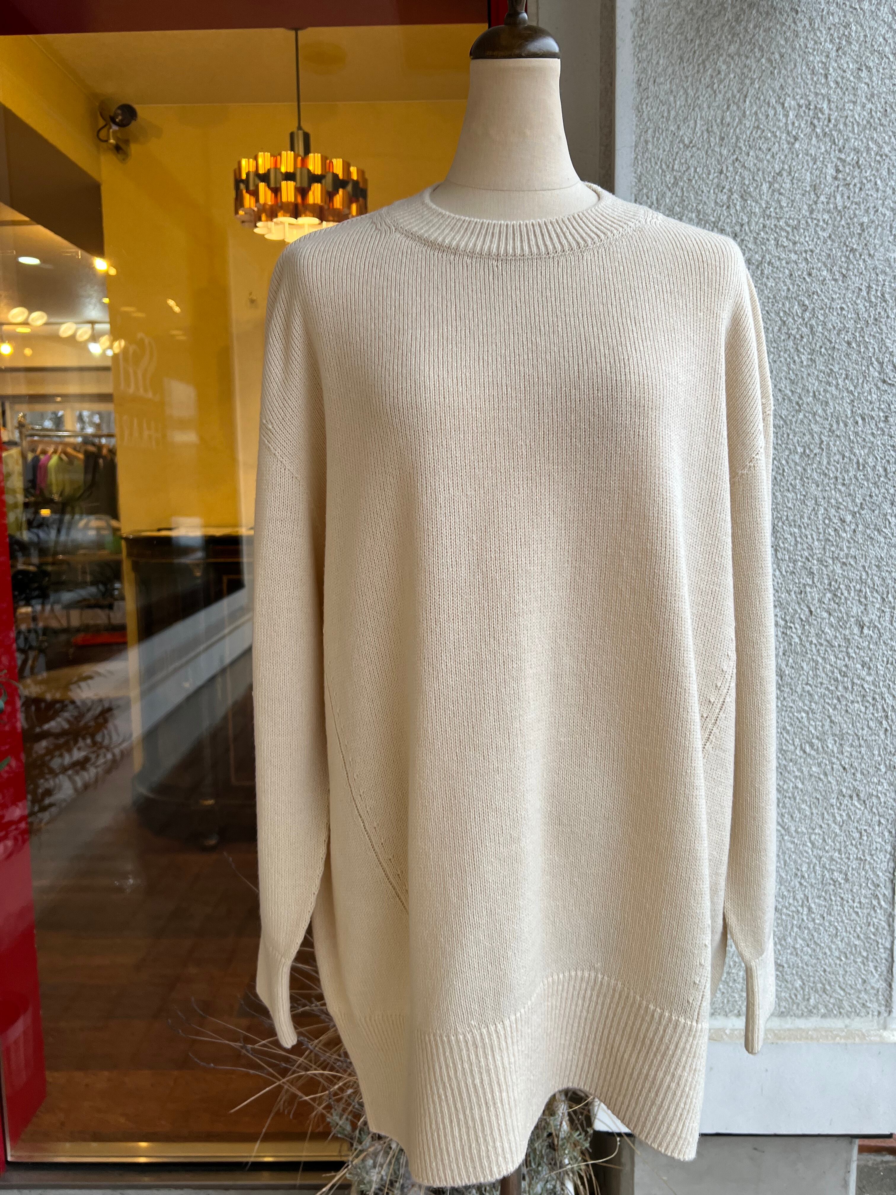 バックスリットの入ったチュニック丈のニットは