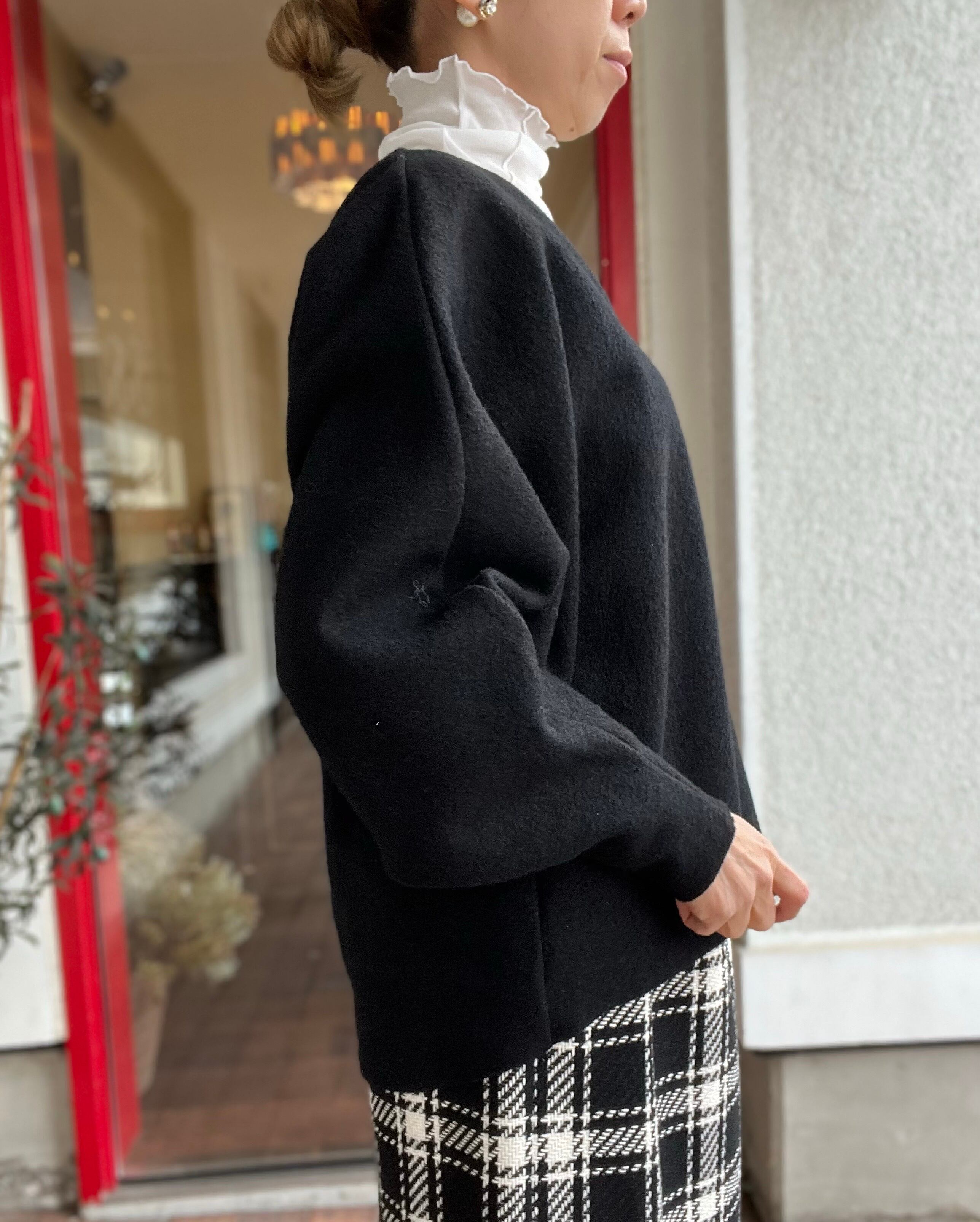 ドルマンスリーブのゆったりとした着心地でありながら、袖口はタイトに仕上げているので、メリハリのある女性らしいシルエットになります