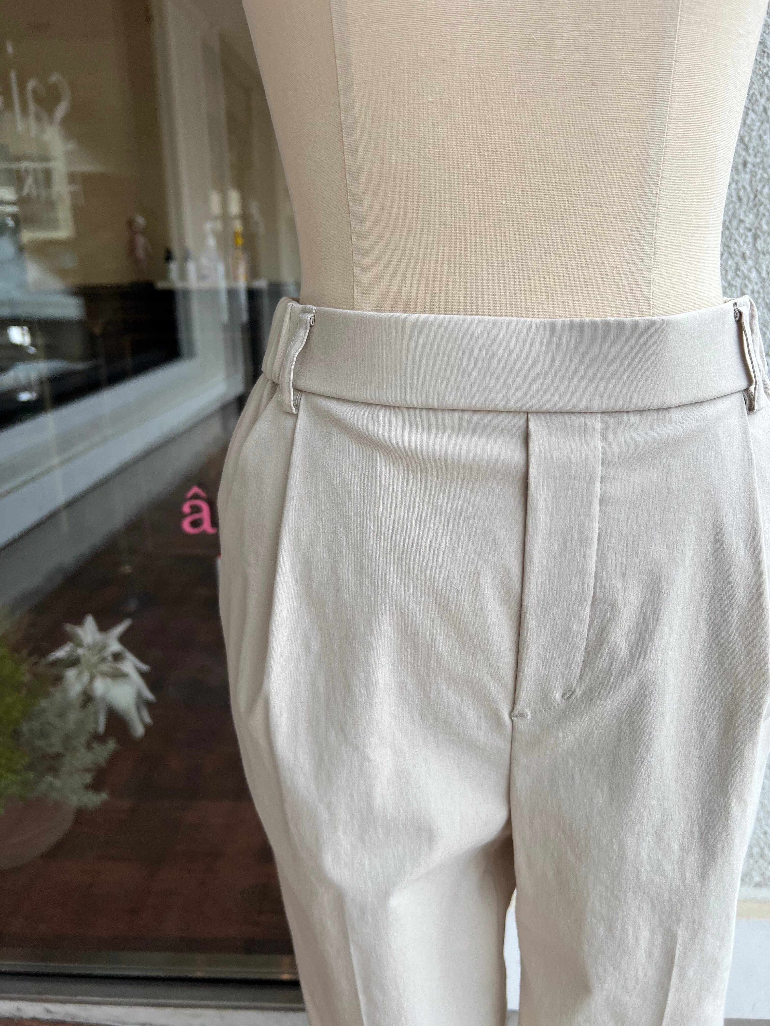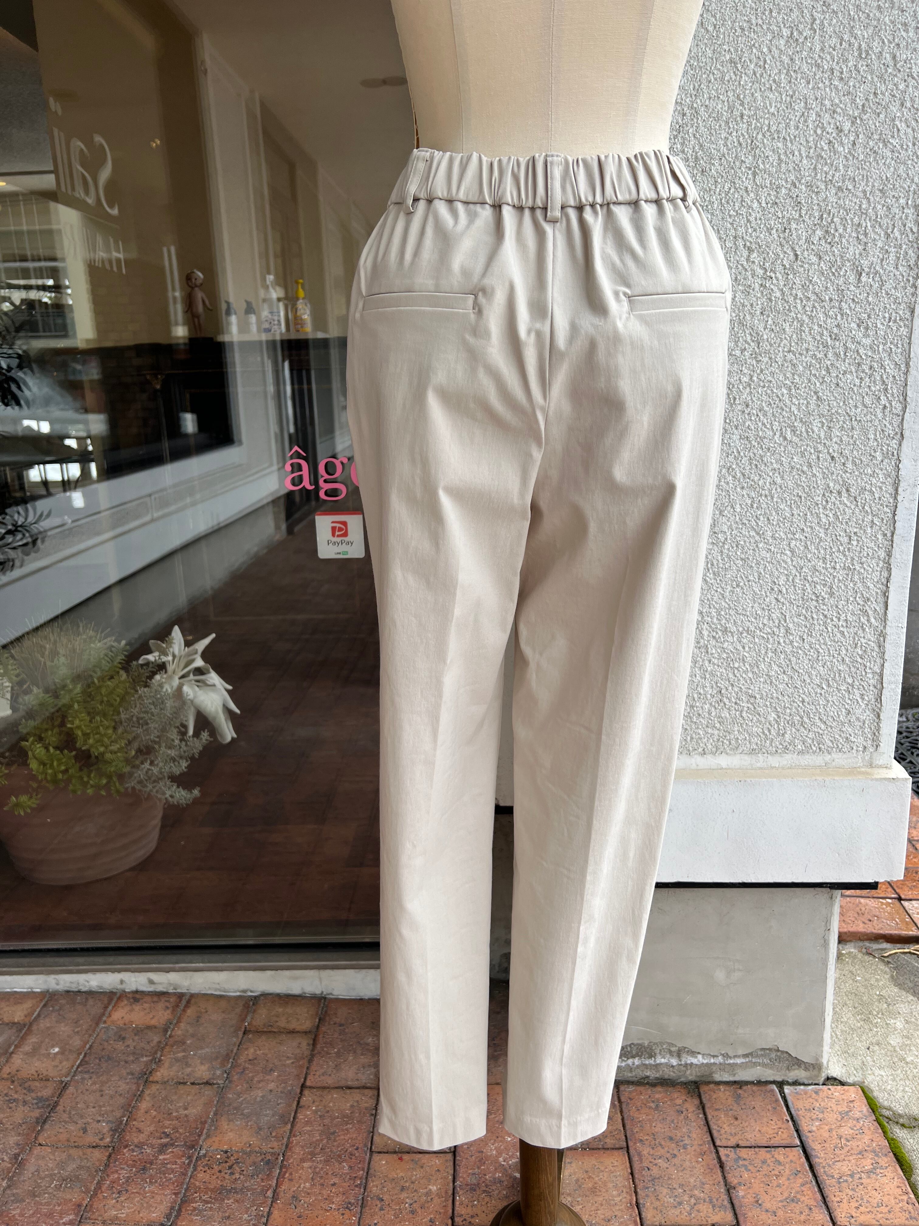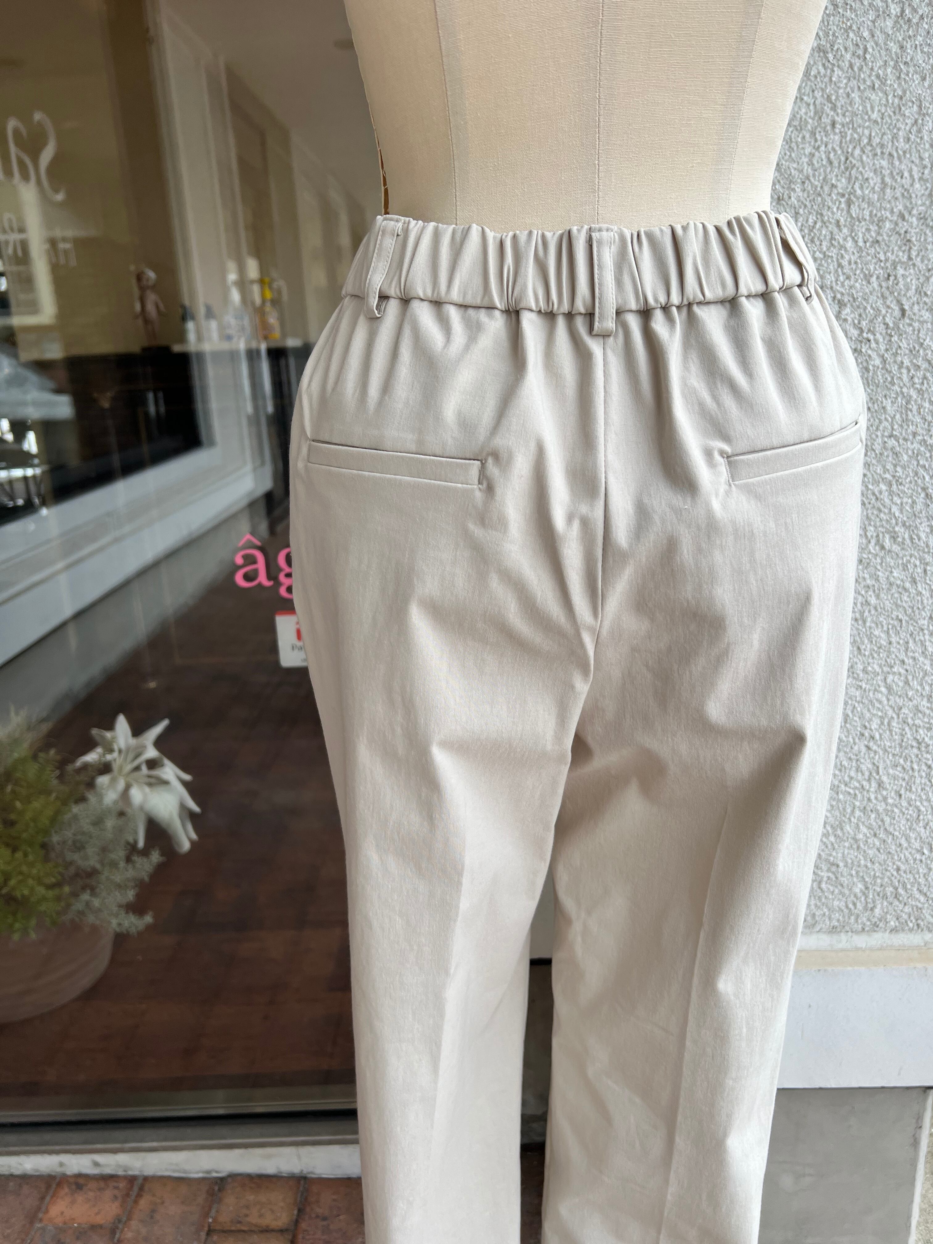 きちんと感がありながらウエストはゴム仕様と、リラックス感も兼ね備えたパンツです