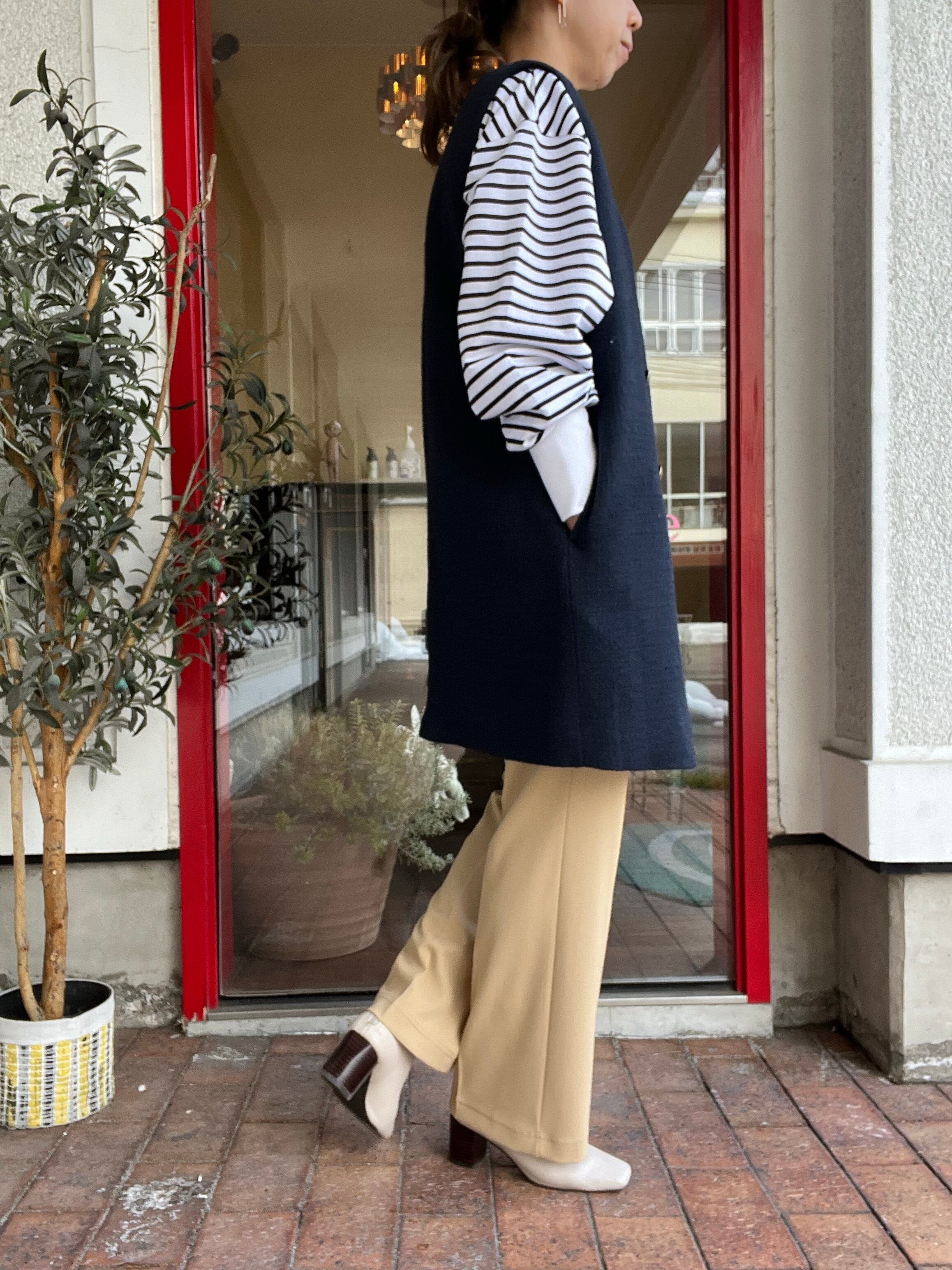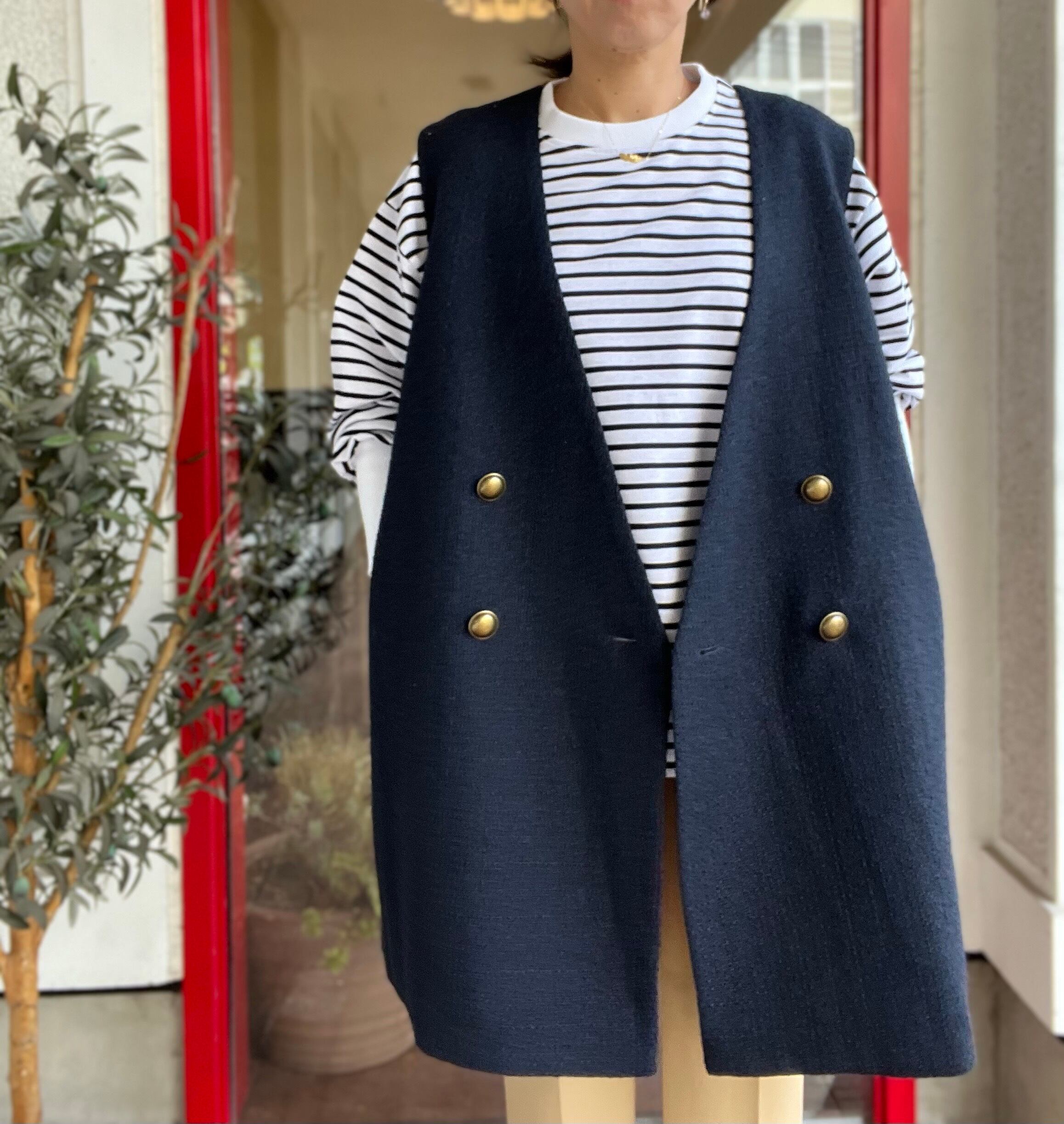ブラウスやボリュームスリーブのカットソーを合わせた着こなしを楽しめる上品な印象のジレ