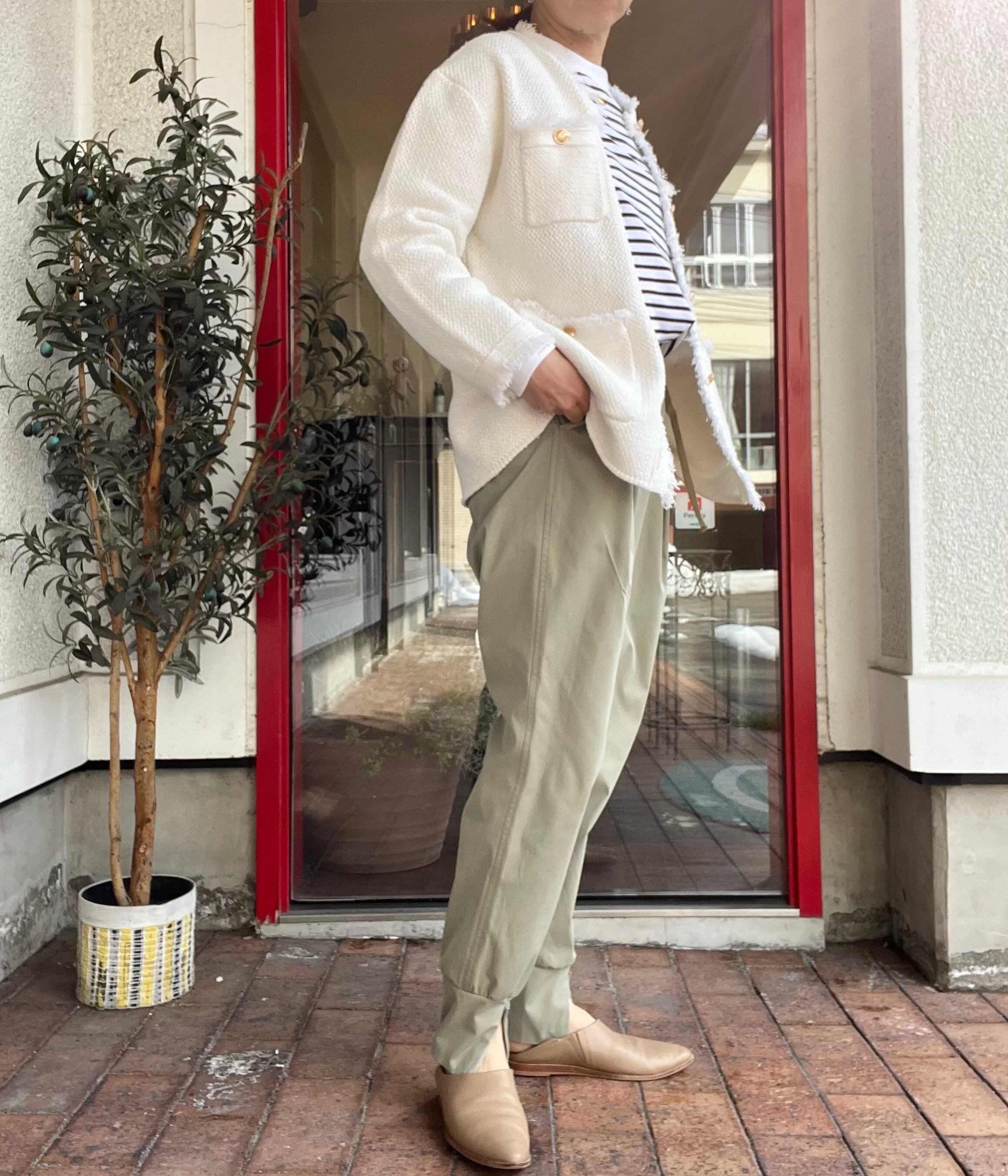 裾にかけてほそくなり、ジップを開くことで脚をきれいに見せてくれデザインです