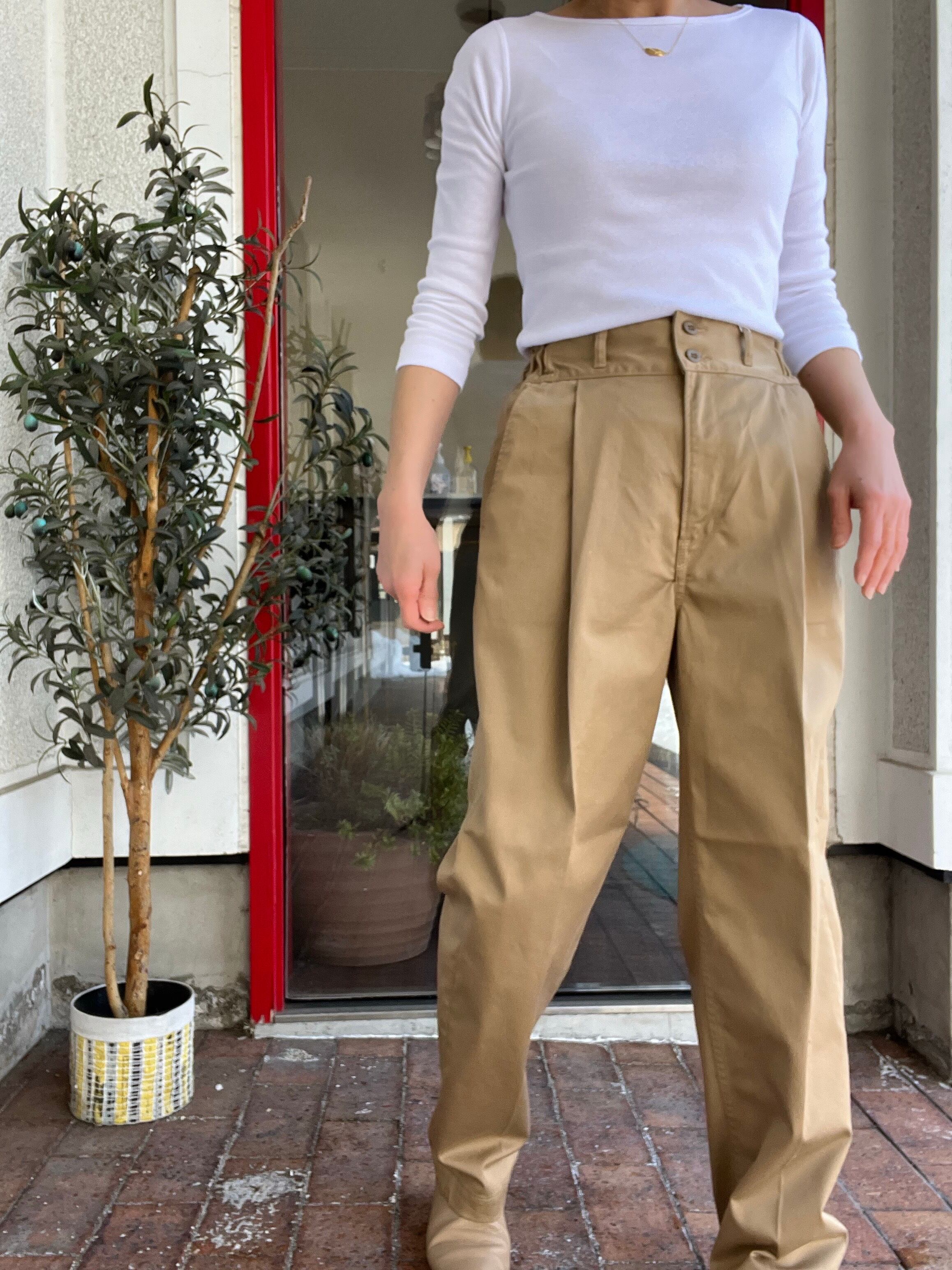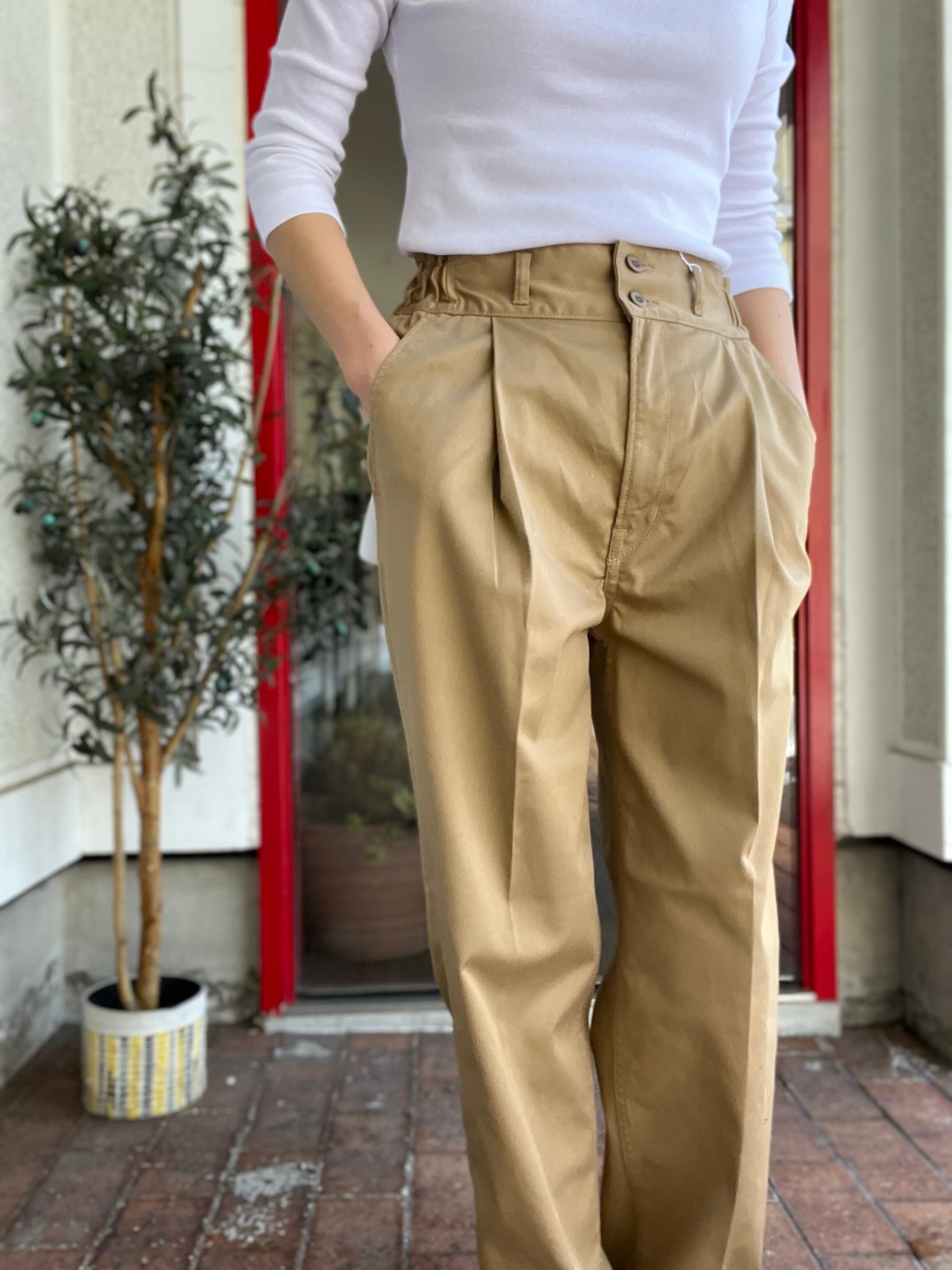 70年代後半~80年代を意識したポリエステルコットンのストレッチツイルを使用