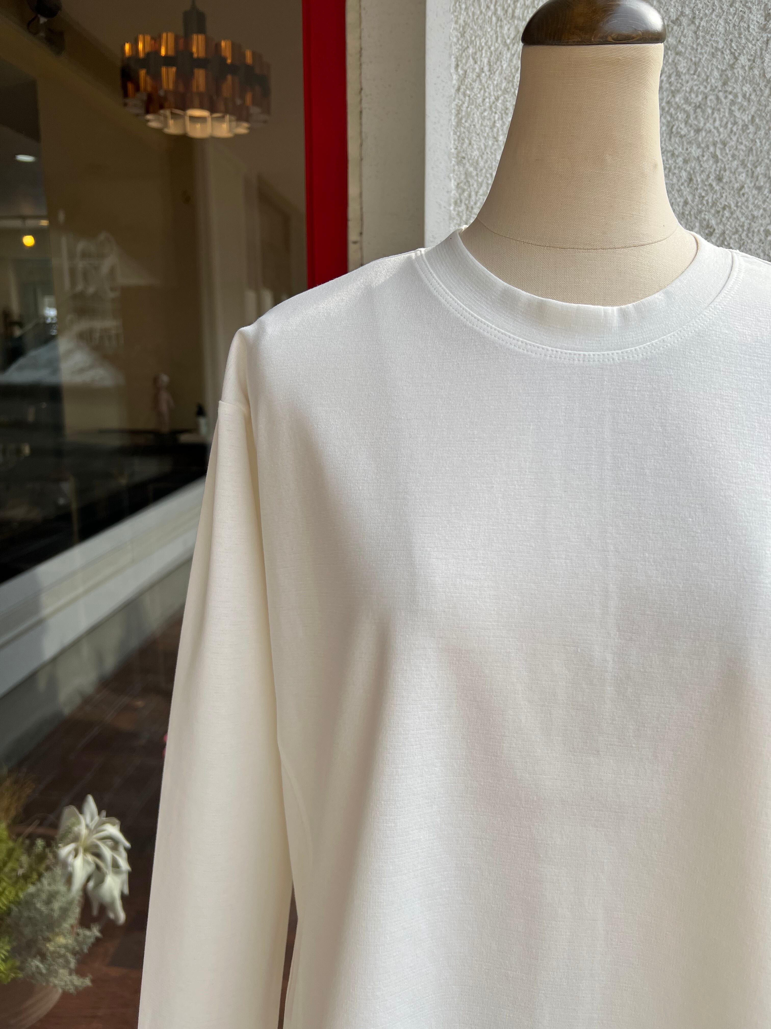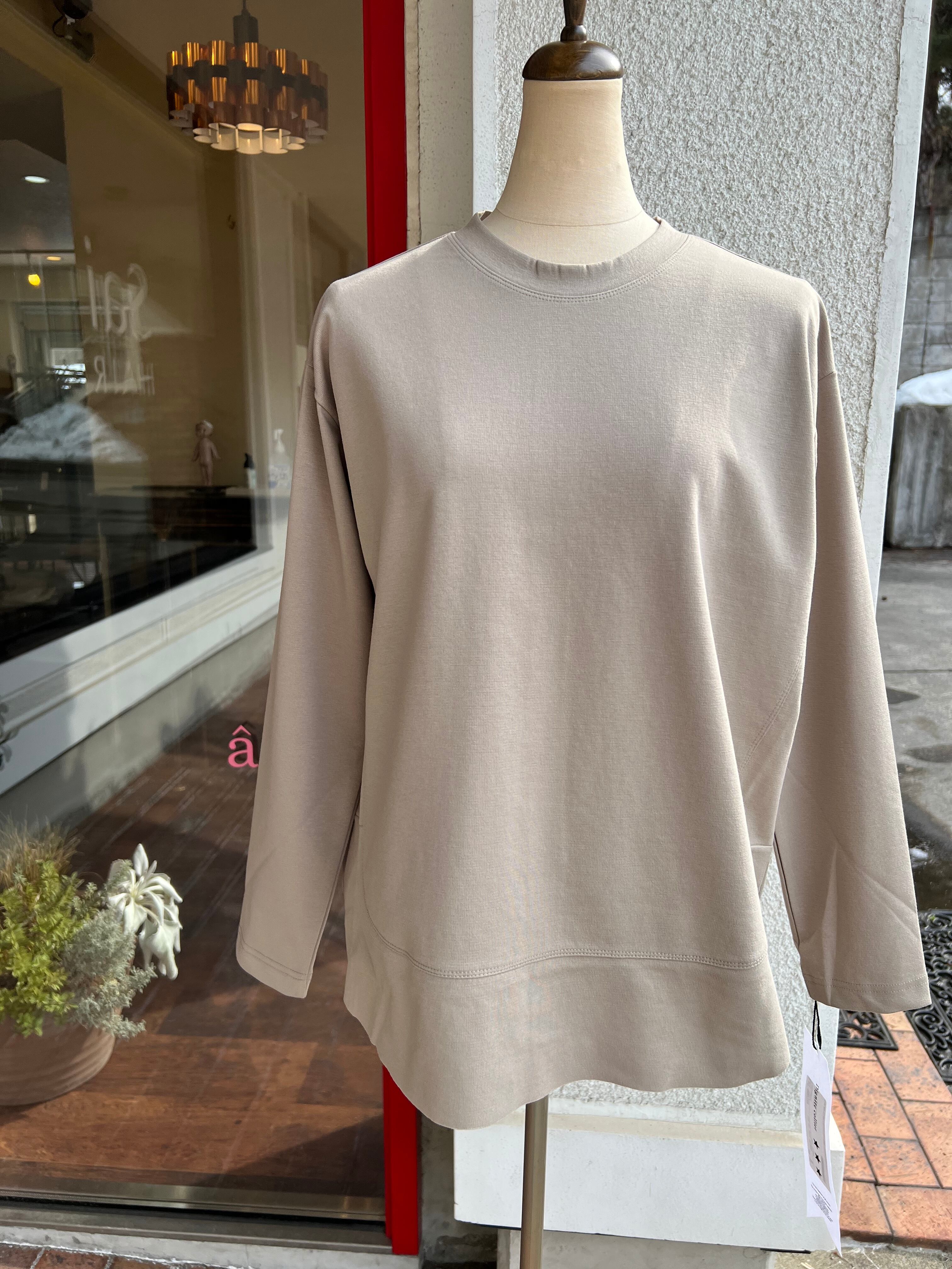 サイドから裾にかけての切り替えとバックのスリットが入る伸縮性あるカットソー