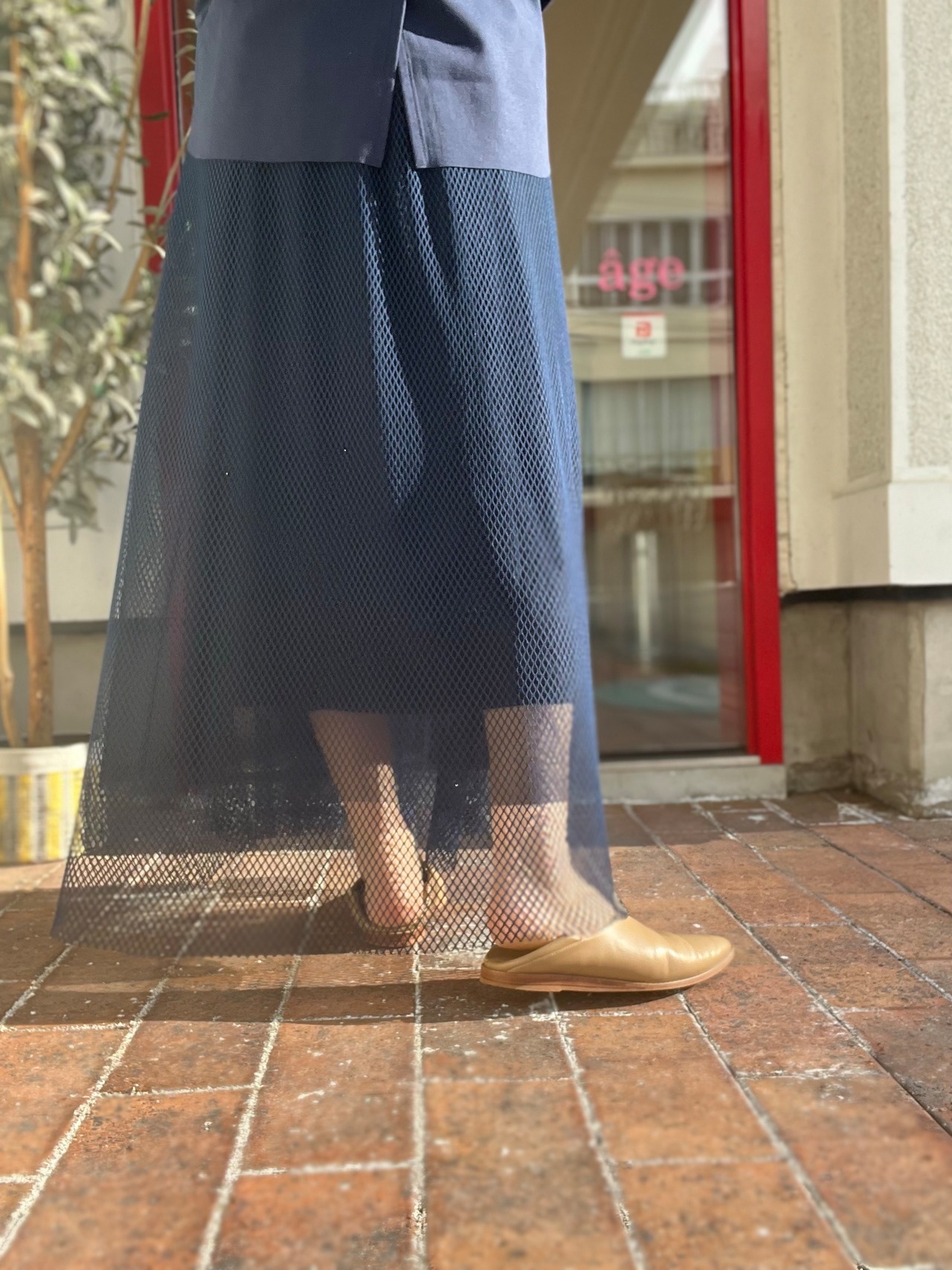 広がり少なく、メッシュ部分から足首が見え軽やかな印象です