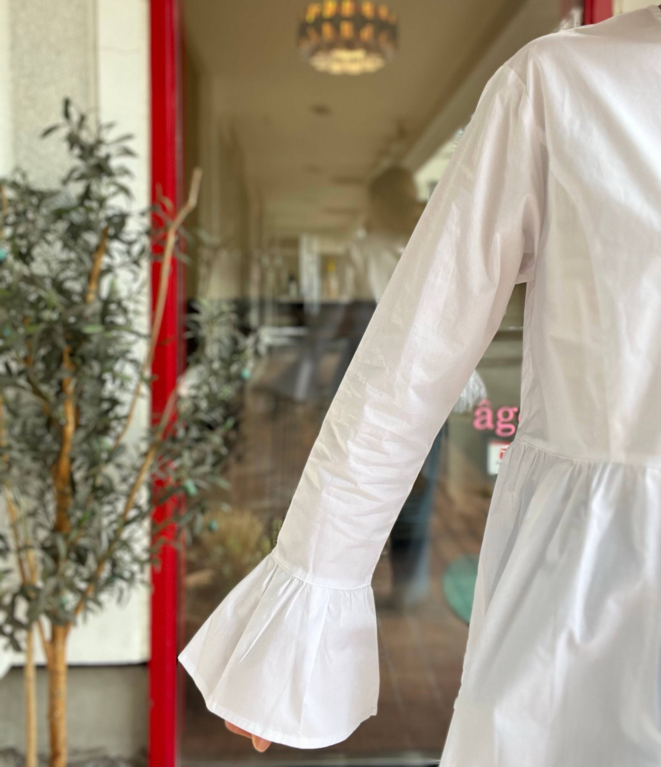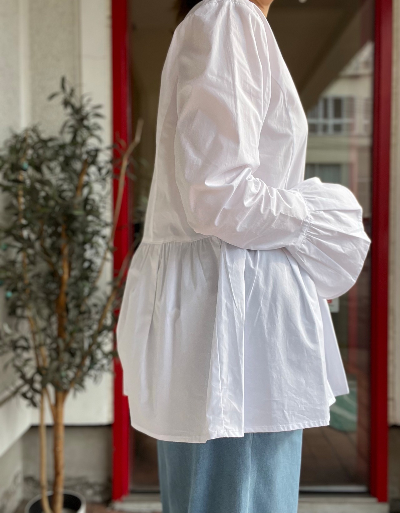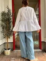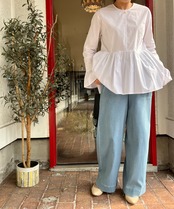 コットン100%のハリ感のある生地は身体のラインを拾いにくく