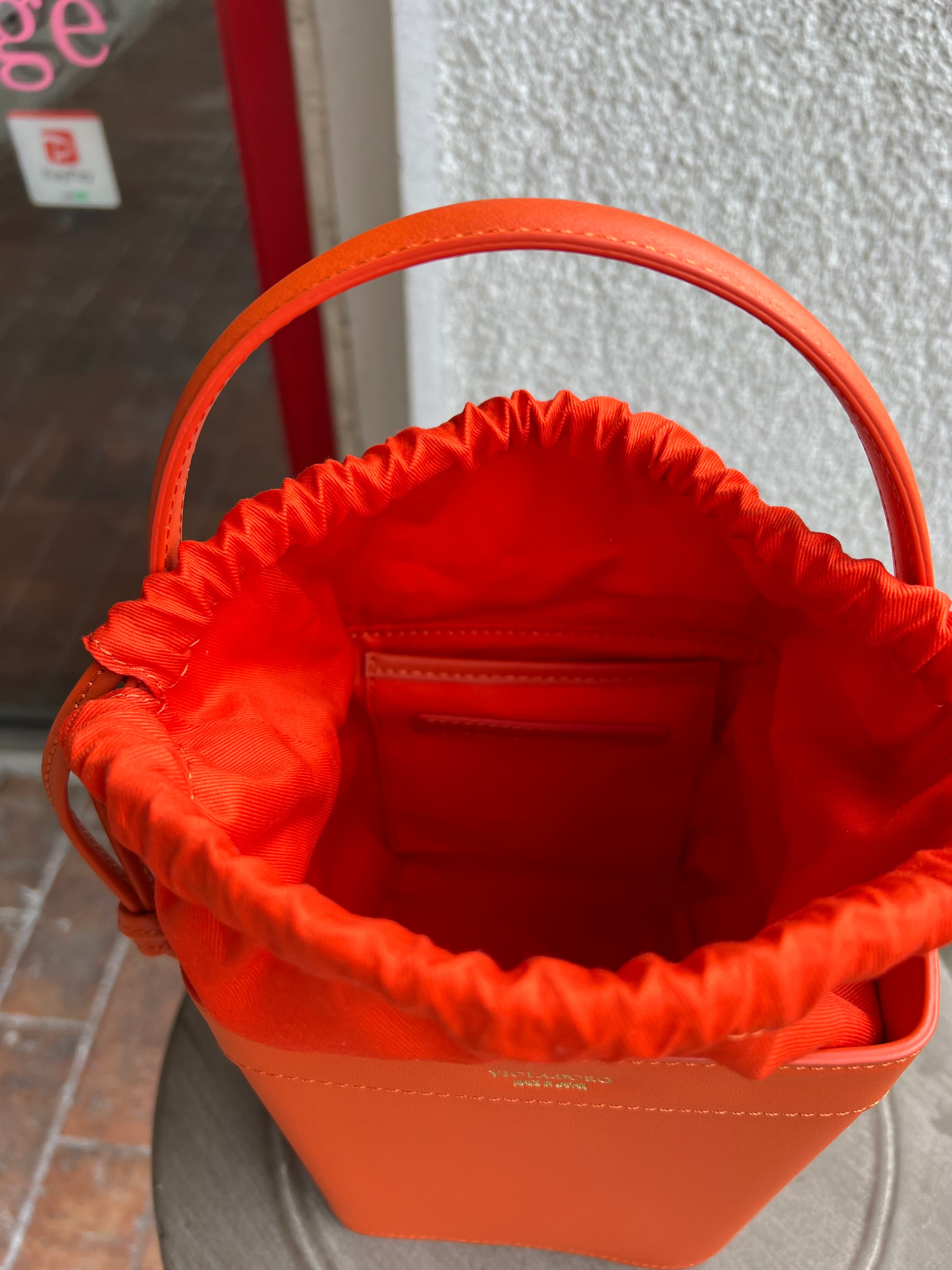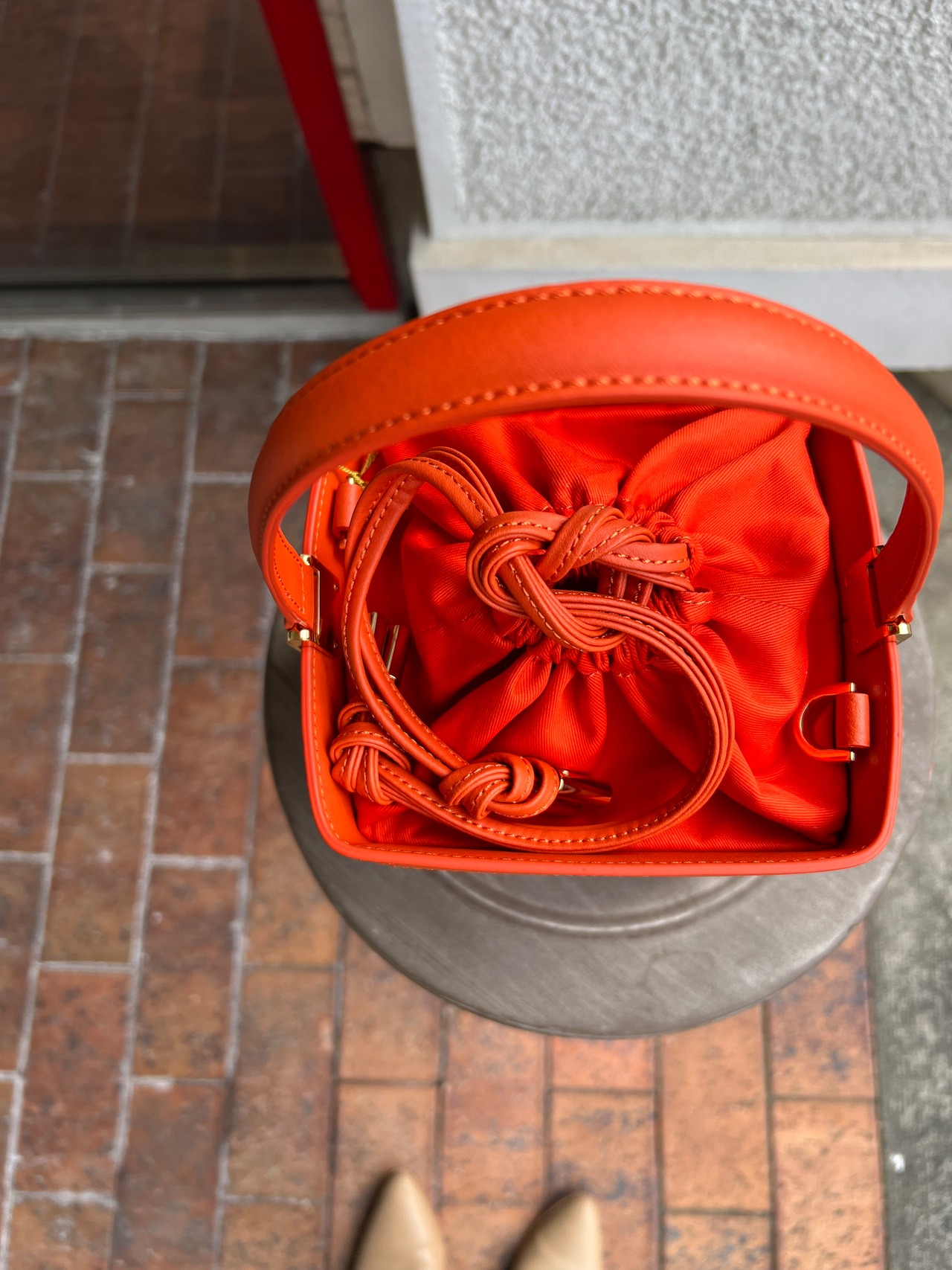 発色の良いイタリアンスプリットレザーを使用したバケットバッグ