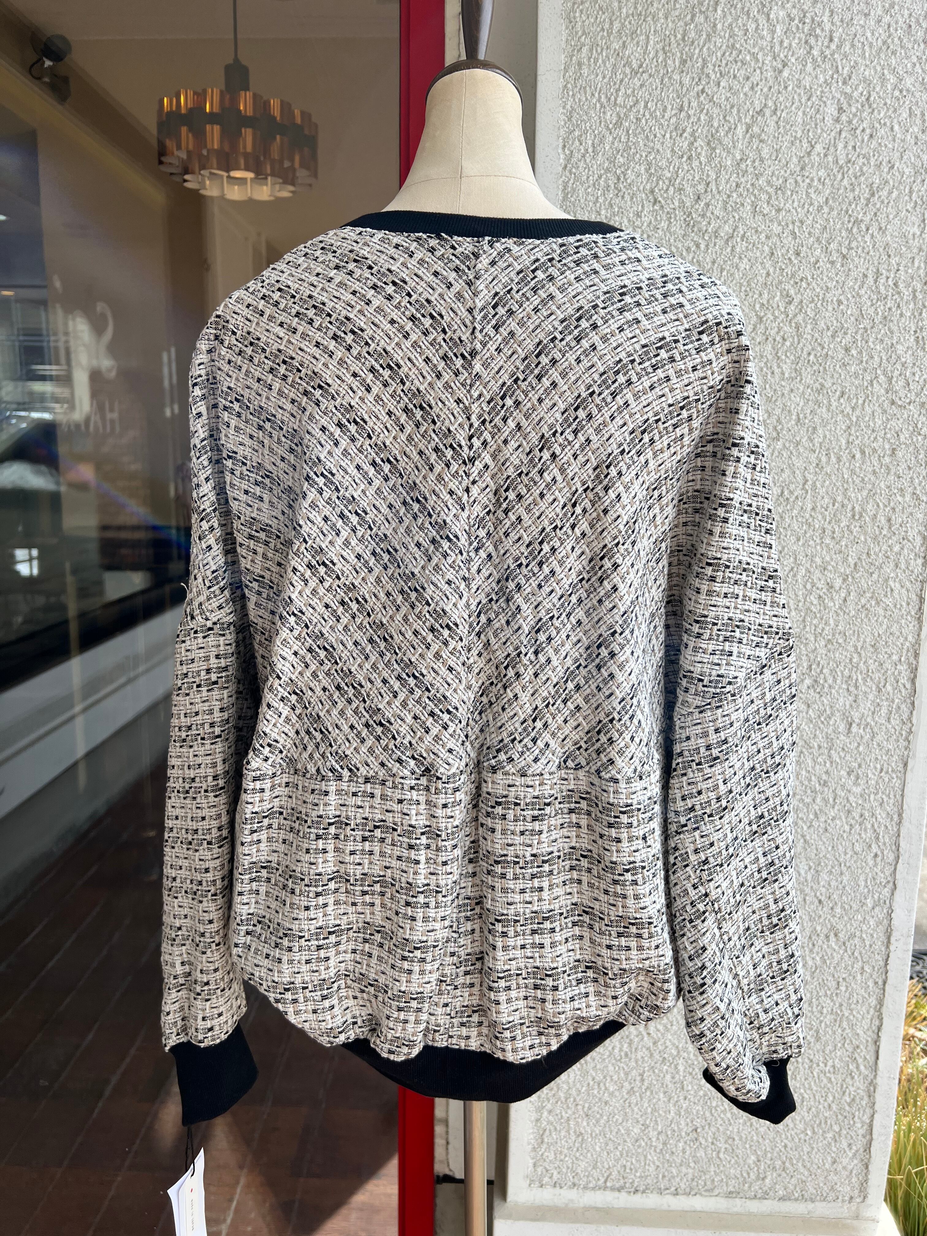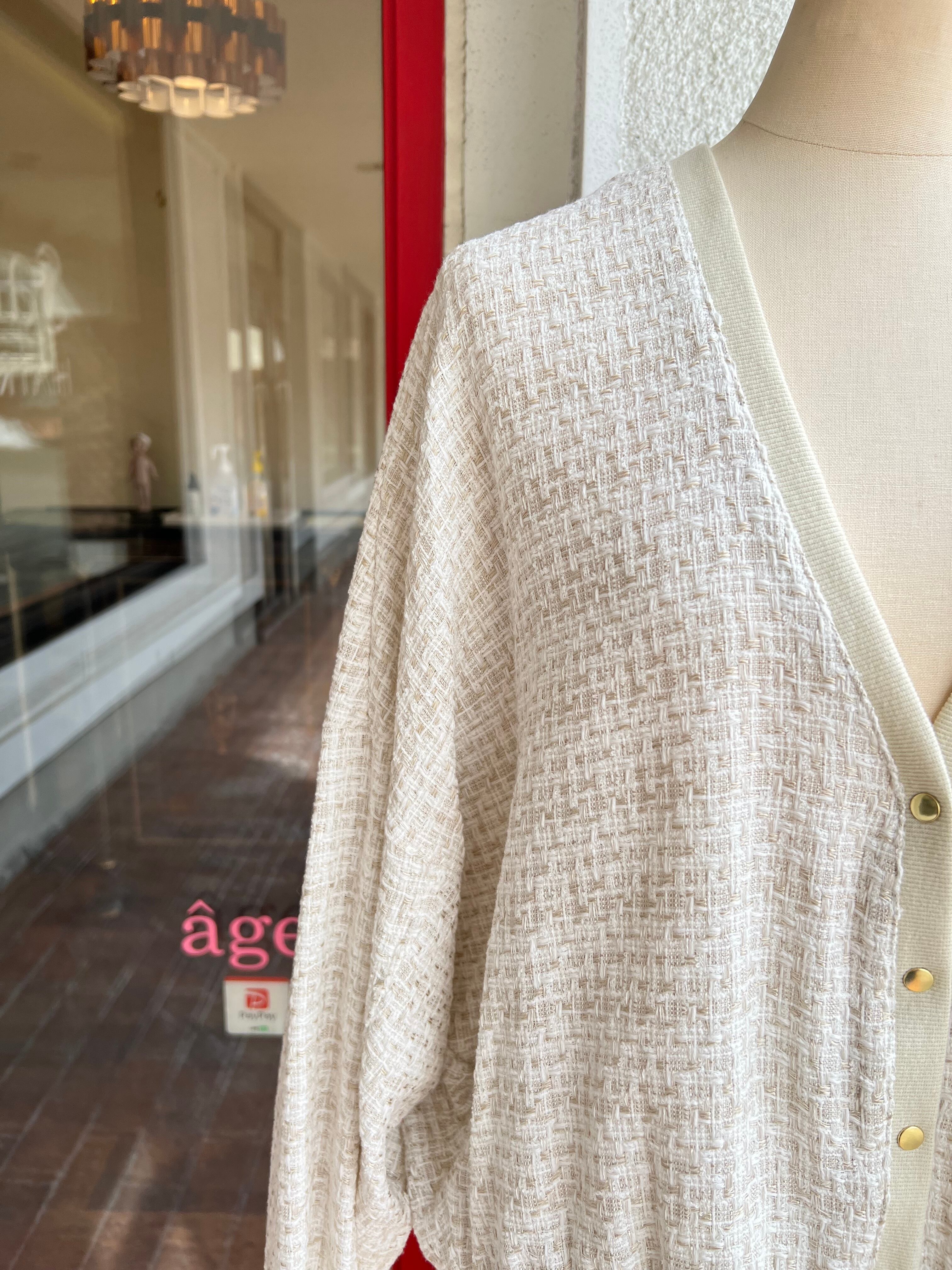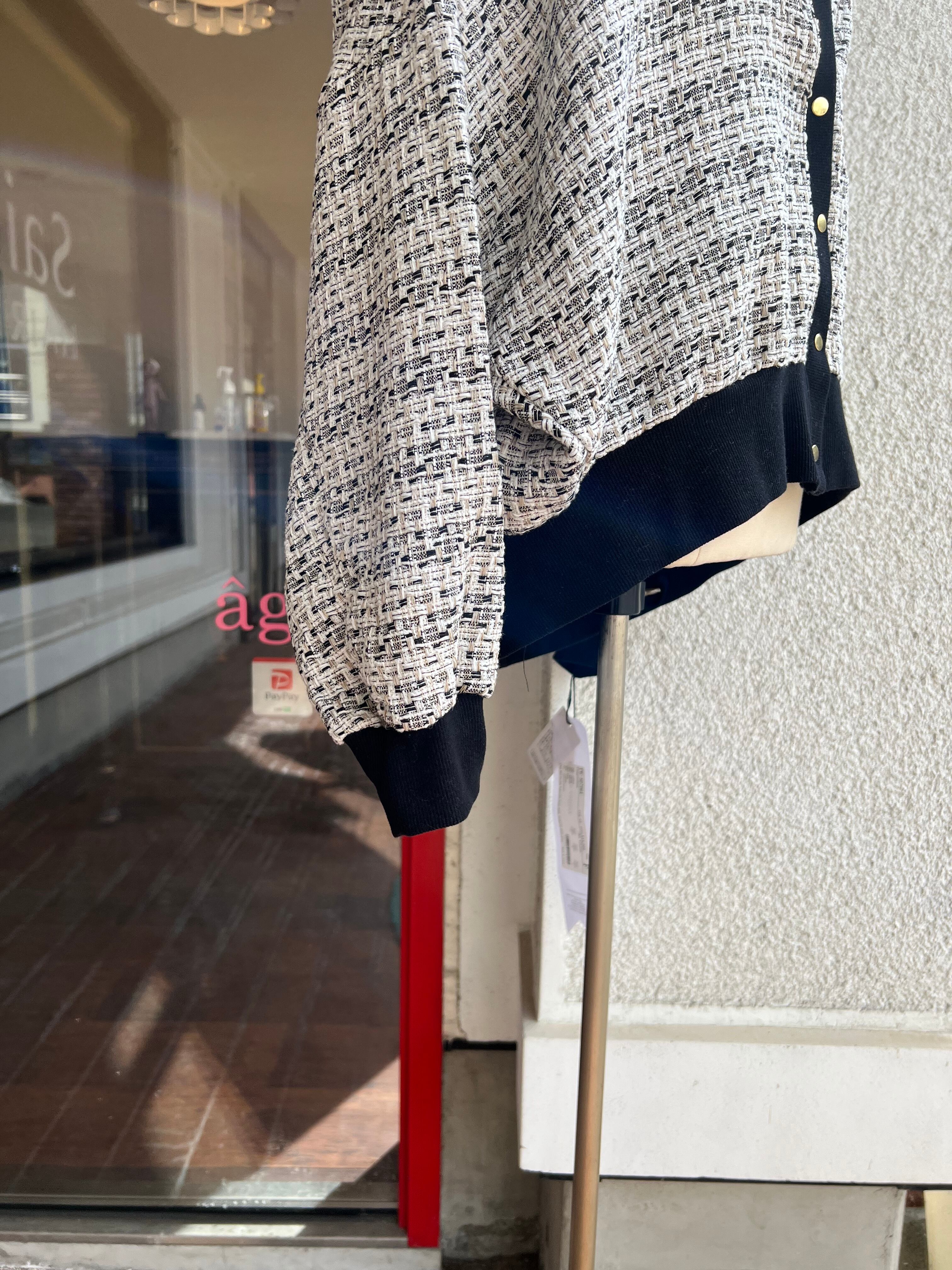 シンプルな着こなしにも気映えるツィードカーディガンです