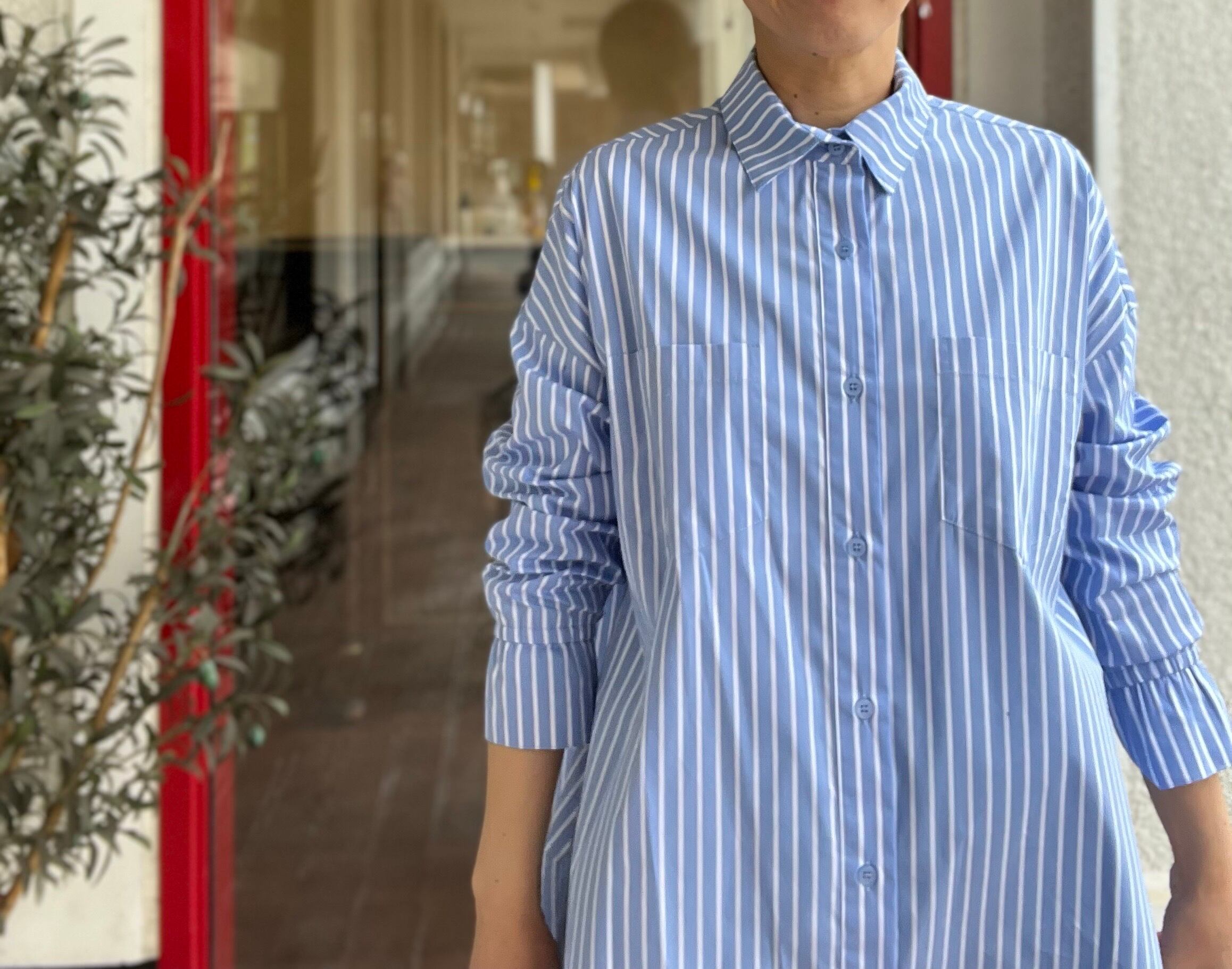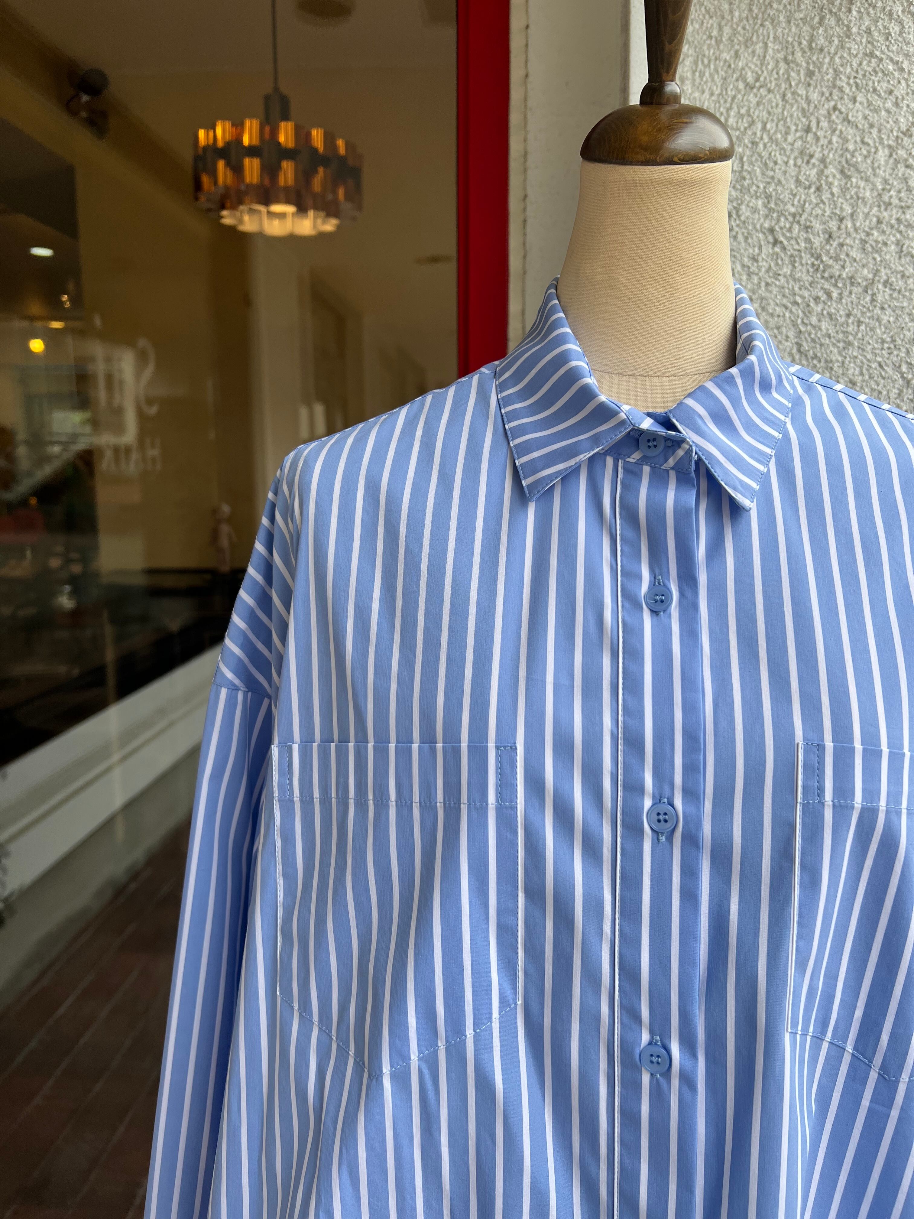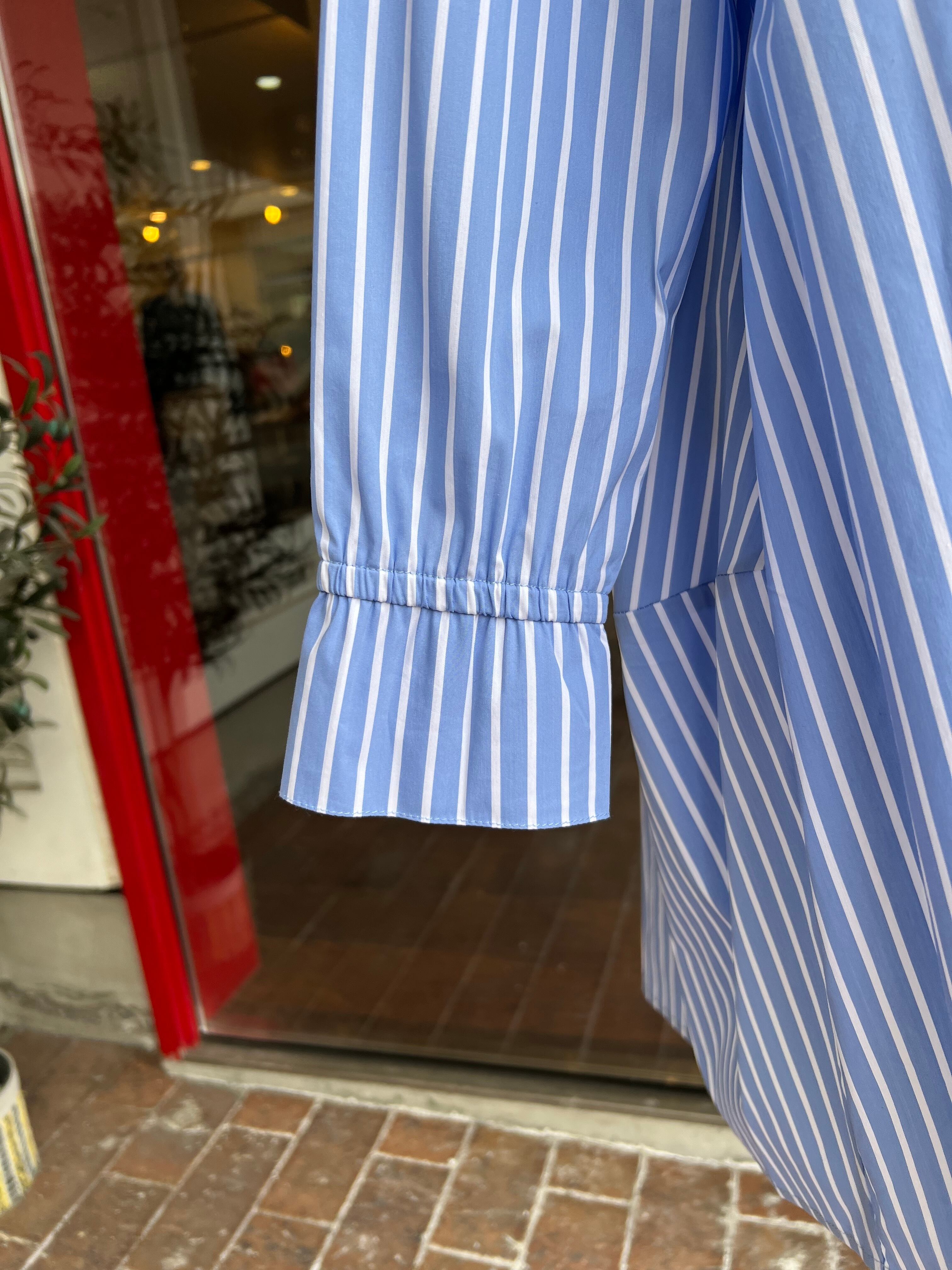 立体フォルムのストライプ柄ブラウス
